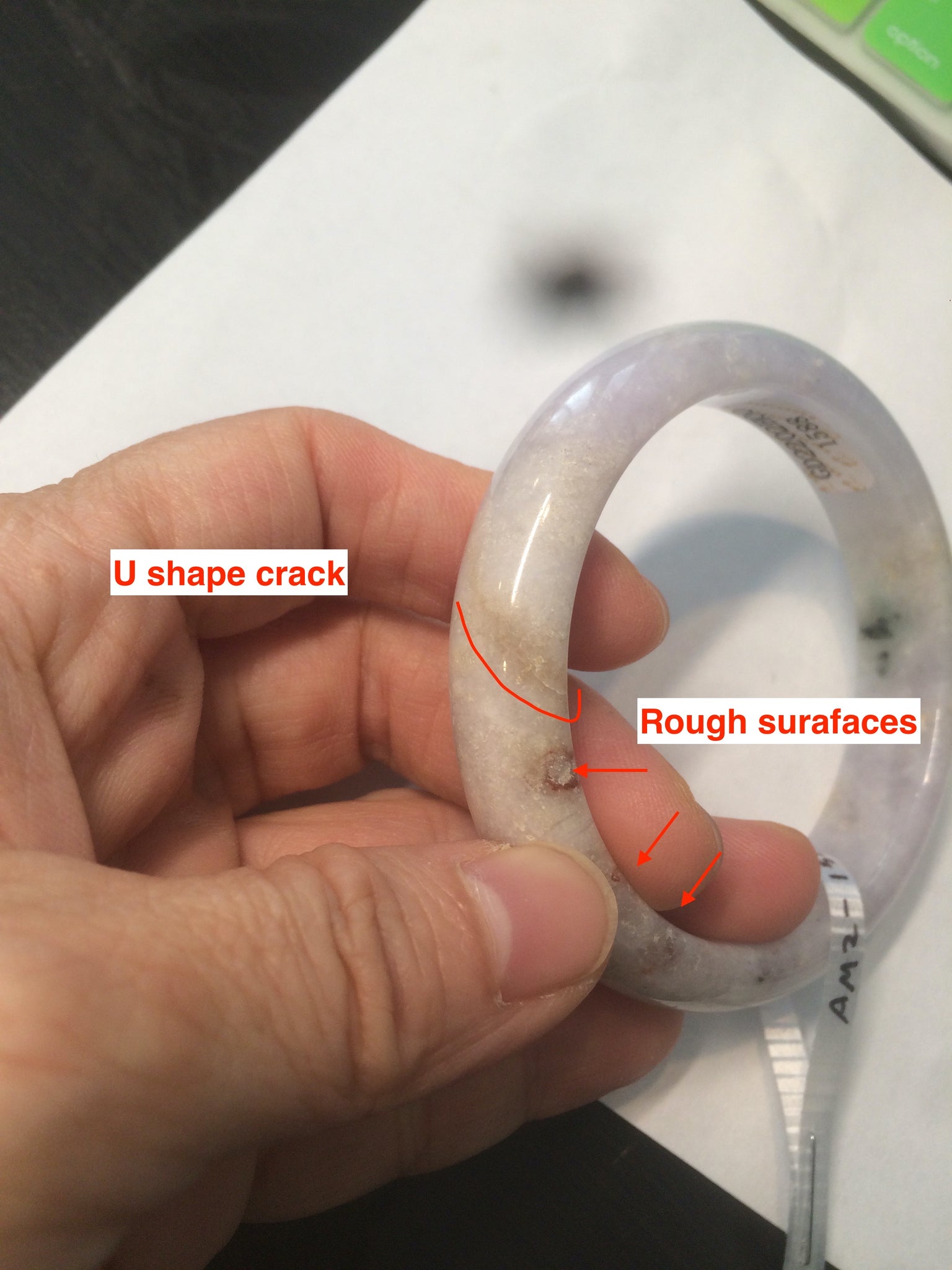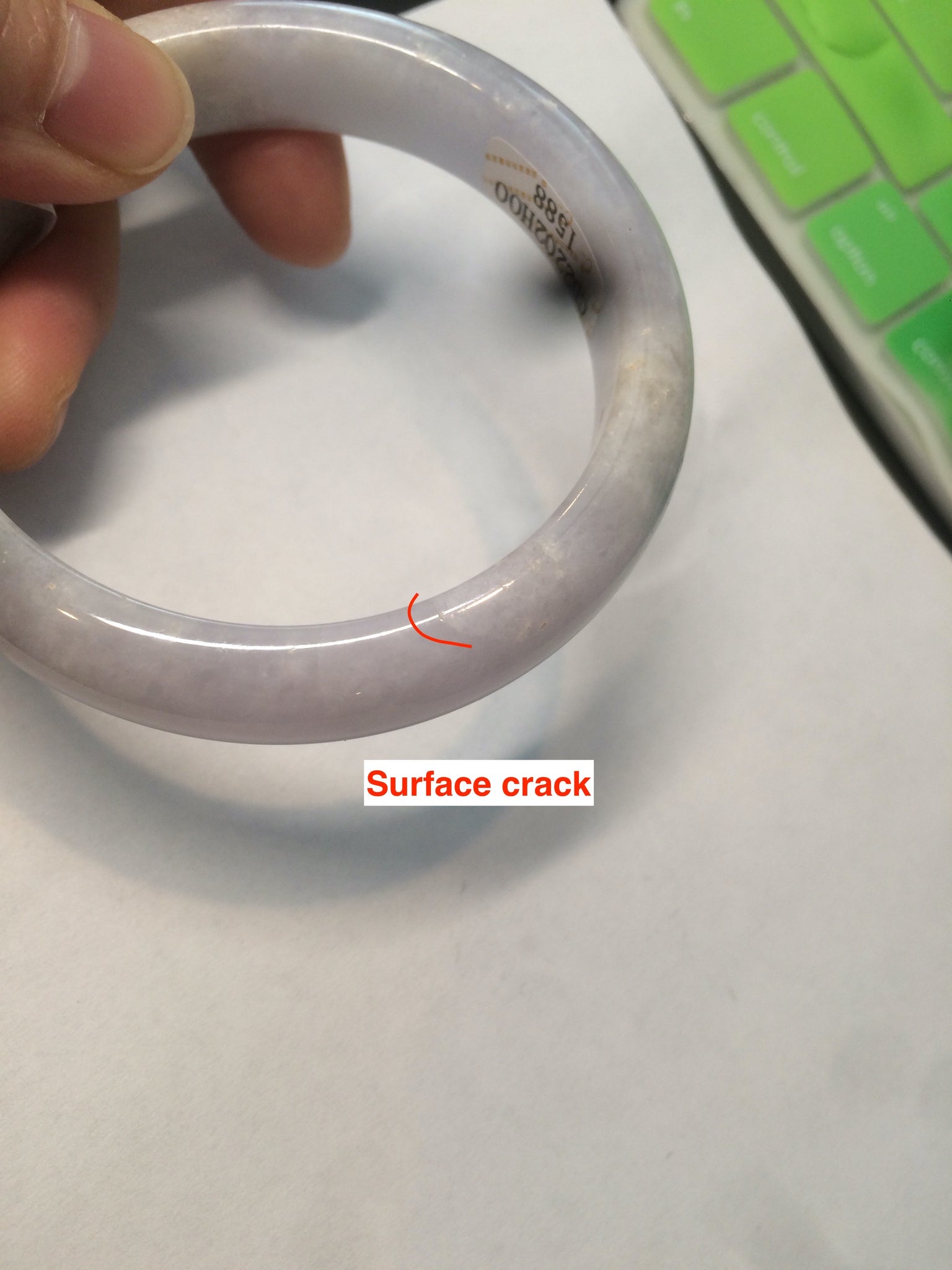 One u shape crack. Won't influence the firmness. One crack. Some rough surfaces. Some cotton spots. The purple is really light. Lighter than photos.