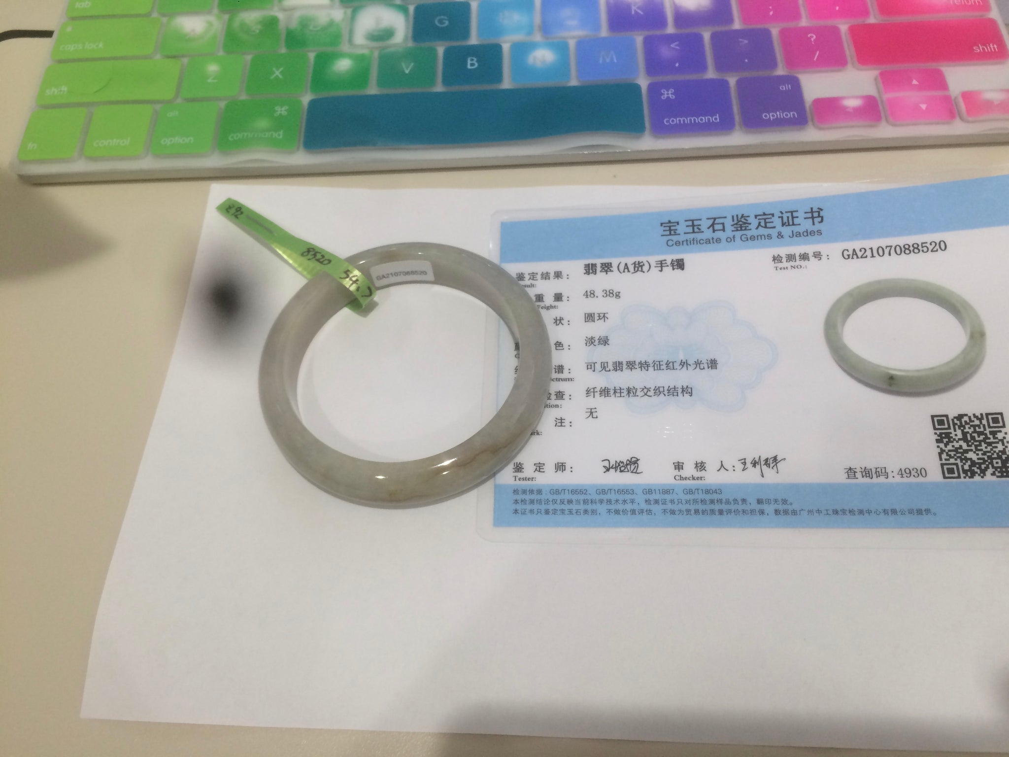 54.7mm certified 100% natural type yellow/green jadeite jade bangle Z92-8520