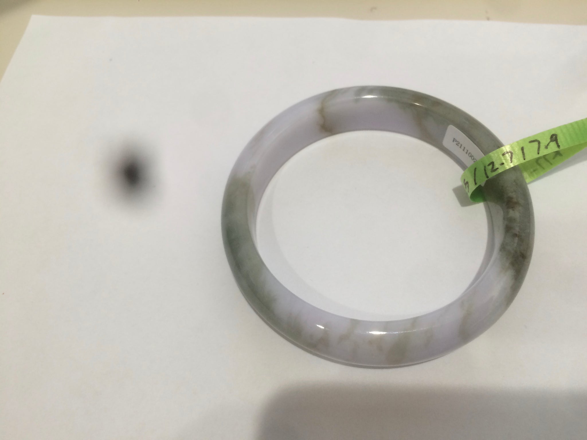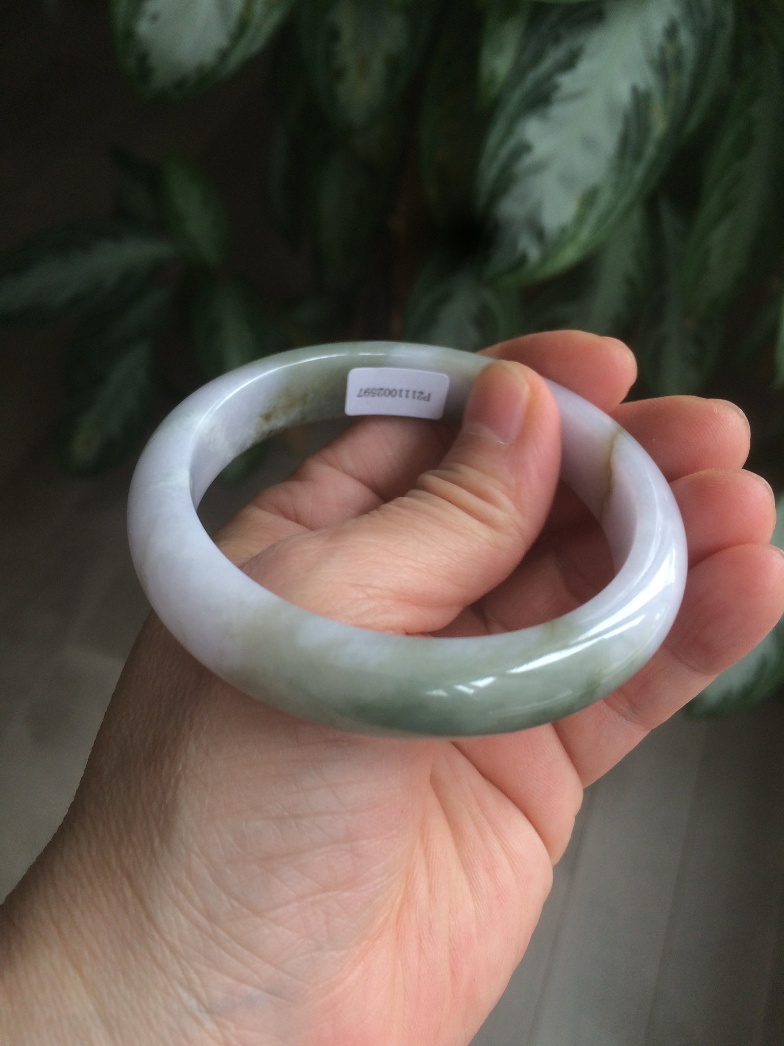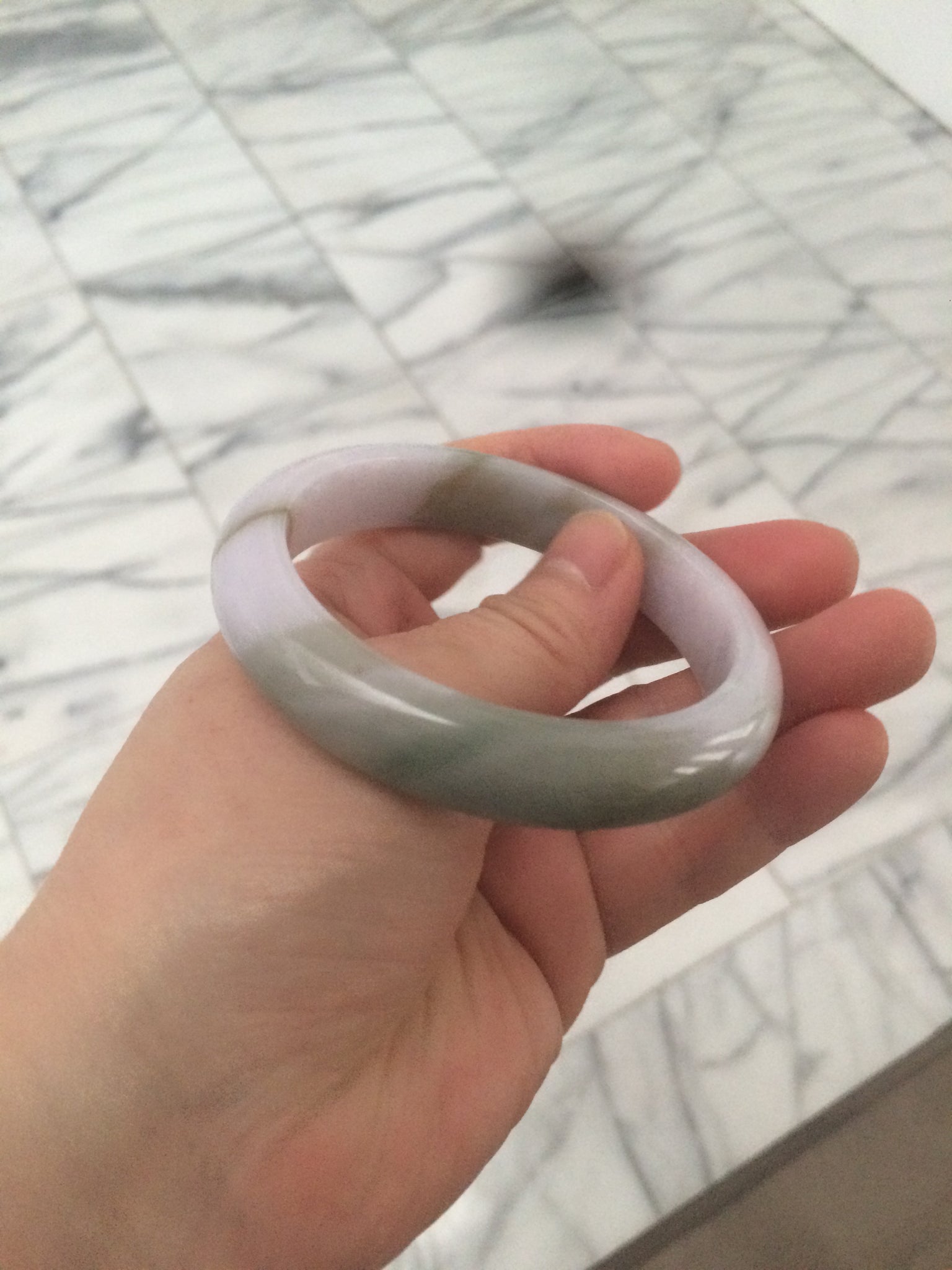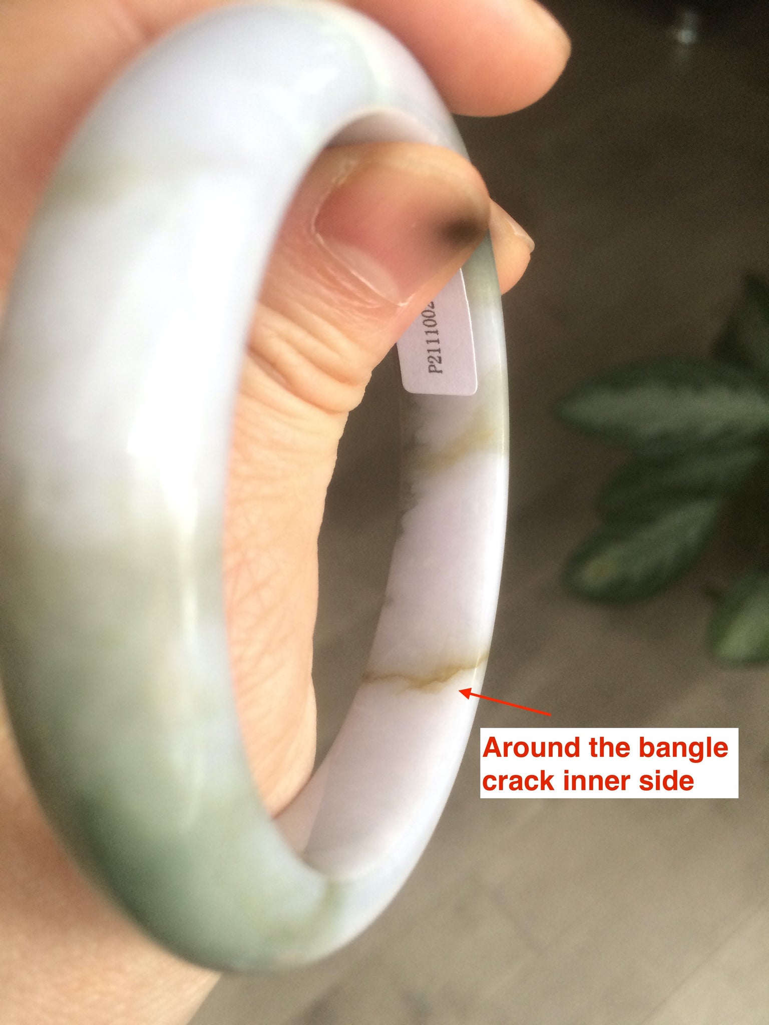 One around the bangle color root crack. The bangle is still firm. One color root. cotton bands and spots. The purple is extremely light, lighter than photos due to the purple being always more camera-friendly.