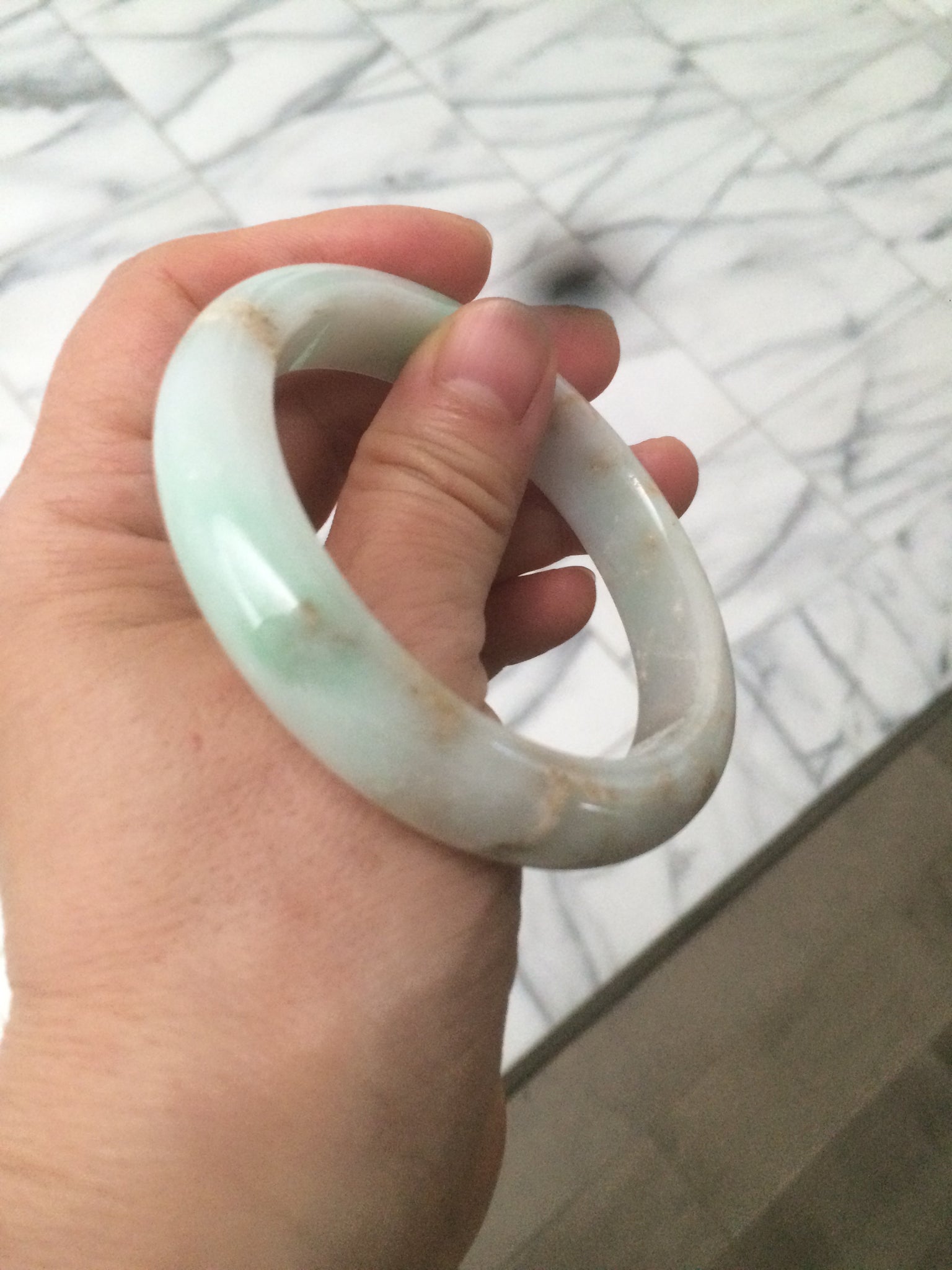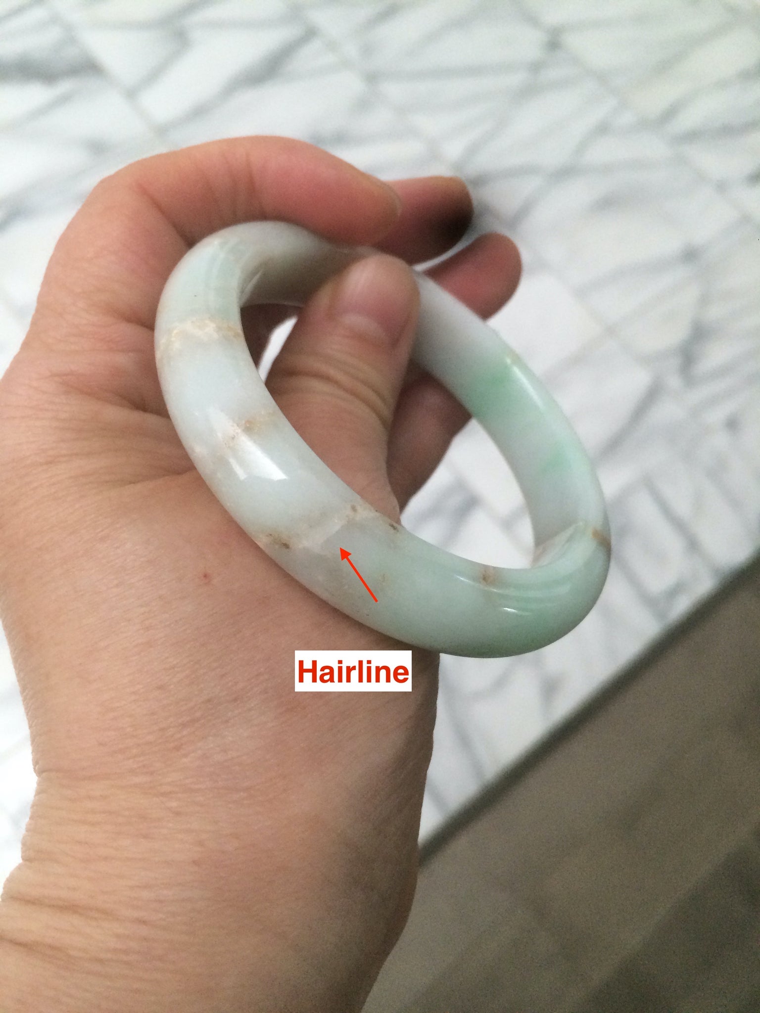 No crack. One hairline. Some brown rough surfaces. Three of those rough surfaces with some wax residue. Some tiny mine pits. Cotton lines and cotton spots.