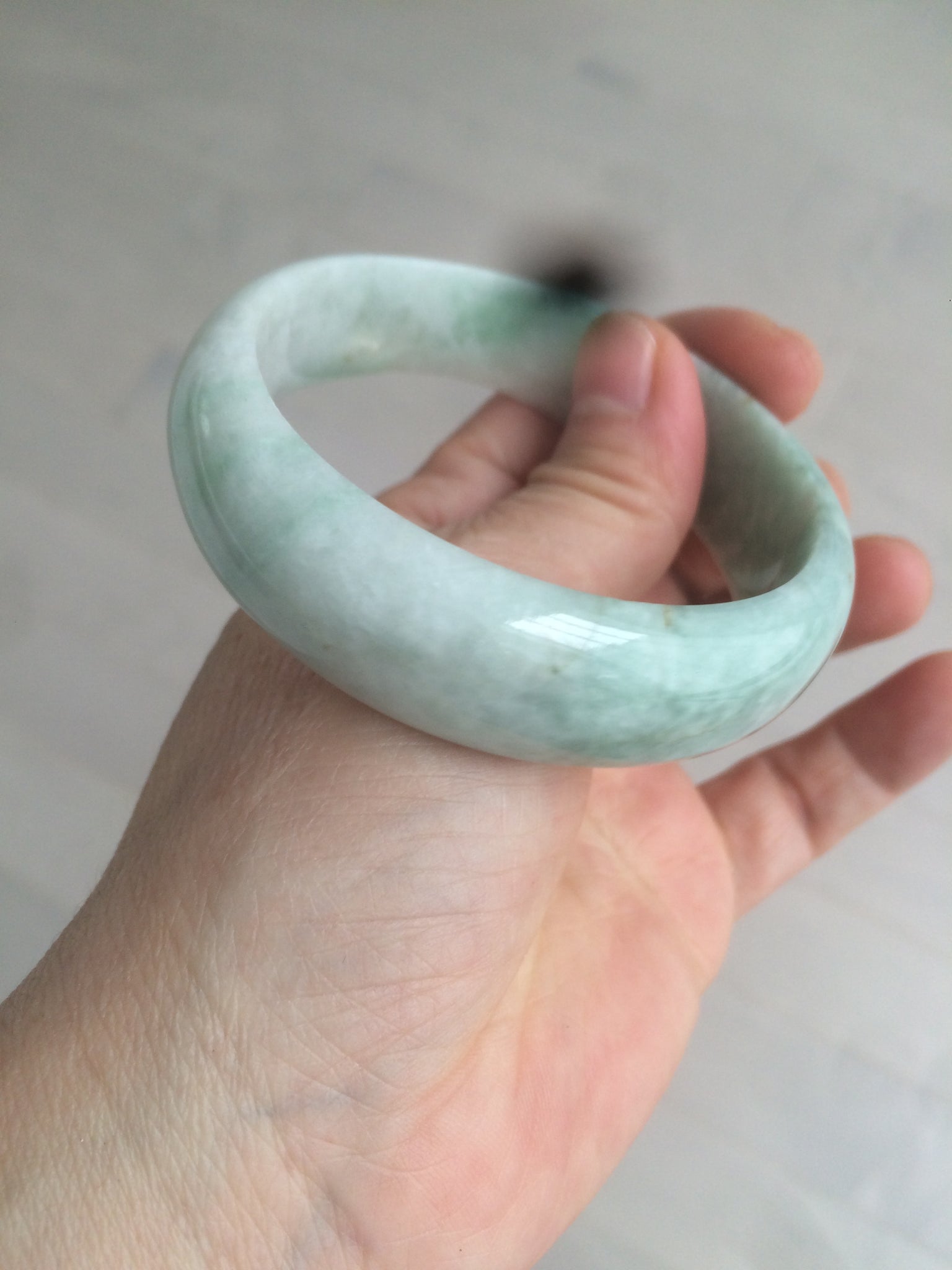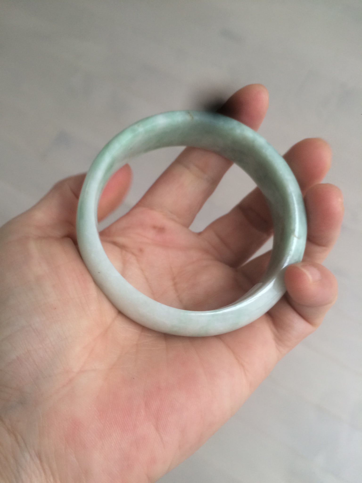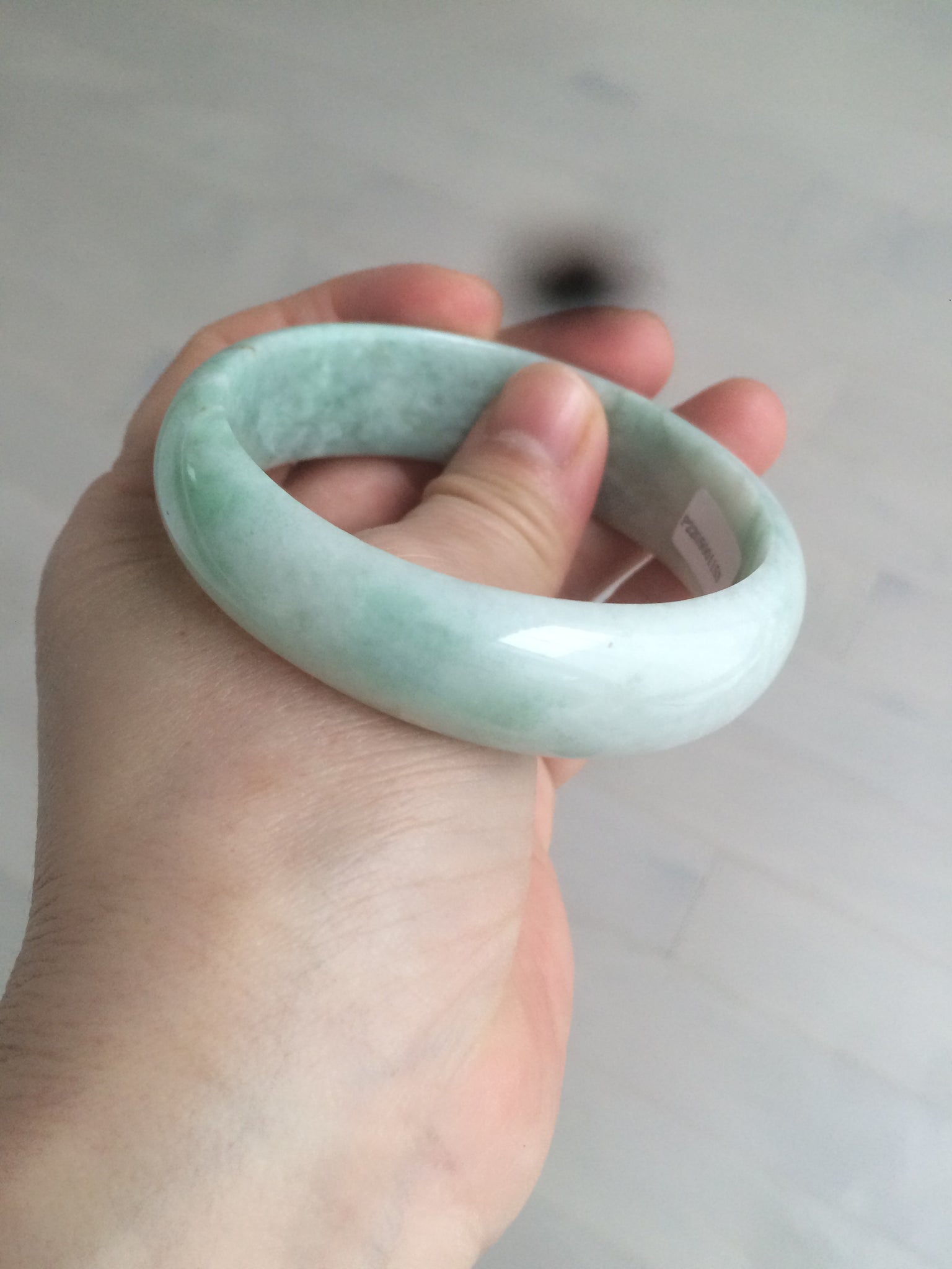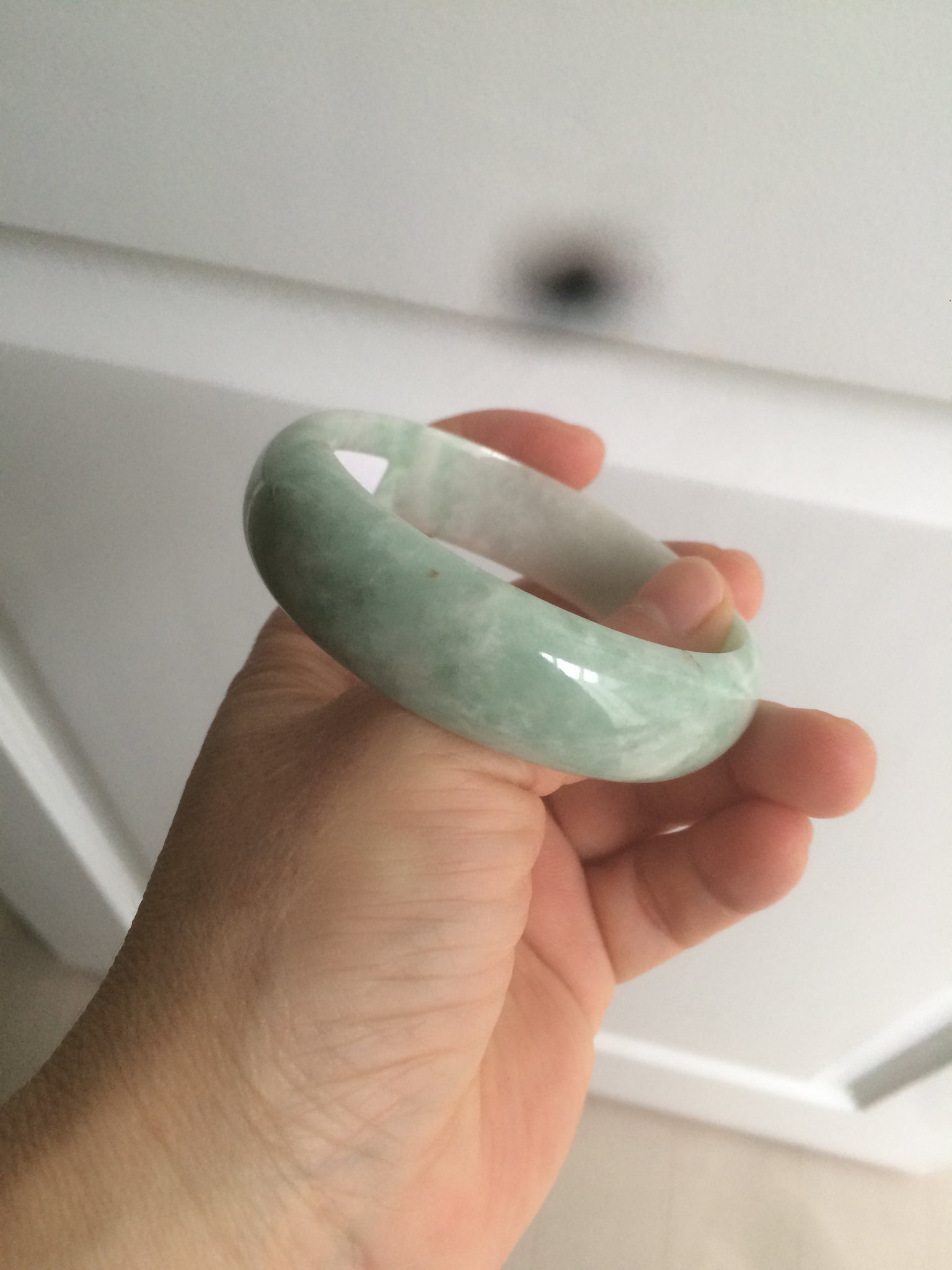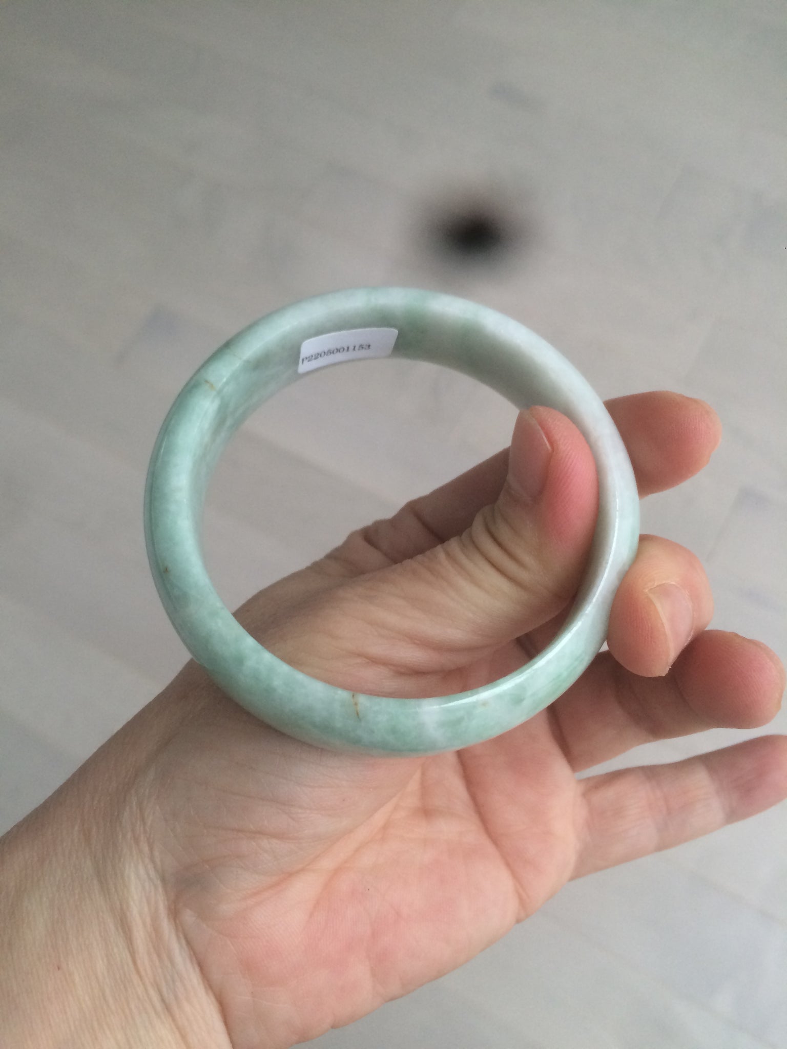 56.3mm certified 100% natural Type A light green/white jadeite jade bangle AB88-1153