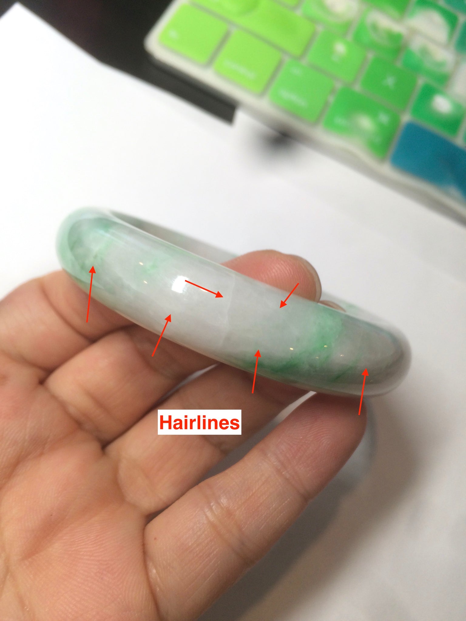 Imperfections: No crack. Quite a lot of hairlines and cotton lines(photos may not show all). The bangle is solid(guaranteed!). Some small rough surface areas. Cotton spots and areas. The purple is super light. Lighter than in photos.
