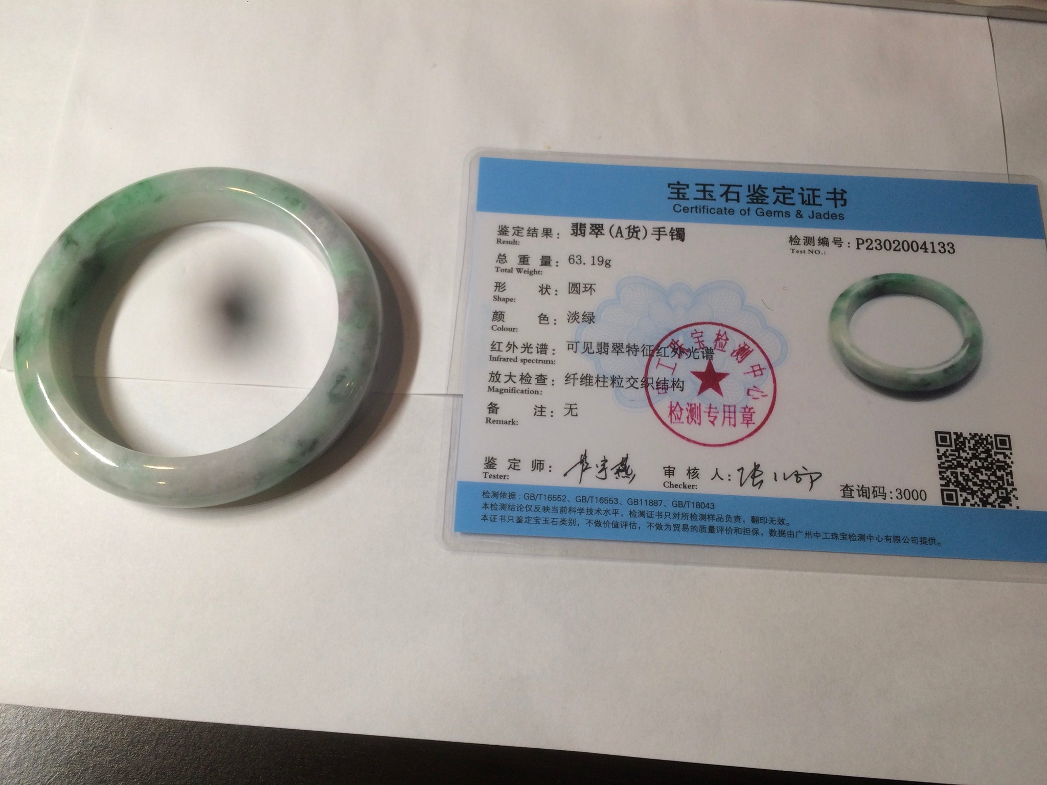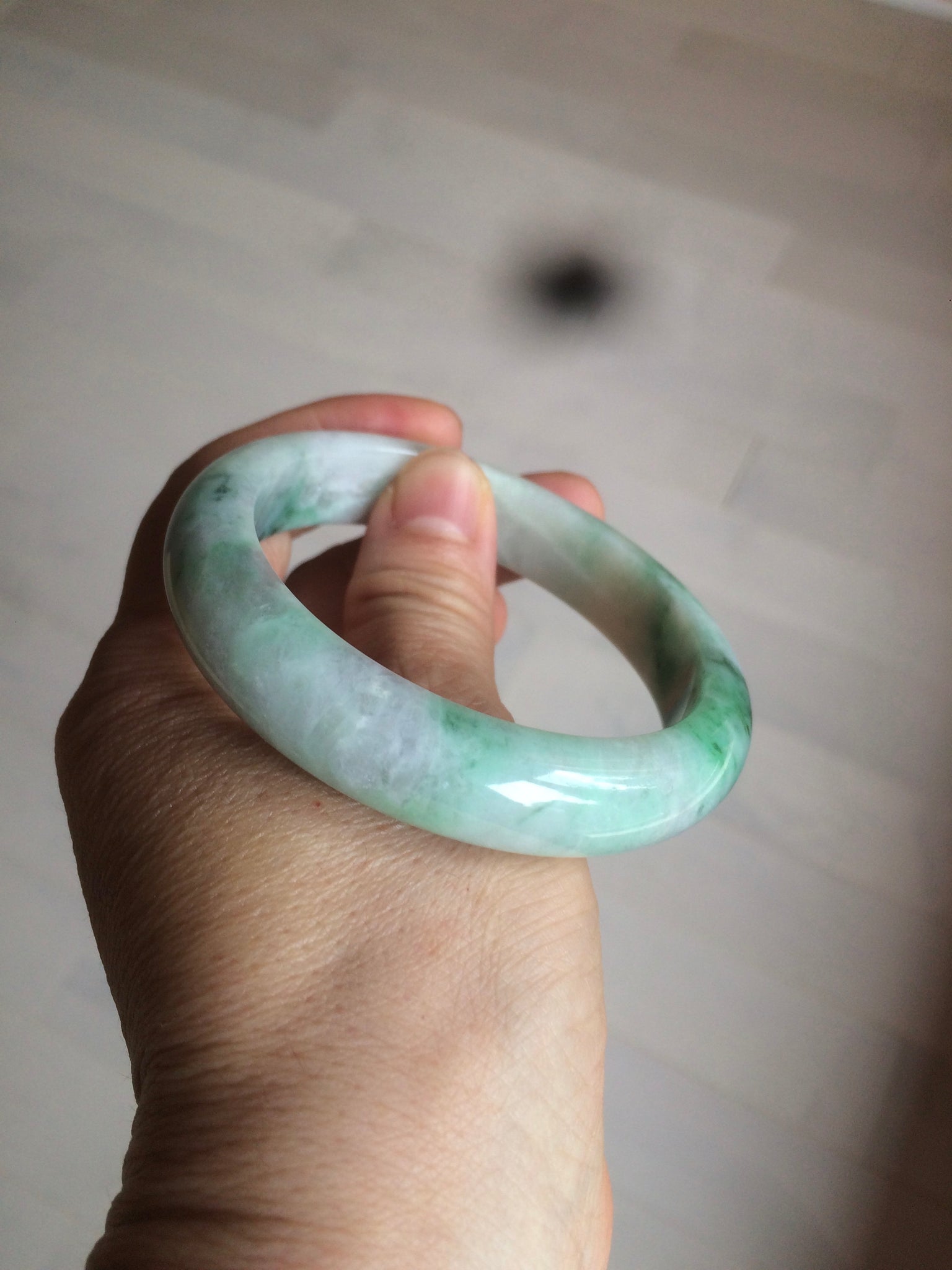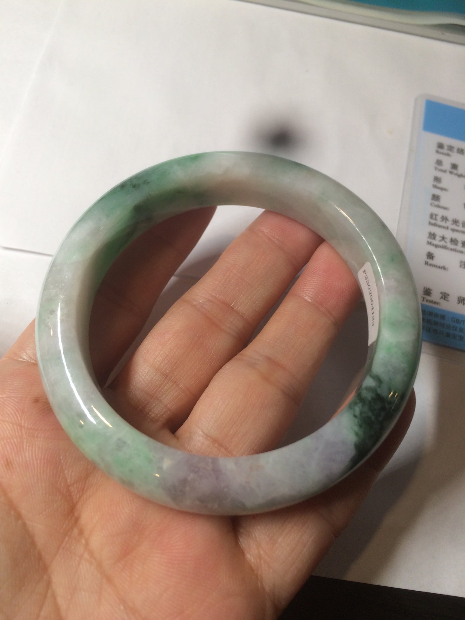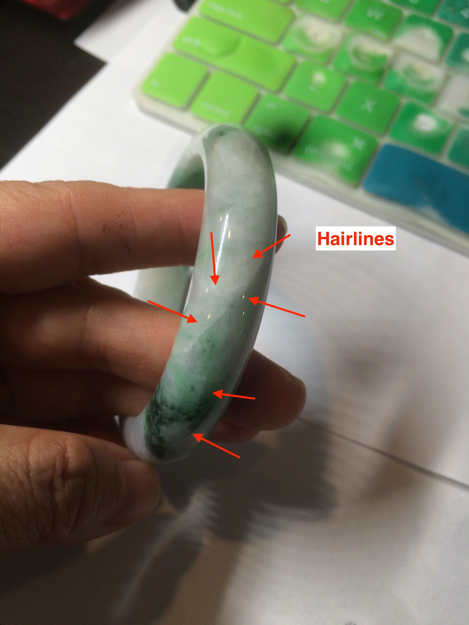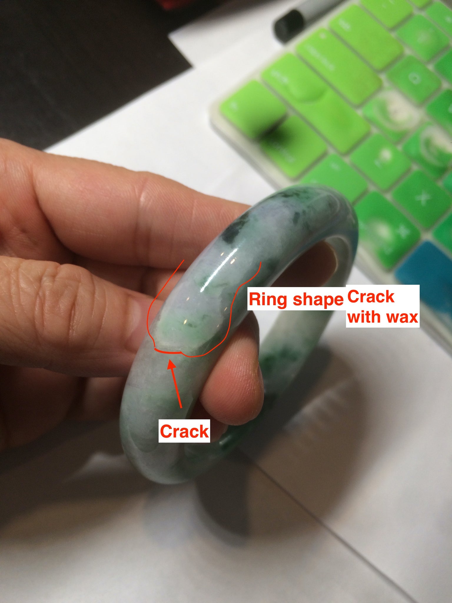 Some cracks, hairlines, and cotton lines(More than 10, photos may not show all). The bangle is solid(guaranteed!). One ring shape crack has a littlt bit of wax. Some small rough surface areas. Cotton spots and areas. The purple is super light. Lighter than in photos.
