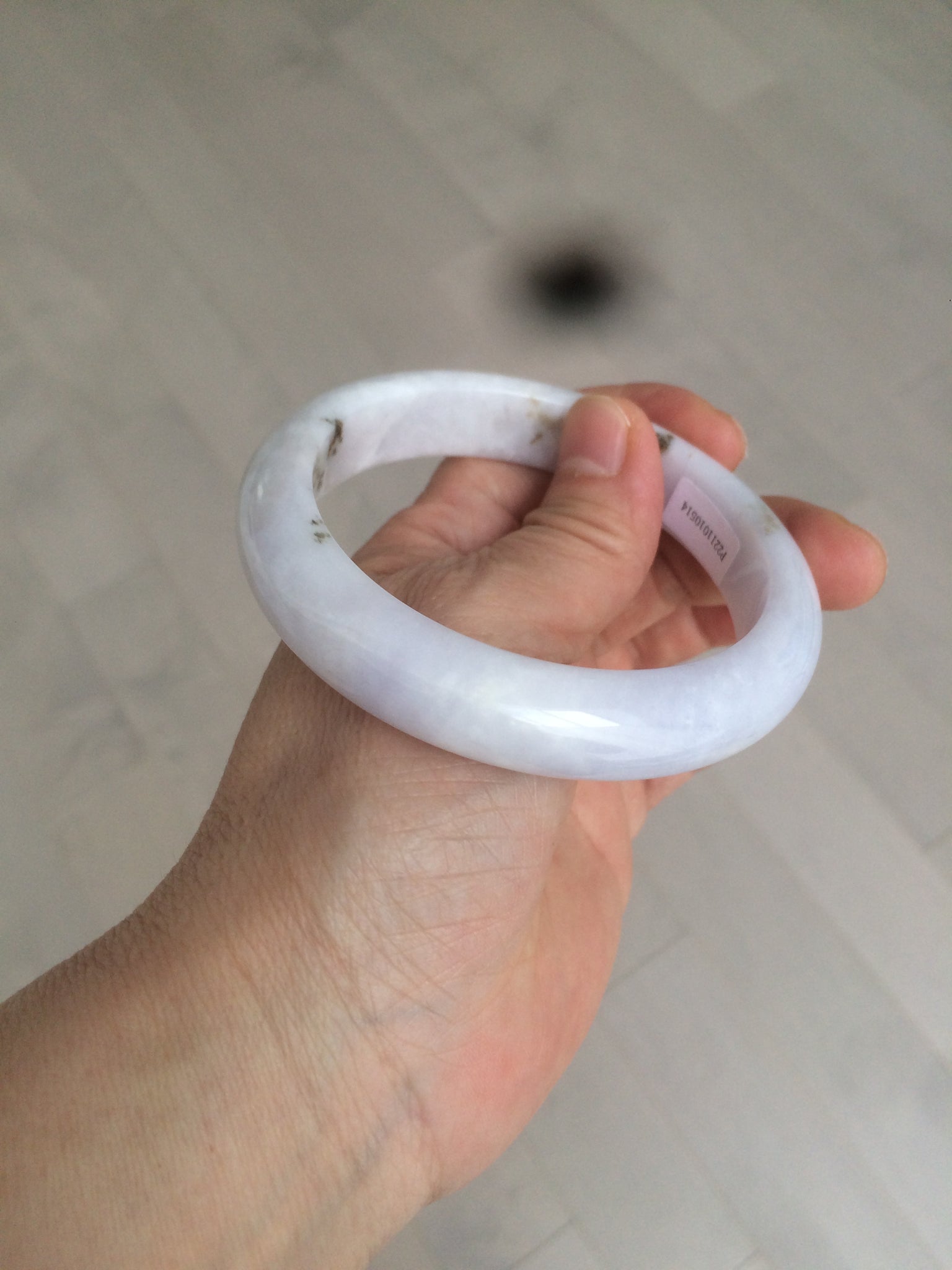No crack. Some hairlines and cotton lines. The bangle is solid(guaranteed!). A few rough surfaces/mineral impurity/mine pits areas. Bown areas. Not transparent. The purple is super light (almost invisible). Lighter than in the photos.