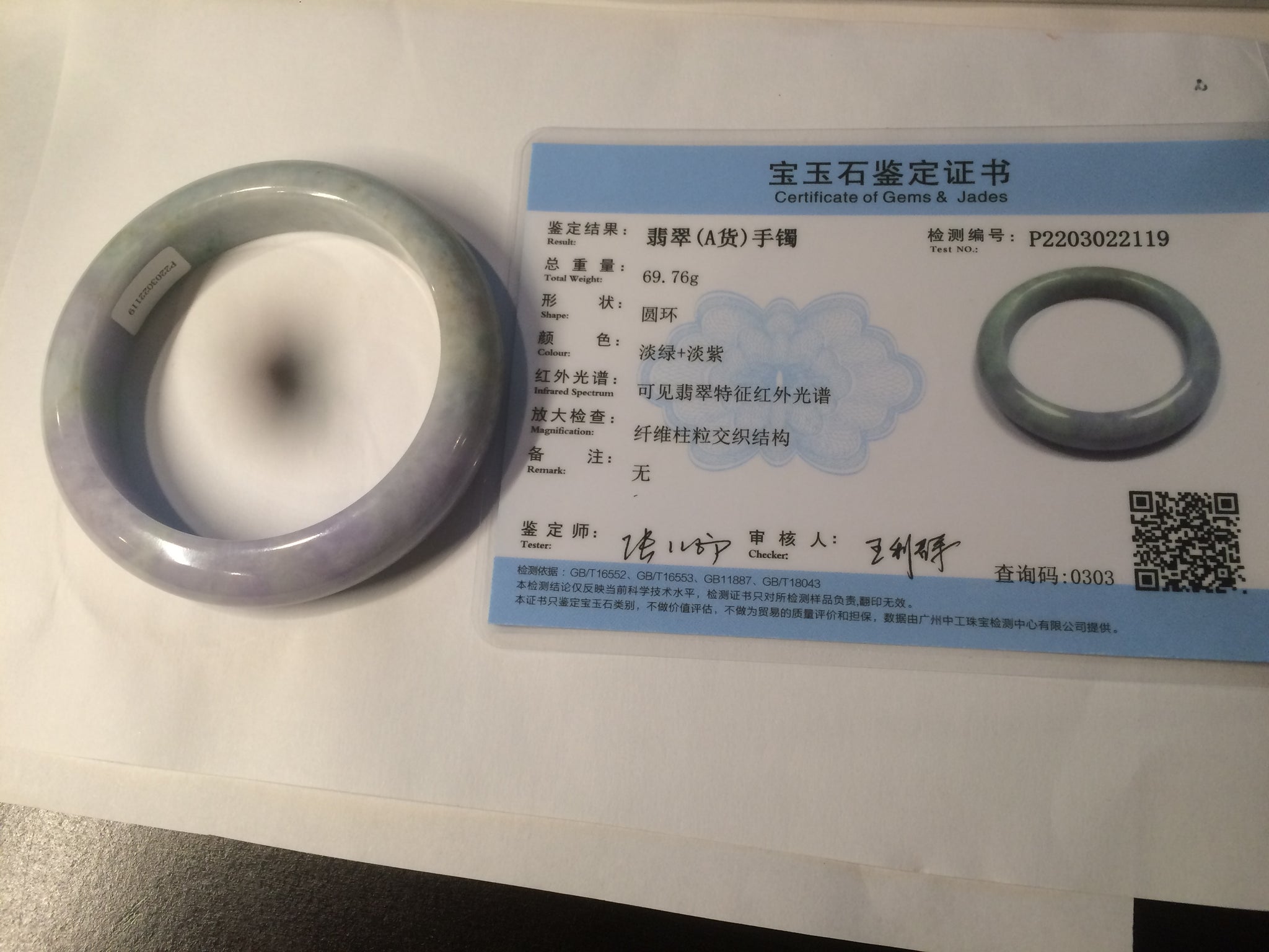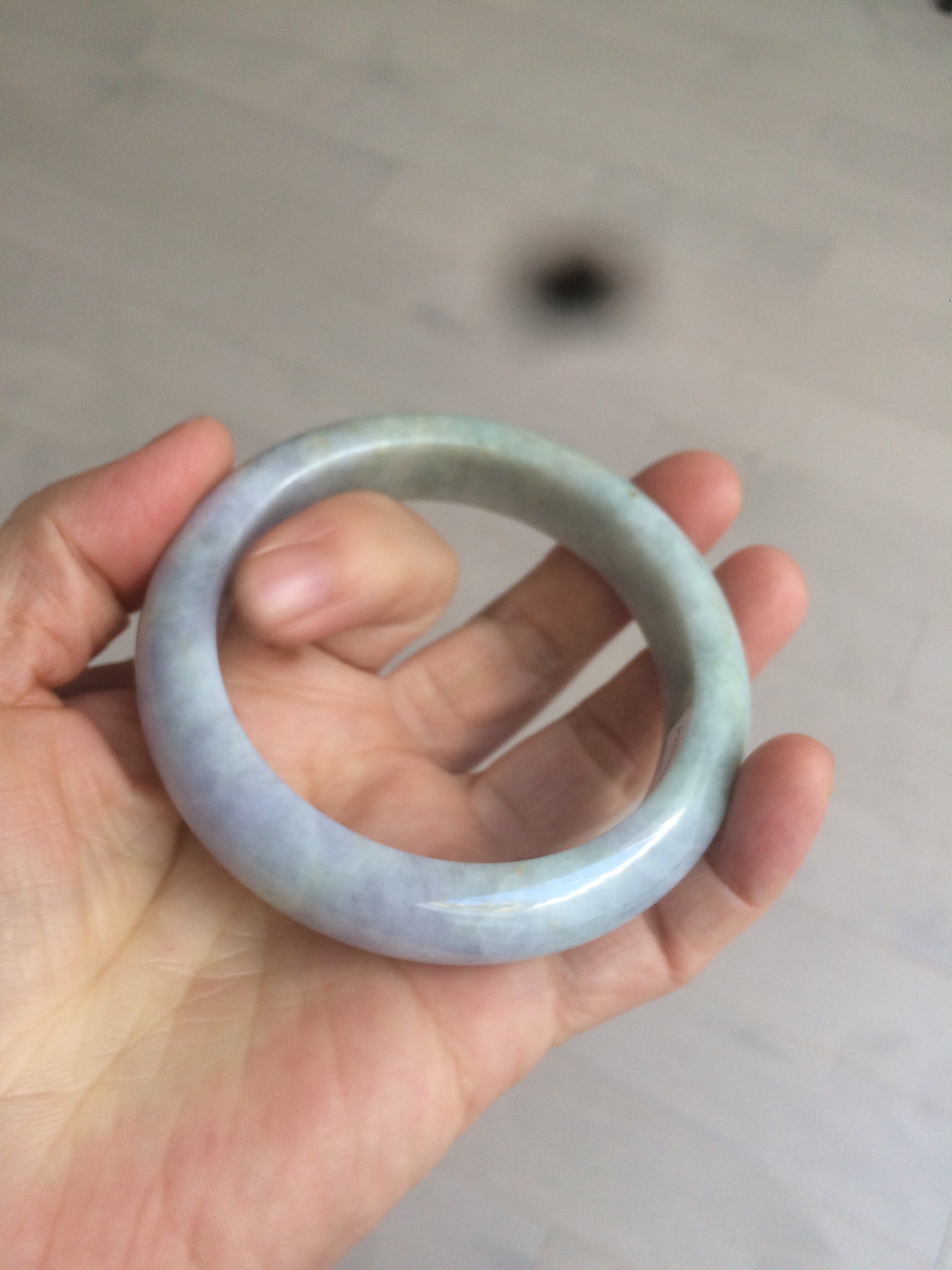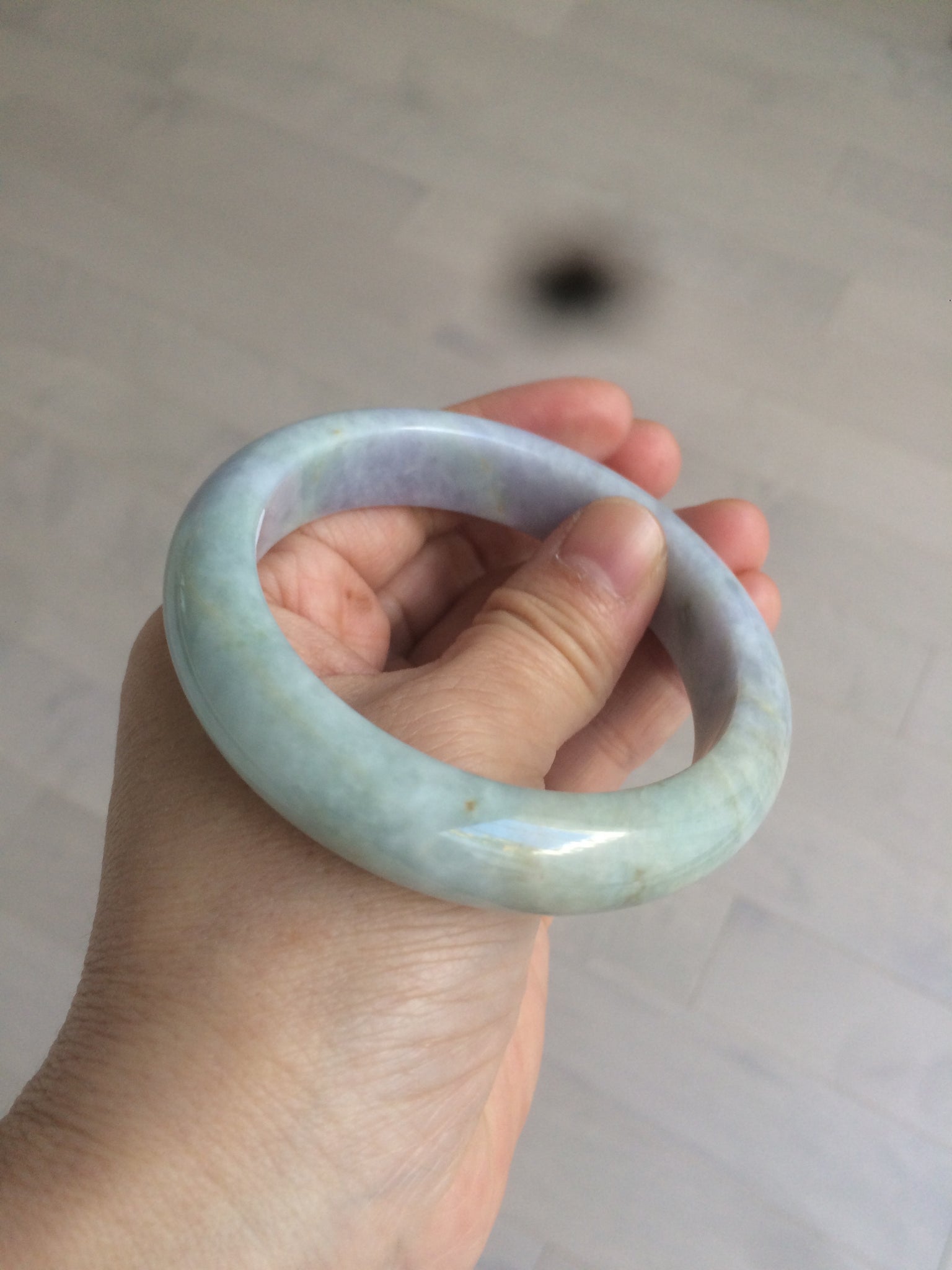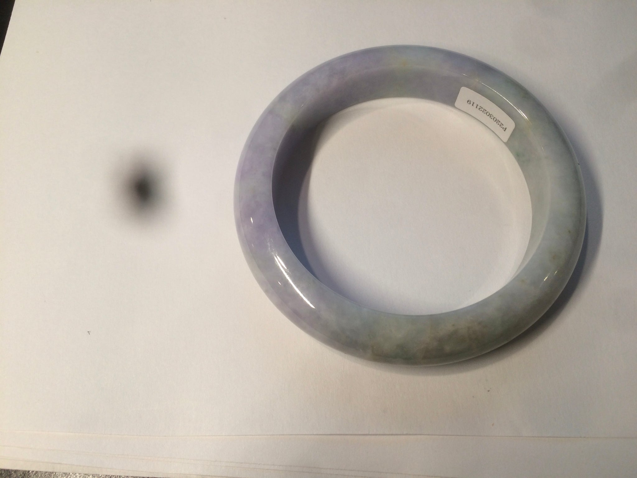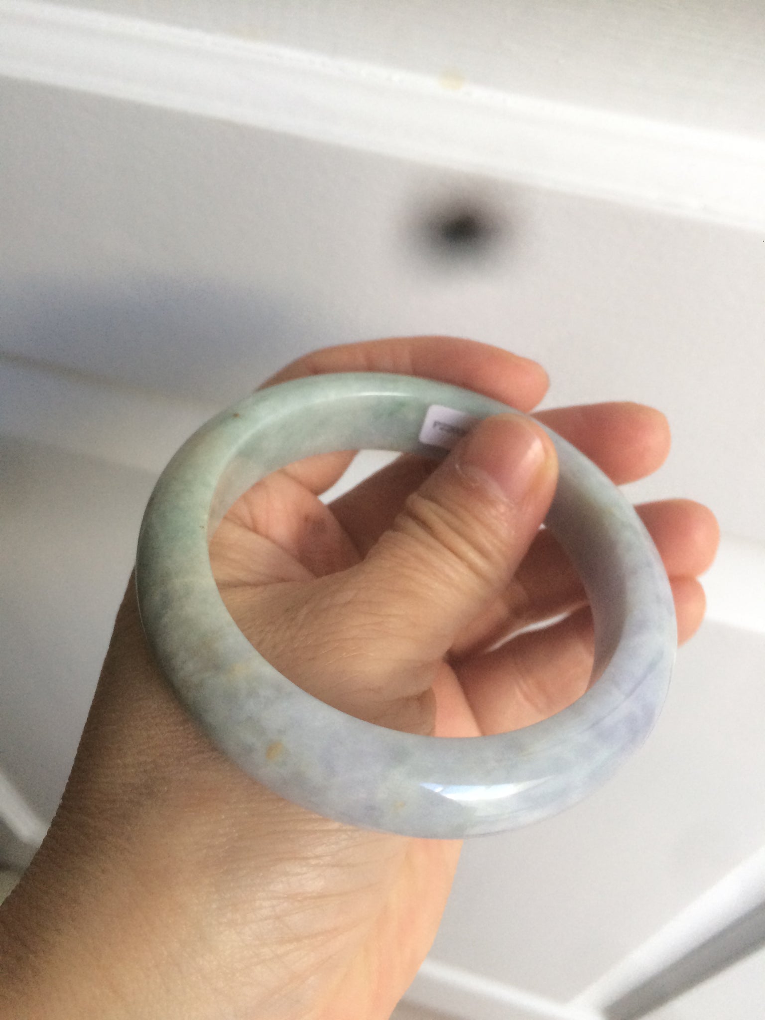 1 crack. The bangle is still firm. Quite a lot of cotton lines, cotton spots, and cotton areas (photos may not show all). One color root. Some rough surfaces. Some brown spots. The texture is not so fine(coarse). No transparent. Not watery. The purple is very light. Way lighter than in photos.