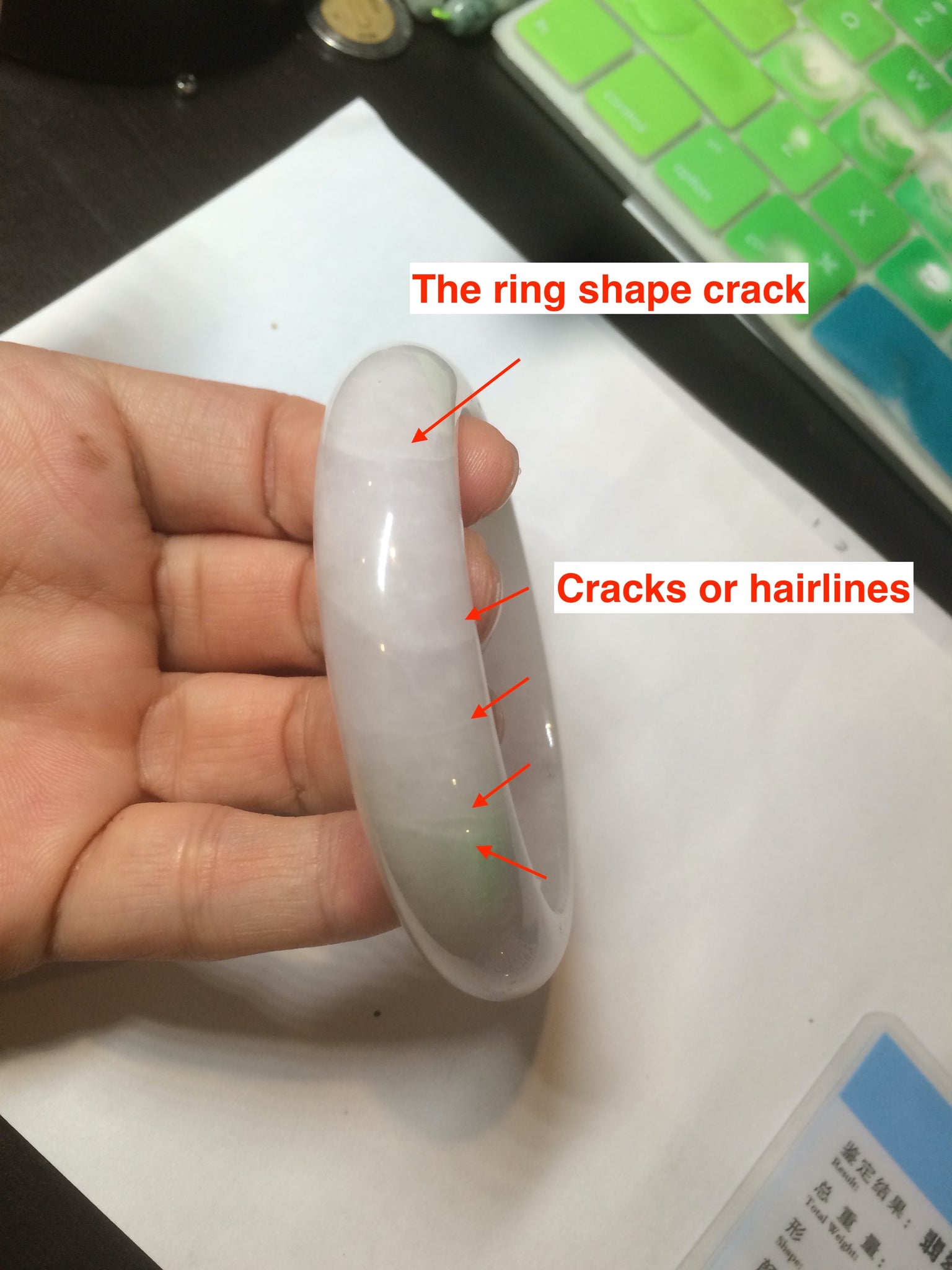 Some cracks and hairlines(more than 8, photos may not show all). one of the cracks is ring shape. Won't influence the firmness. Guaranteed the firmness. Some cotton spots and areas. Some rough surfaces. One or two small rough surfaces has wax residue. The purple is lighter than photos due to the purple always more camera-friendly.