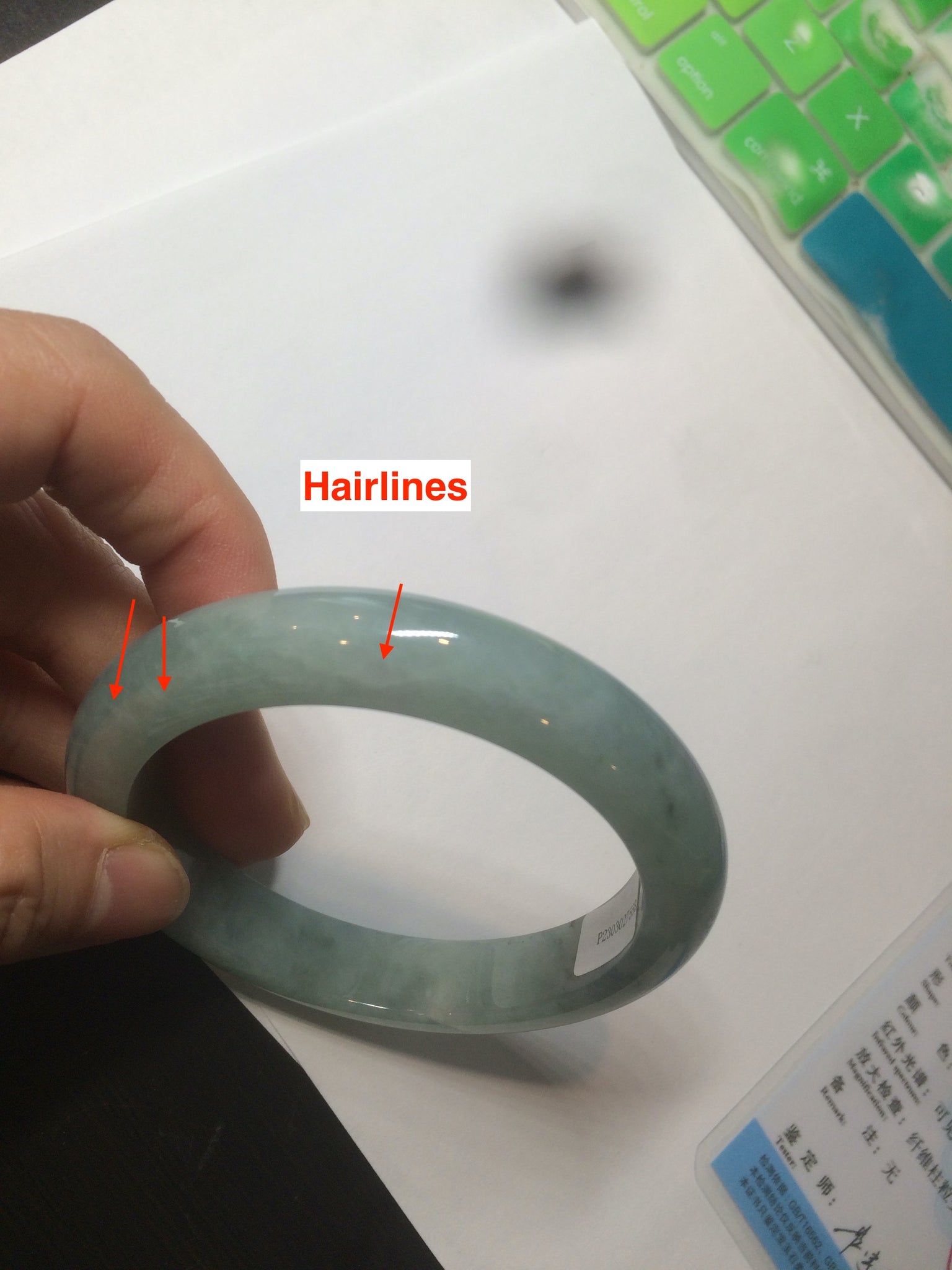 One crack. Cut deep but not around the bangle. The bangle is still firm. Some hairlines. Cotton lines and spots.