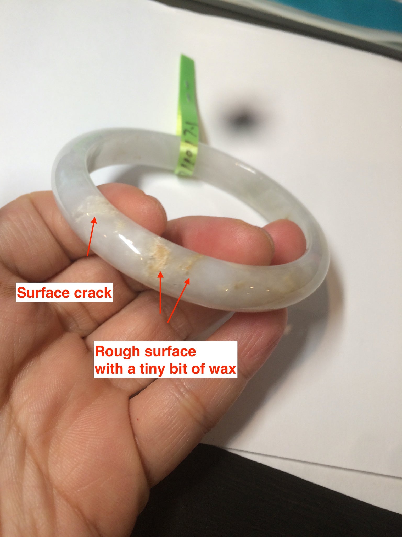 Some cracks. Most of them are alongside the bangle. Won't influence the firmness. Some yellow rough surfaces with a few wax residues. Cotton spots and cotton lines.