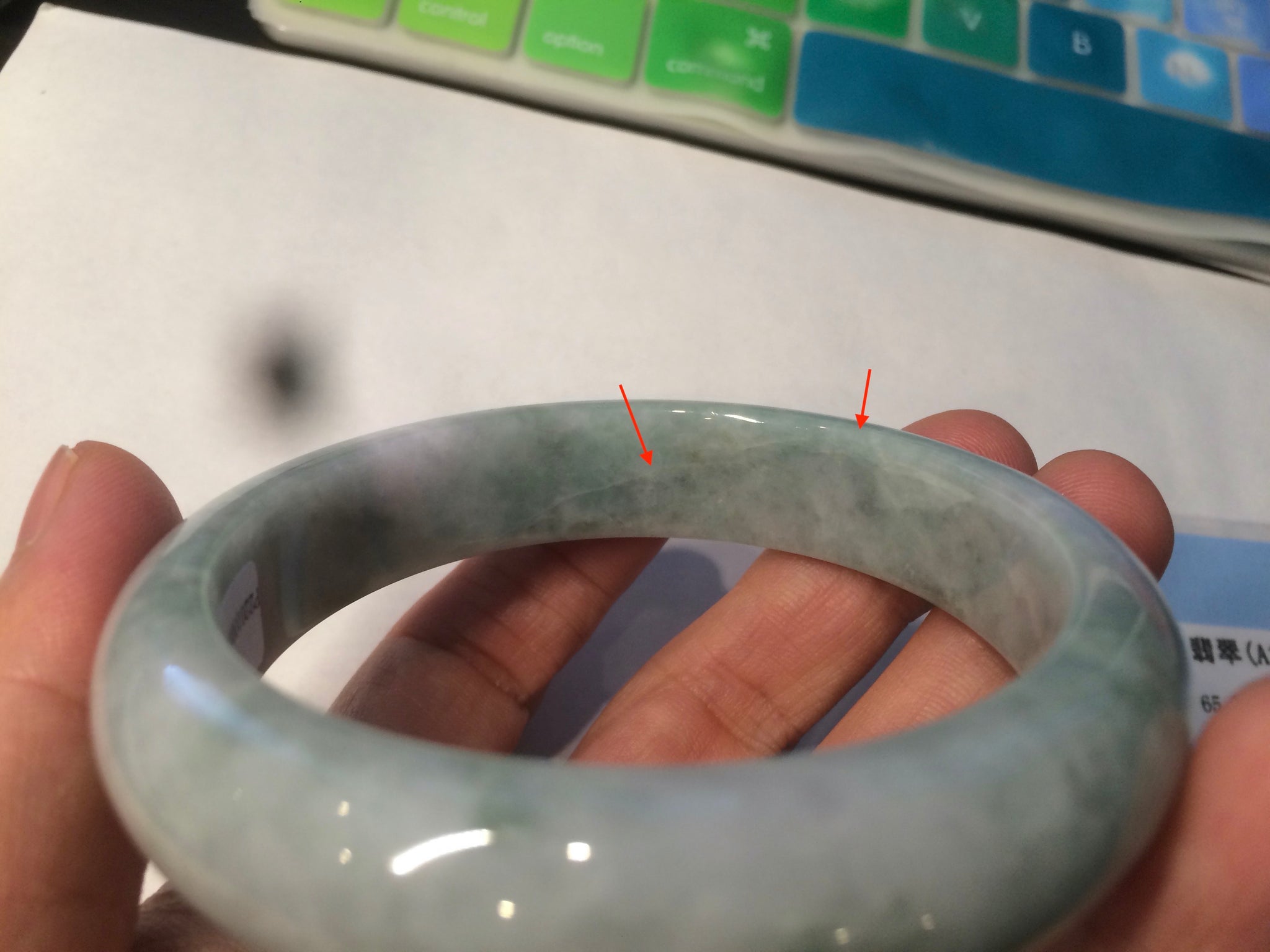 One crack. Some hairlines, some are long. Cotton spots and areas.