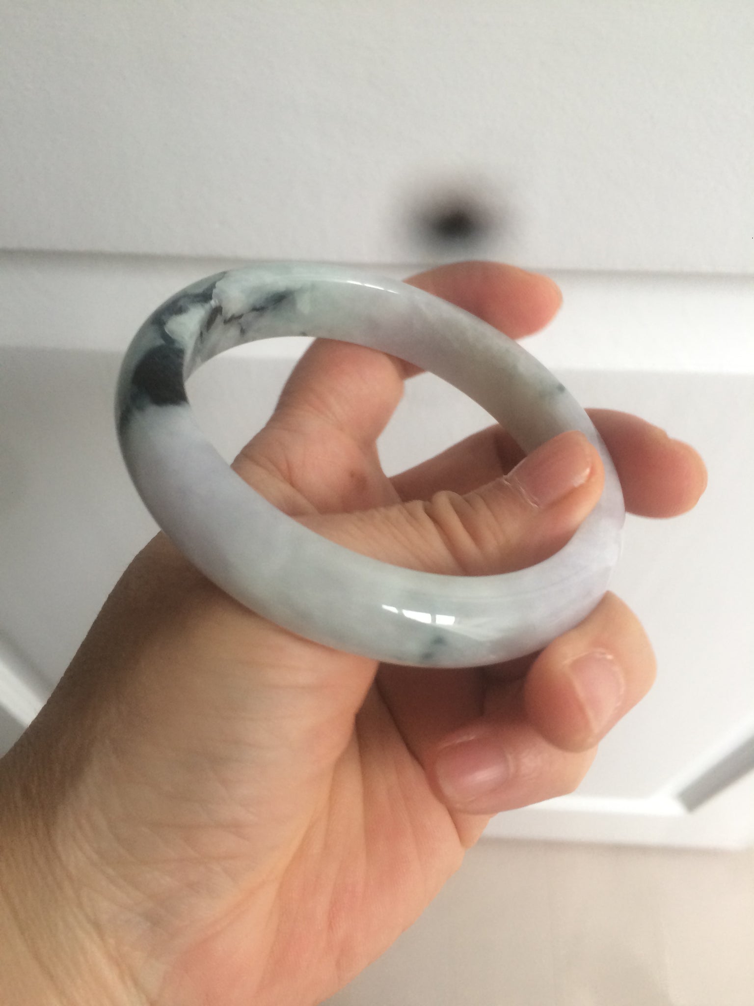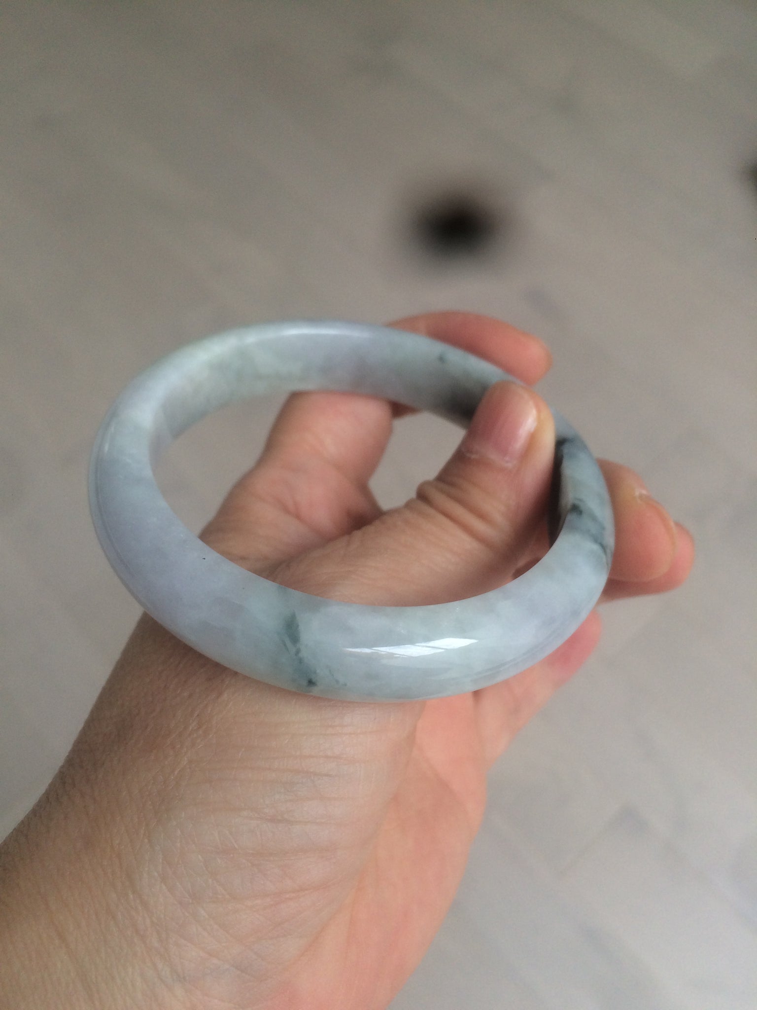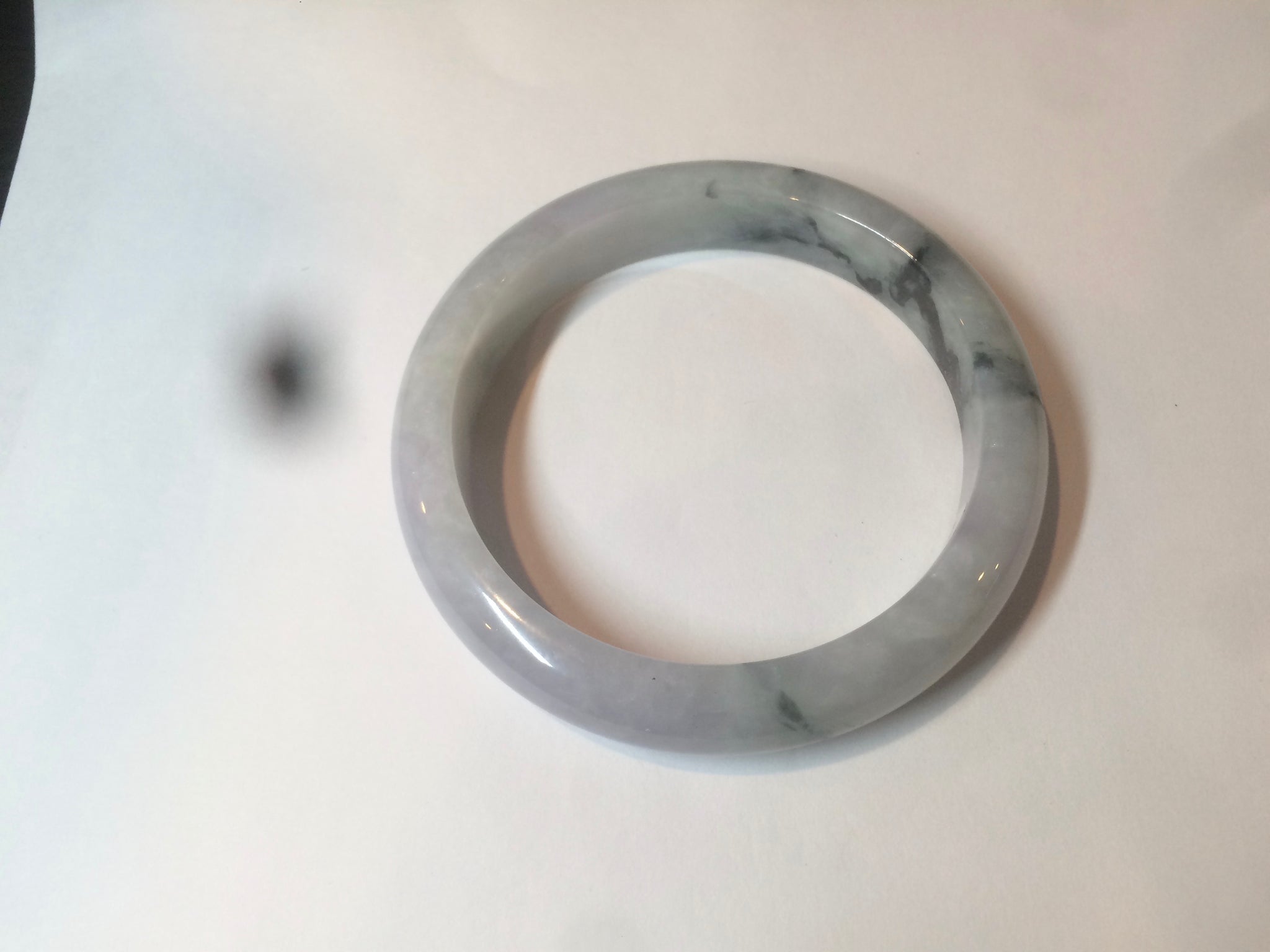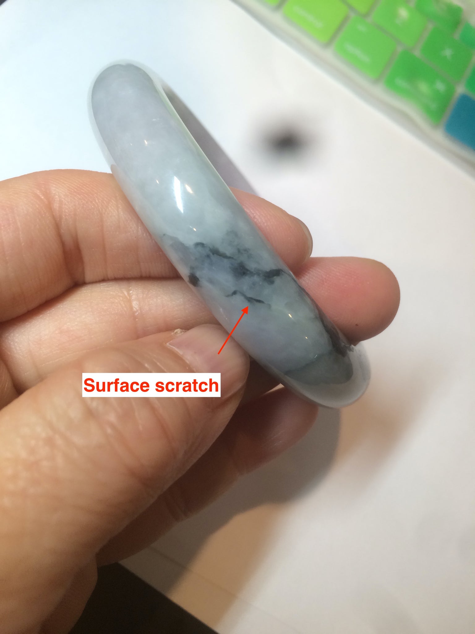 One surface scratch. The surface of the dark green jade is not so smooth. One U shape airline and some cotton lines. Some cotton spots and areas. The purple is lighter than in the photos.