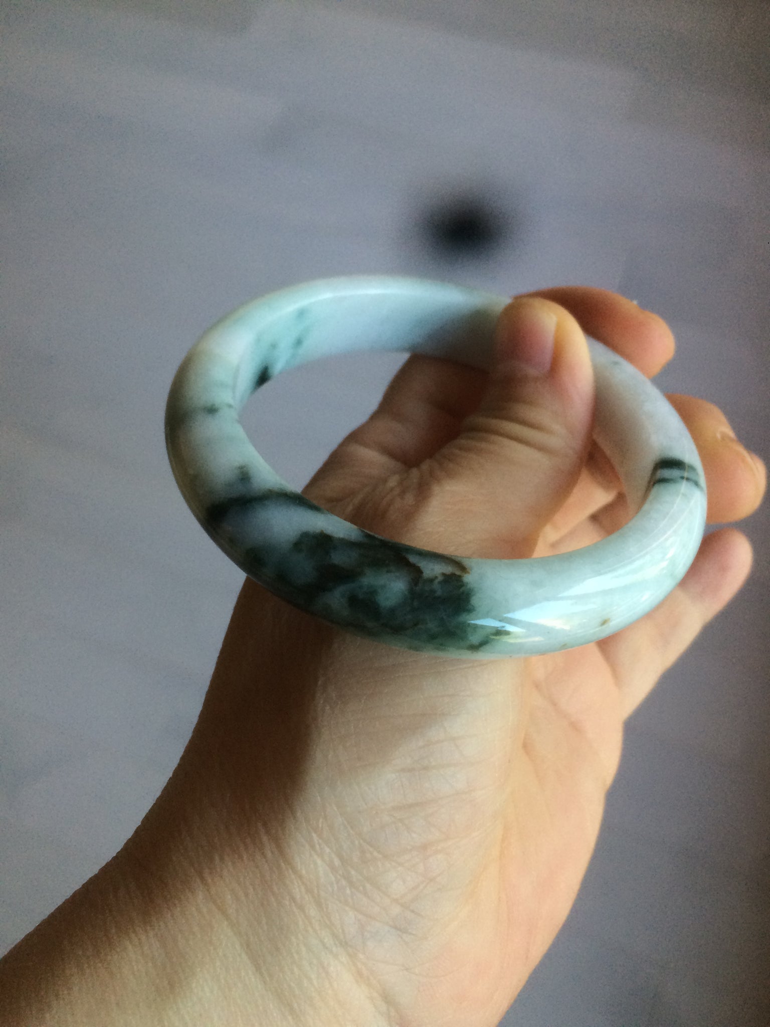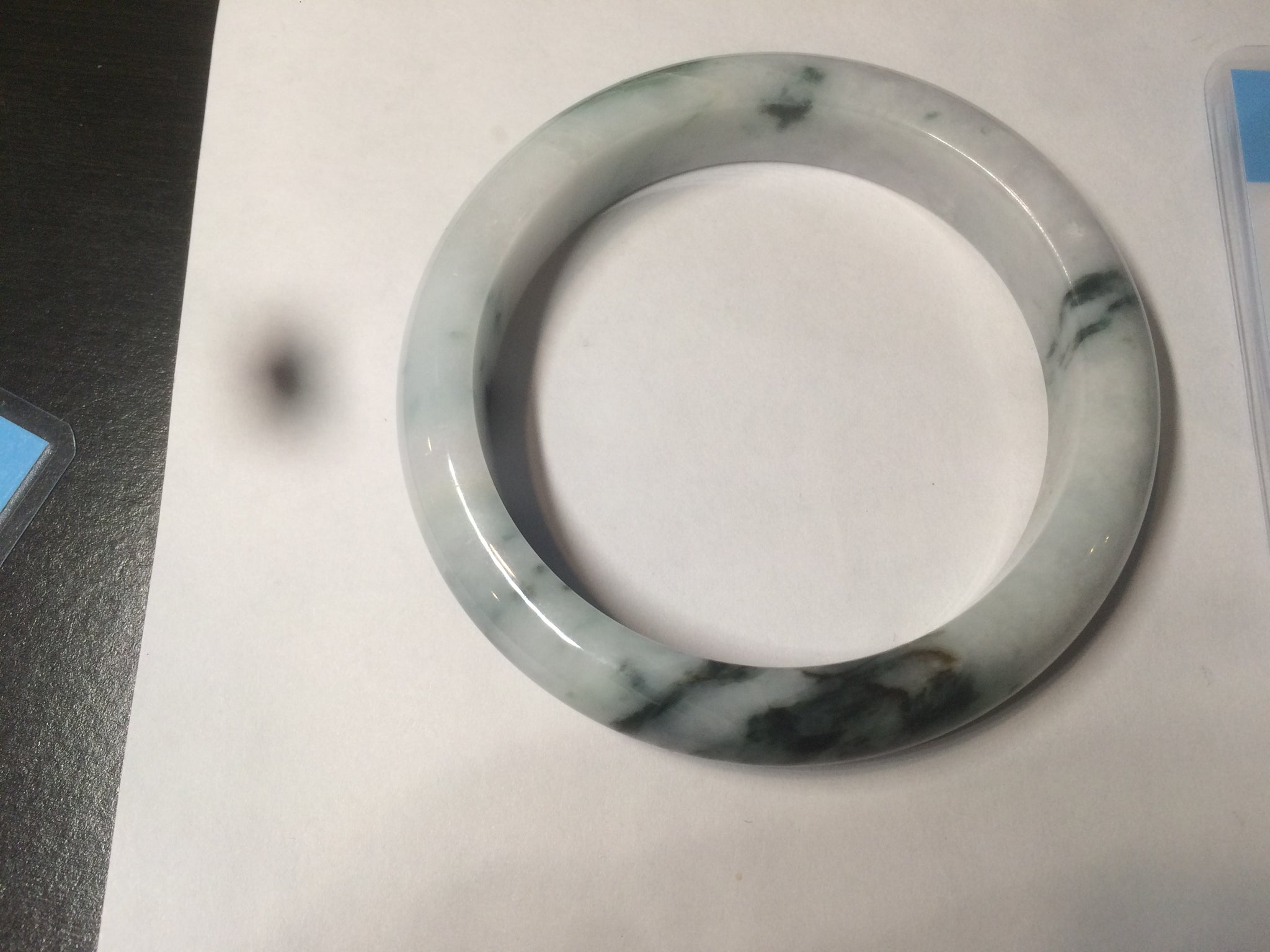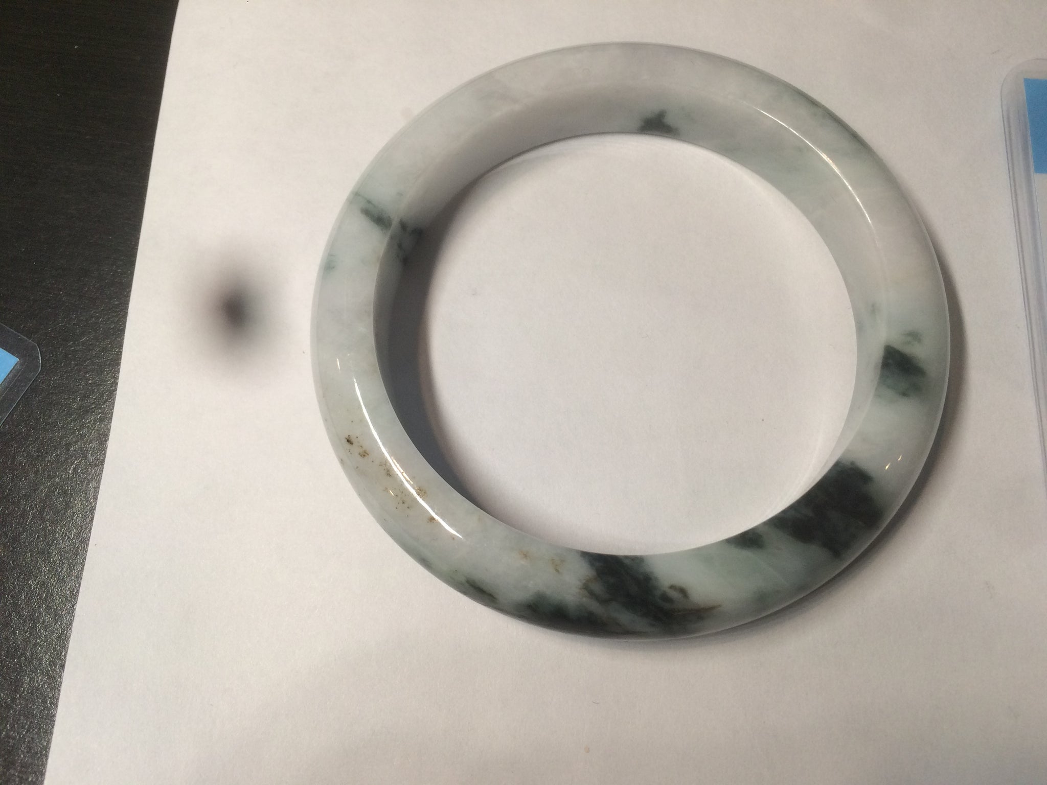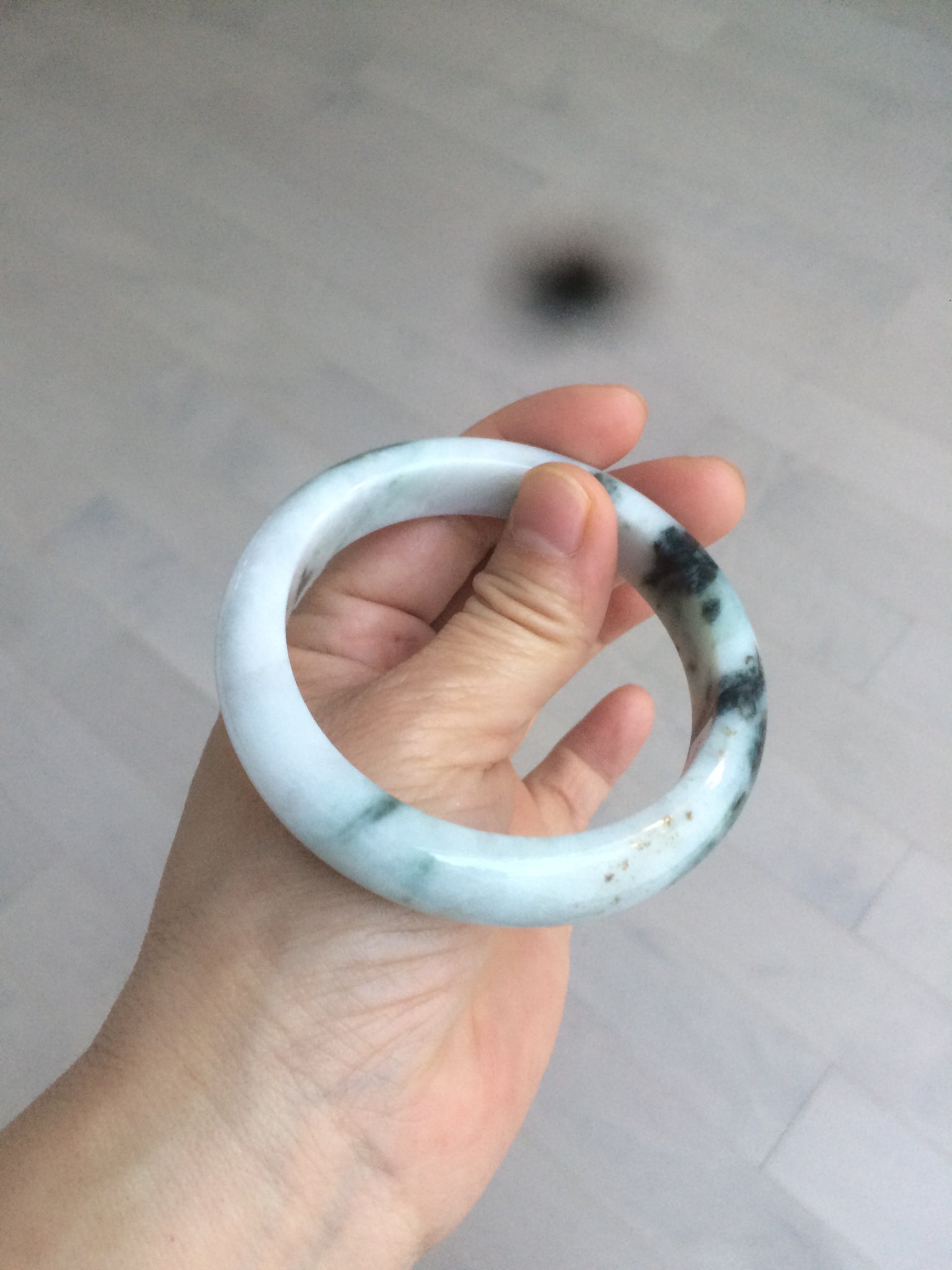 Some crack and color root cracks. The bangle is solid(guarenteed). Some hairlines and color roots. Cotton lines and spots. Porcelain background. Brown spots. Not transparent.