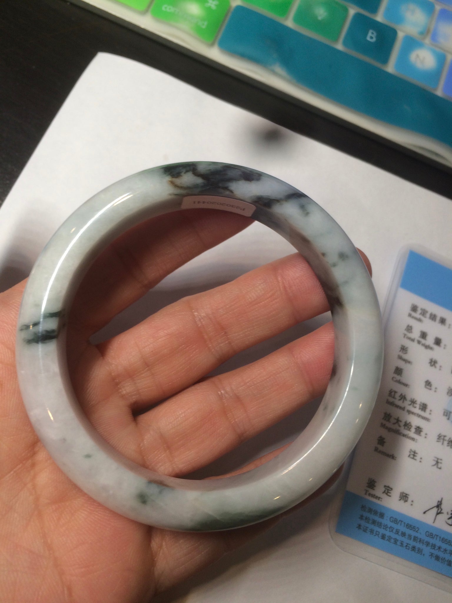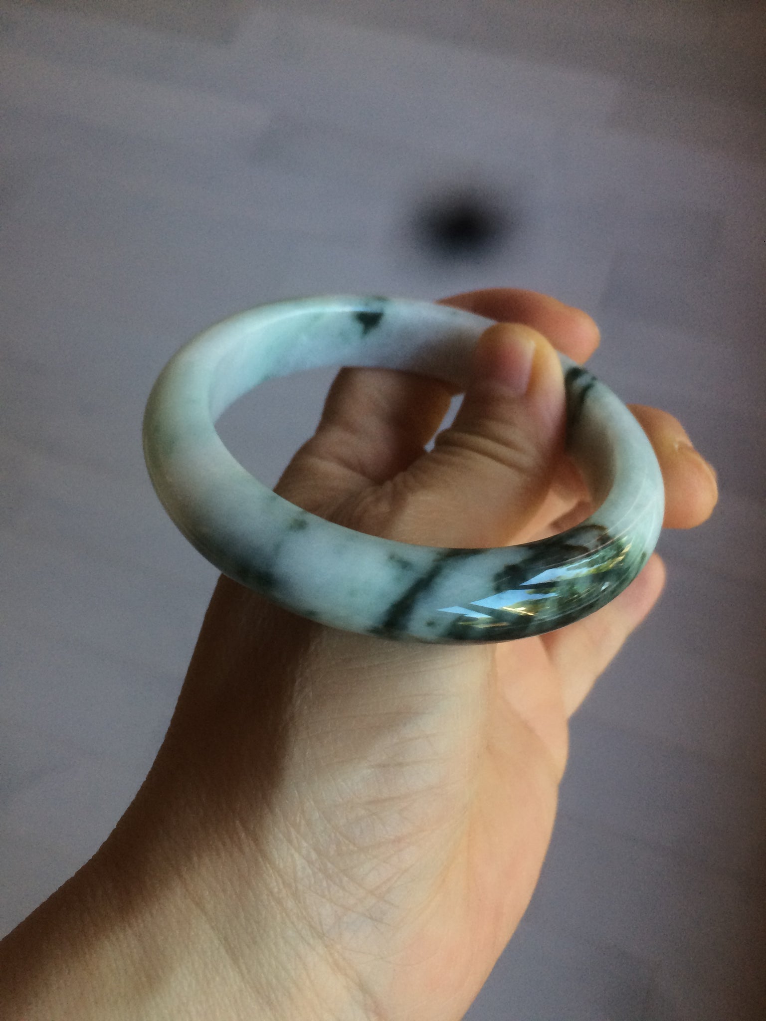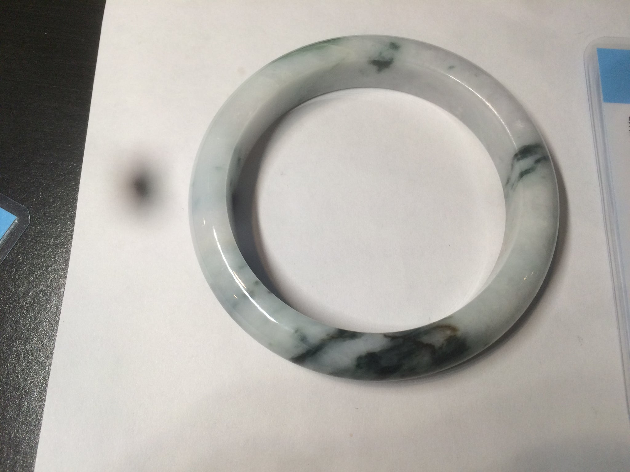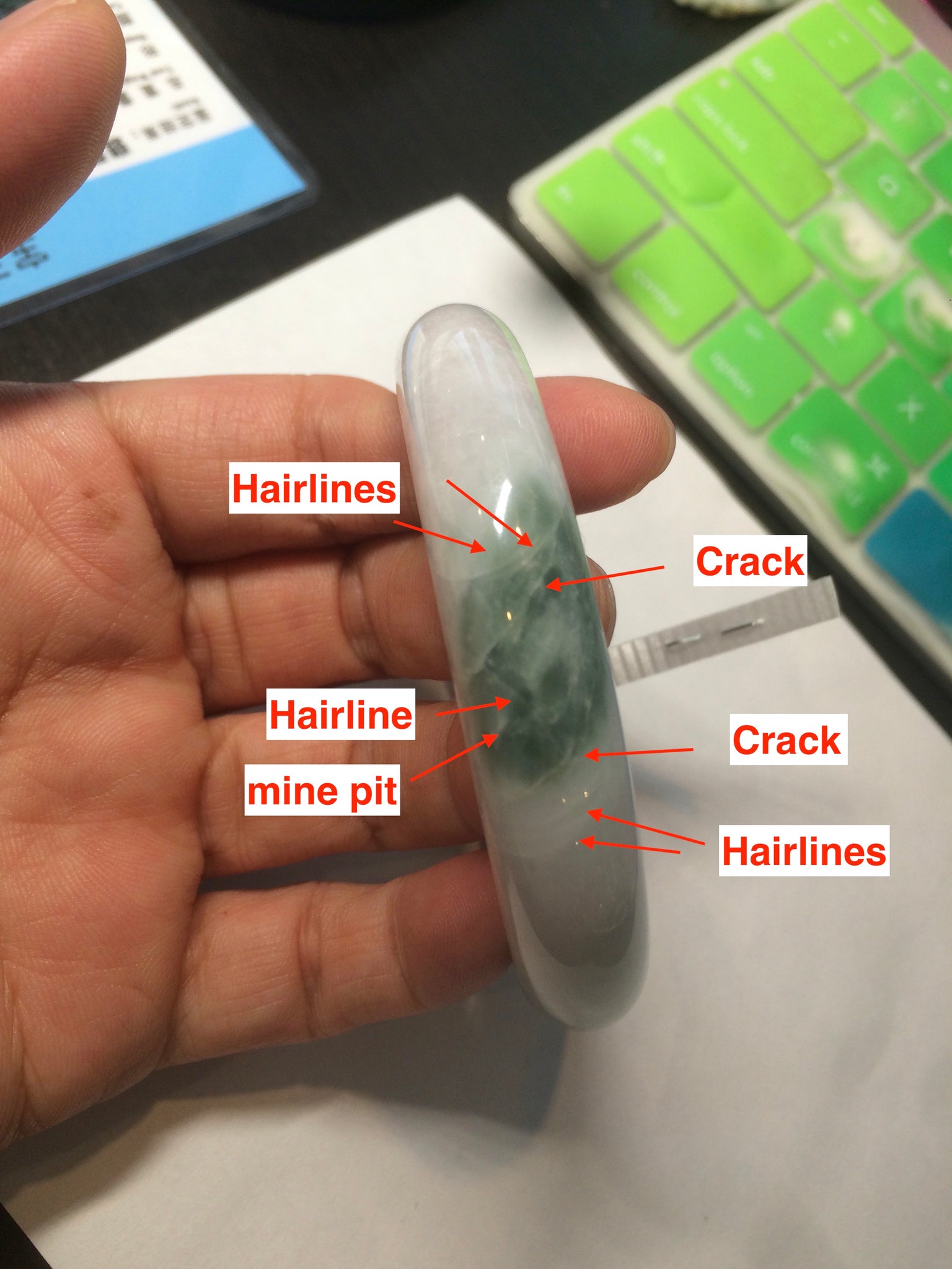 Some crack and color root cracks. The bangle is solid(guarenteed). Some hairlines and color roots. Cotton lines and spots. Porcelain background. Brown spots. Not transparent.