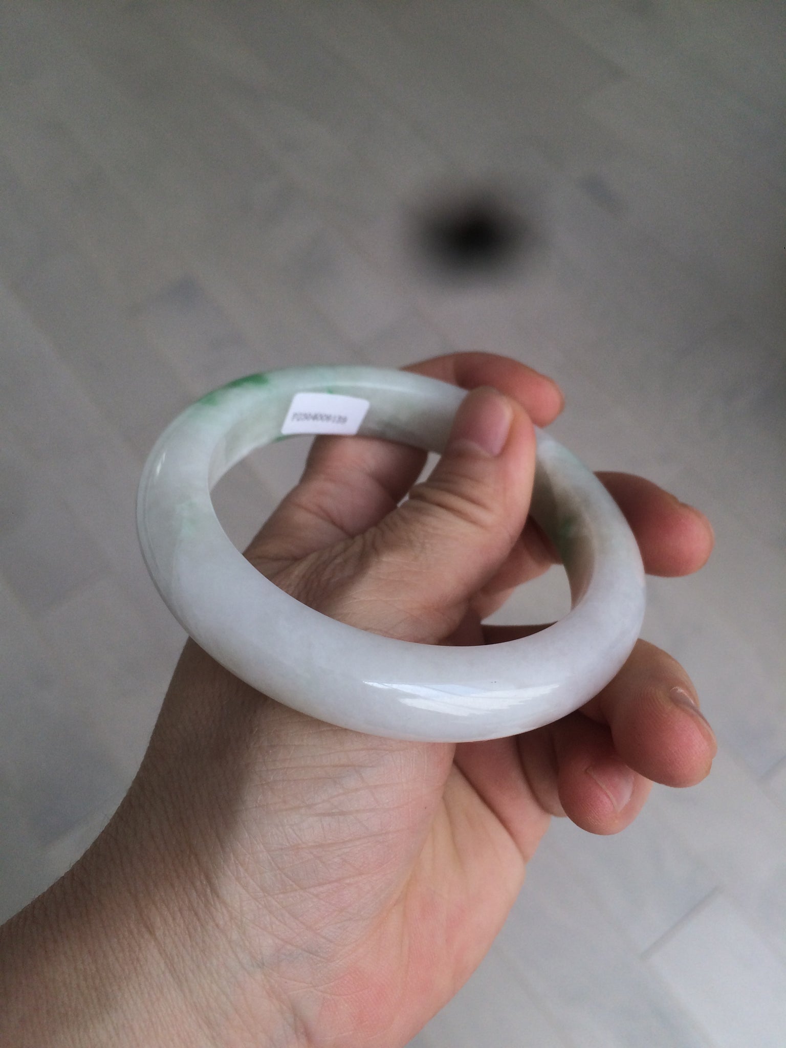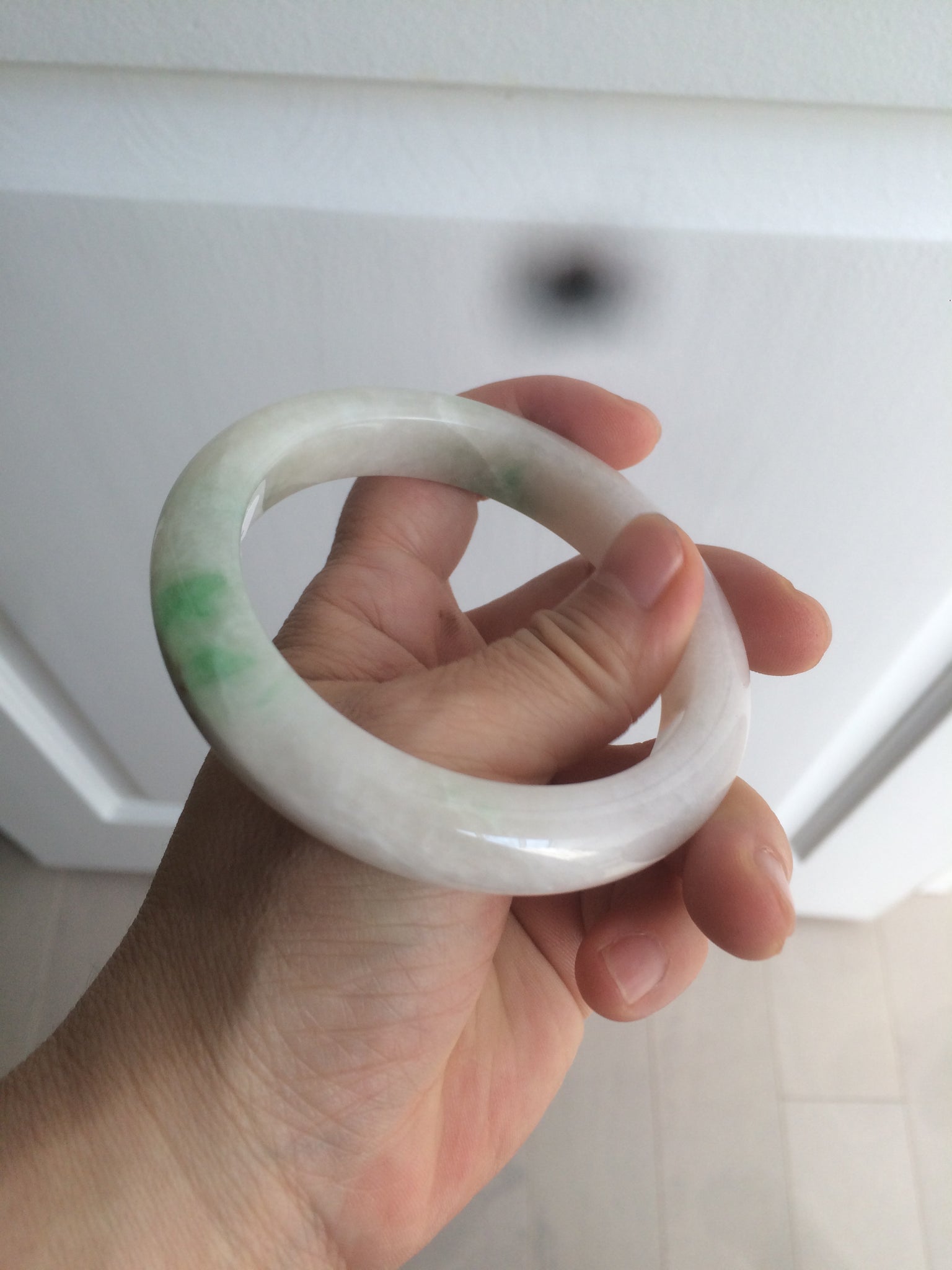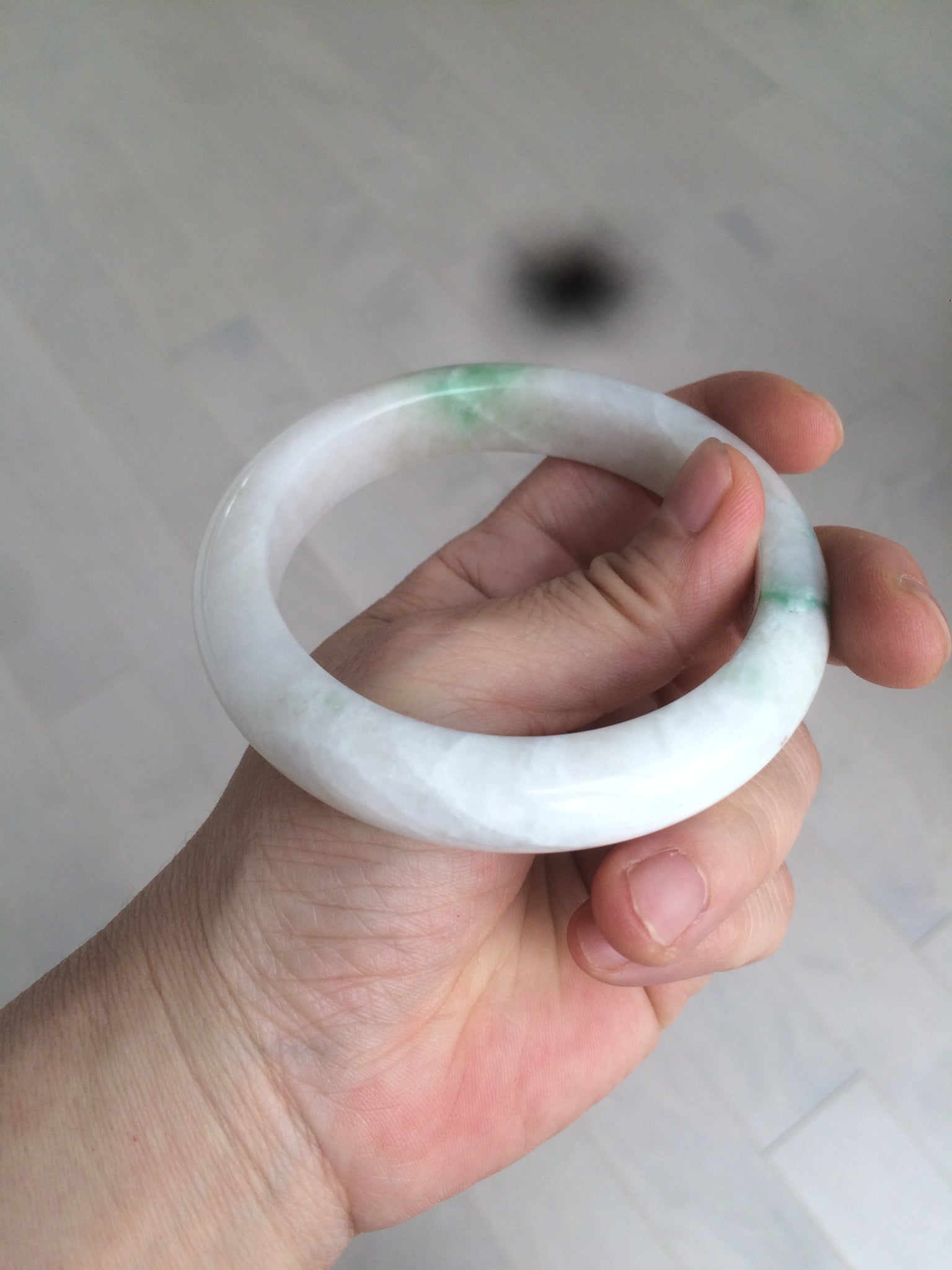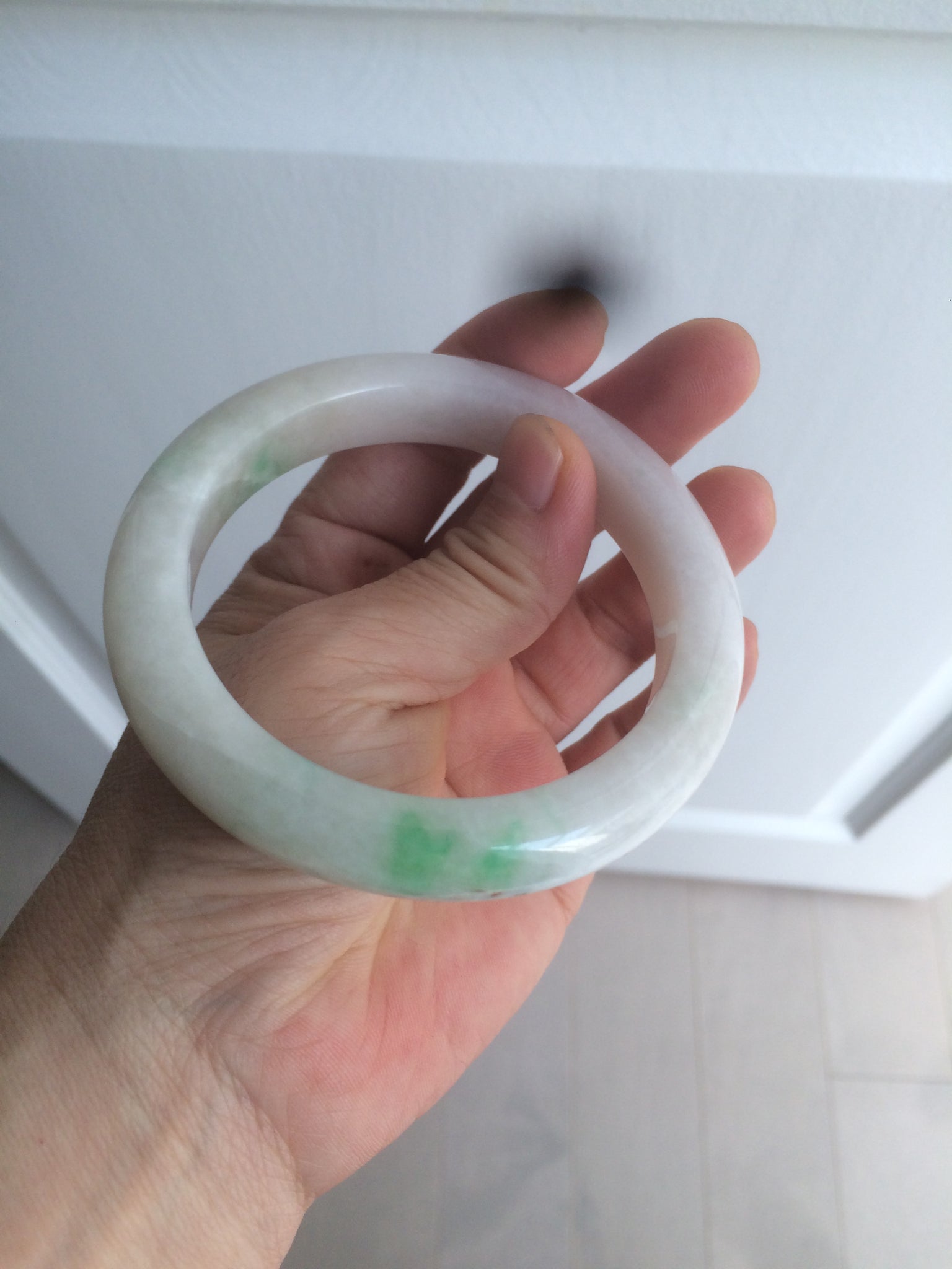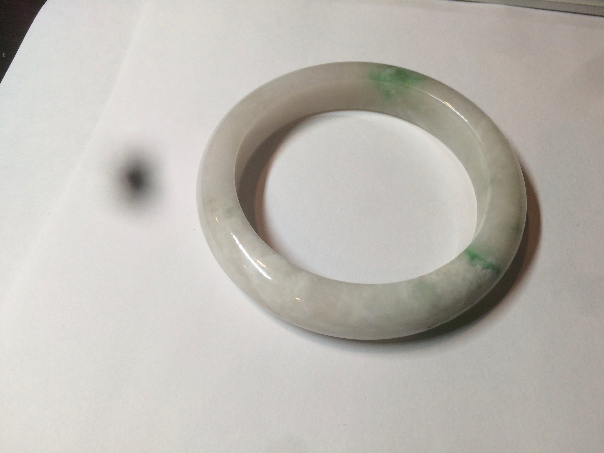 One u shape crack on a rough surface. Quite a lot of hairlines. Some of them are long. Photos may not show all. The bangle is solid(Guaranteed!). Makes a high-pitched sound when clicked. Some cotton spots and lines.  Not transparent. The purple is lighter than in the photos.