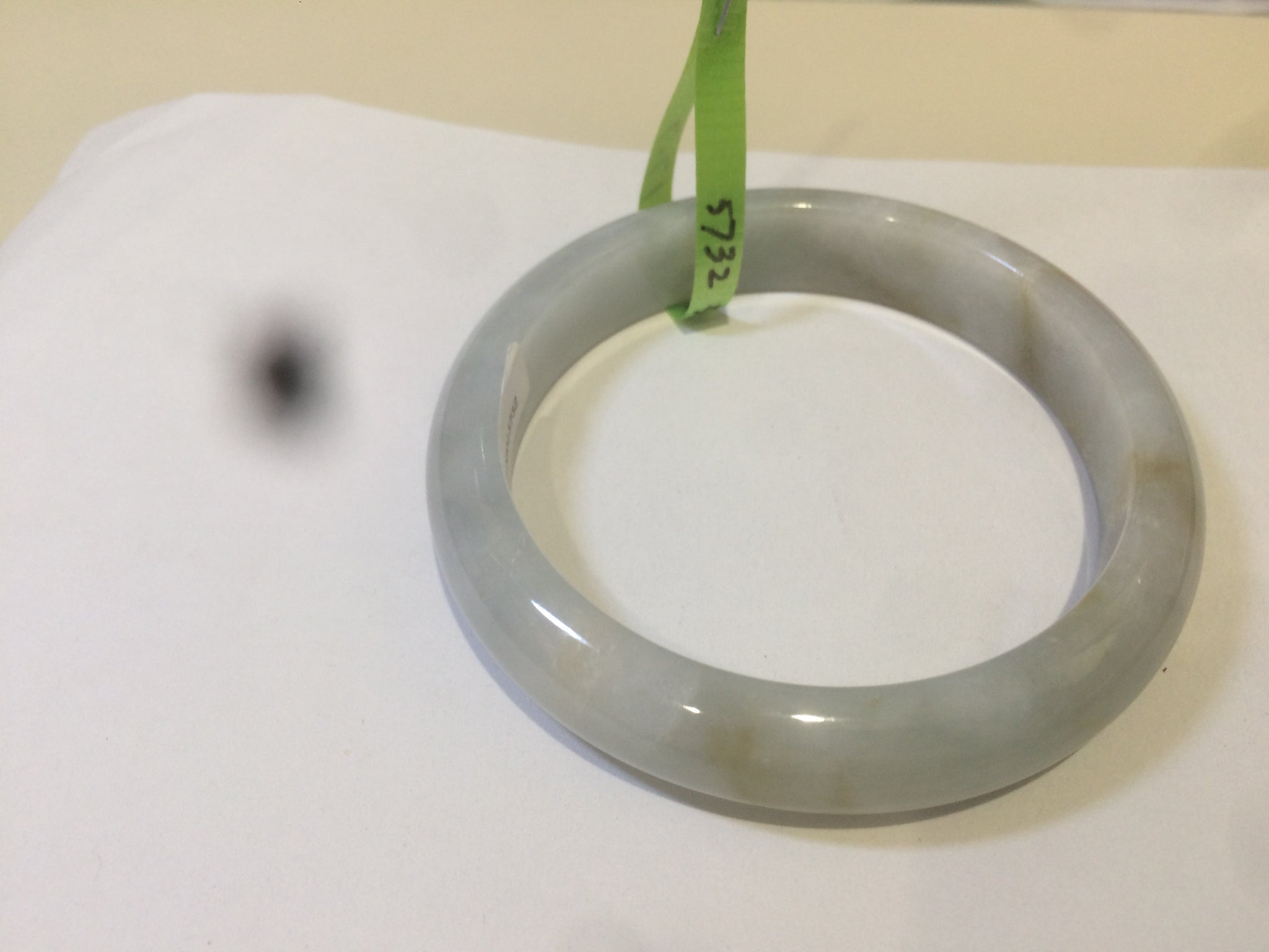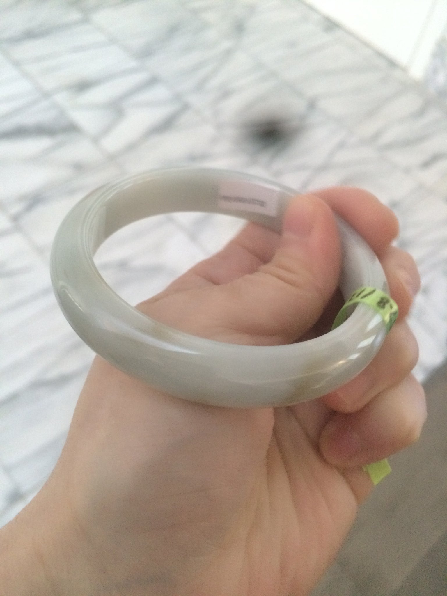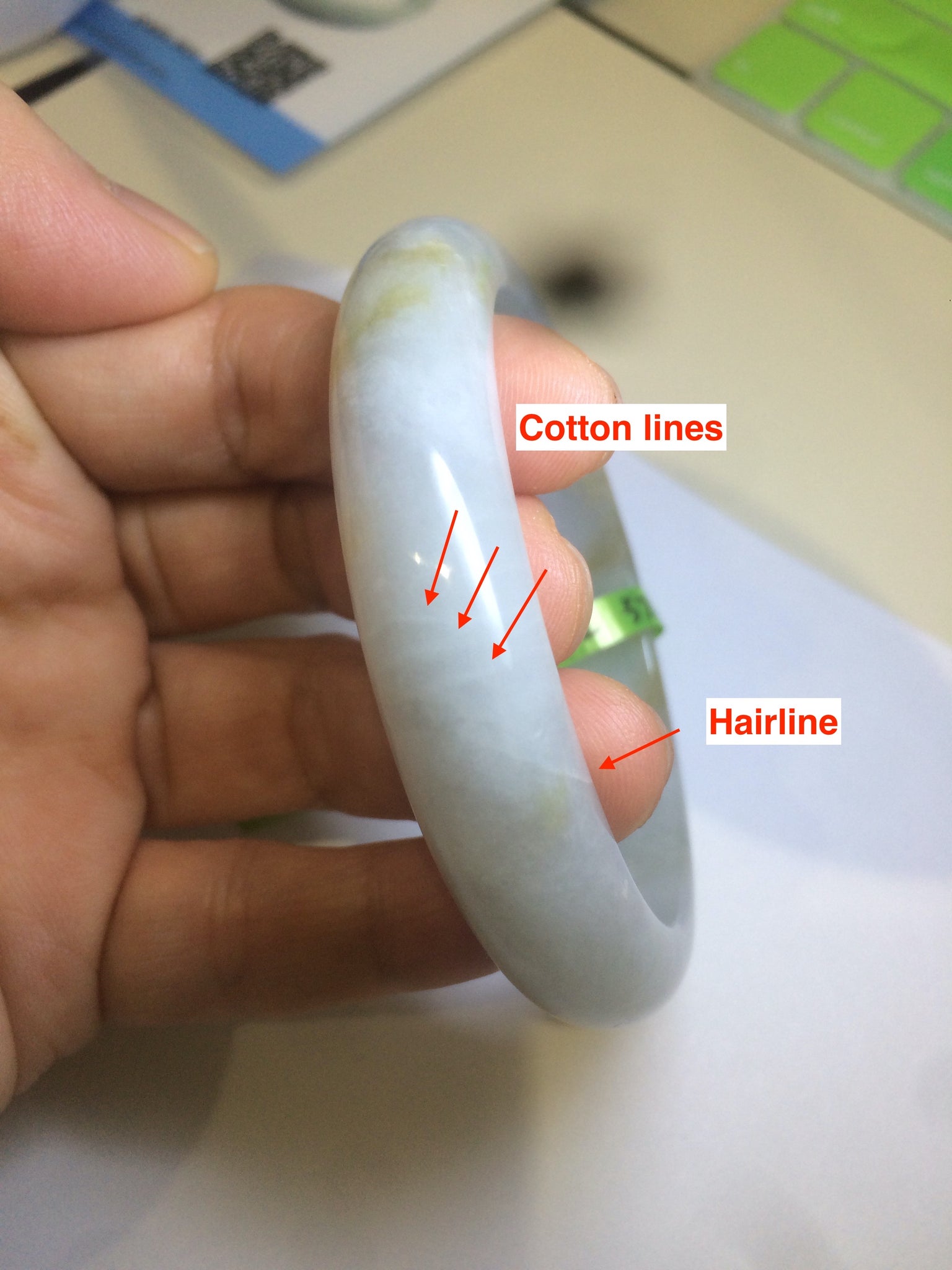 No crack. Some hairlines and cotton lines. Some yellow jade areas. One rough surface with a tiny little bit of WAX.