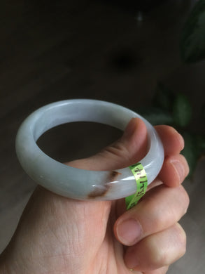 52.6mm certified Type A 100% Natural white/brown Jadeite Jade bangle AB53-0005