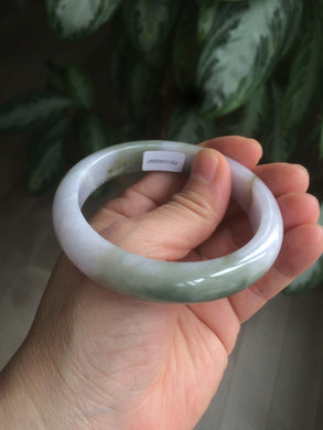 53.7mm certificated Type A 100% Natural light green/gray Jadeite Jade bangle R67-7251