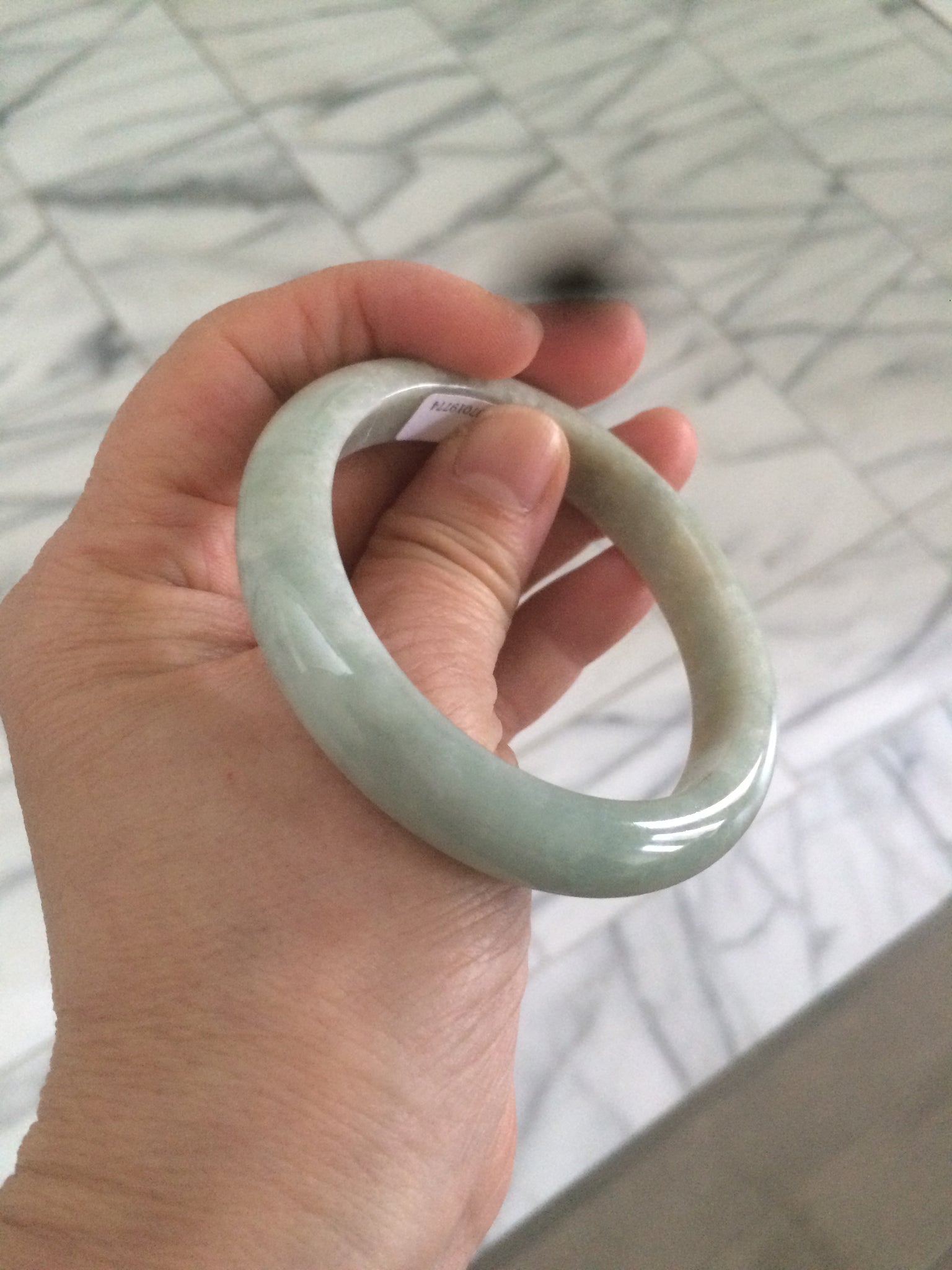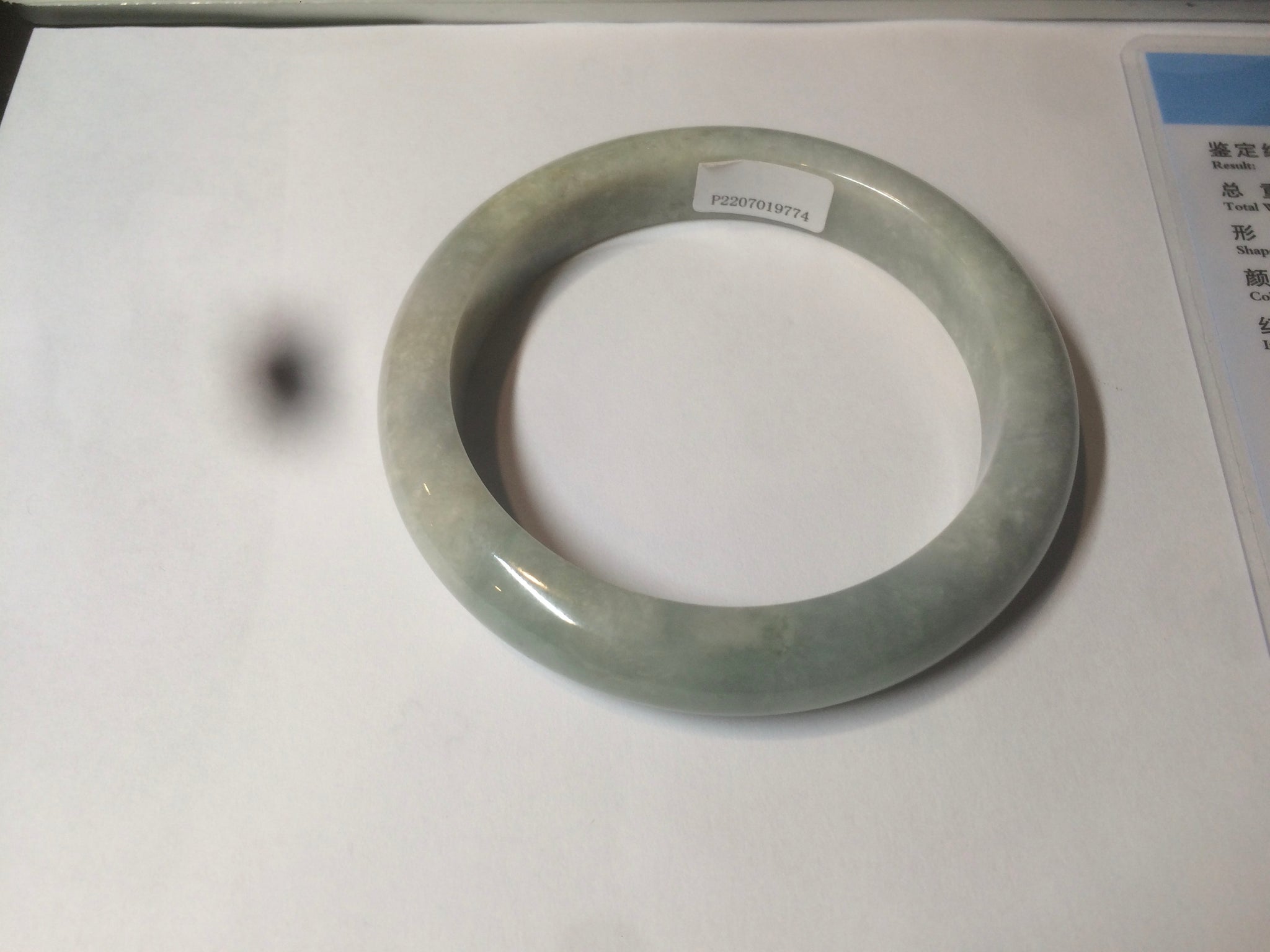 54.4mm Certified Type A 100% Natural white/light green Jadeite Jade bangle AF61-9774