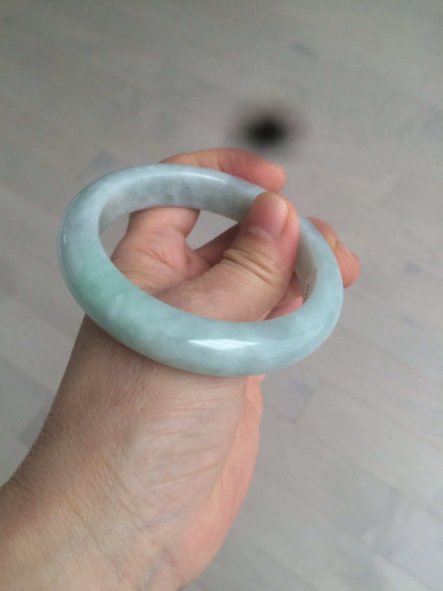 55.7mm certified 100% natural green/white jadeite jade bangle AB89-2254
