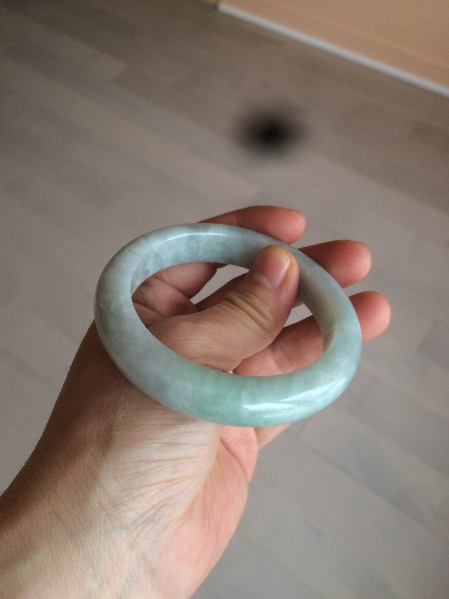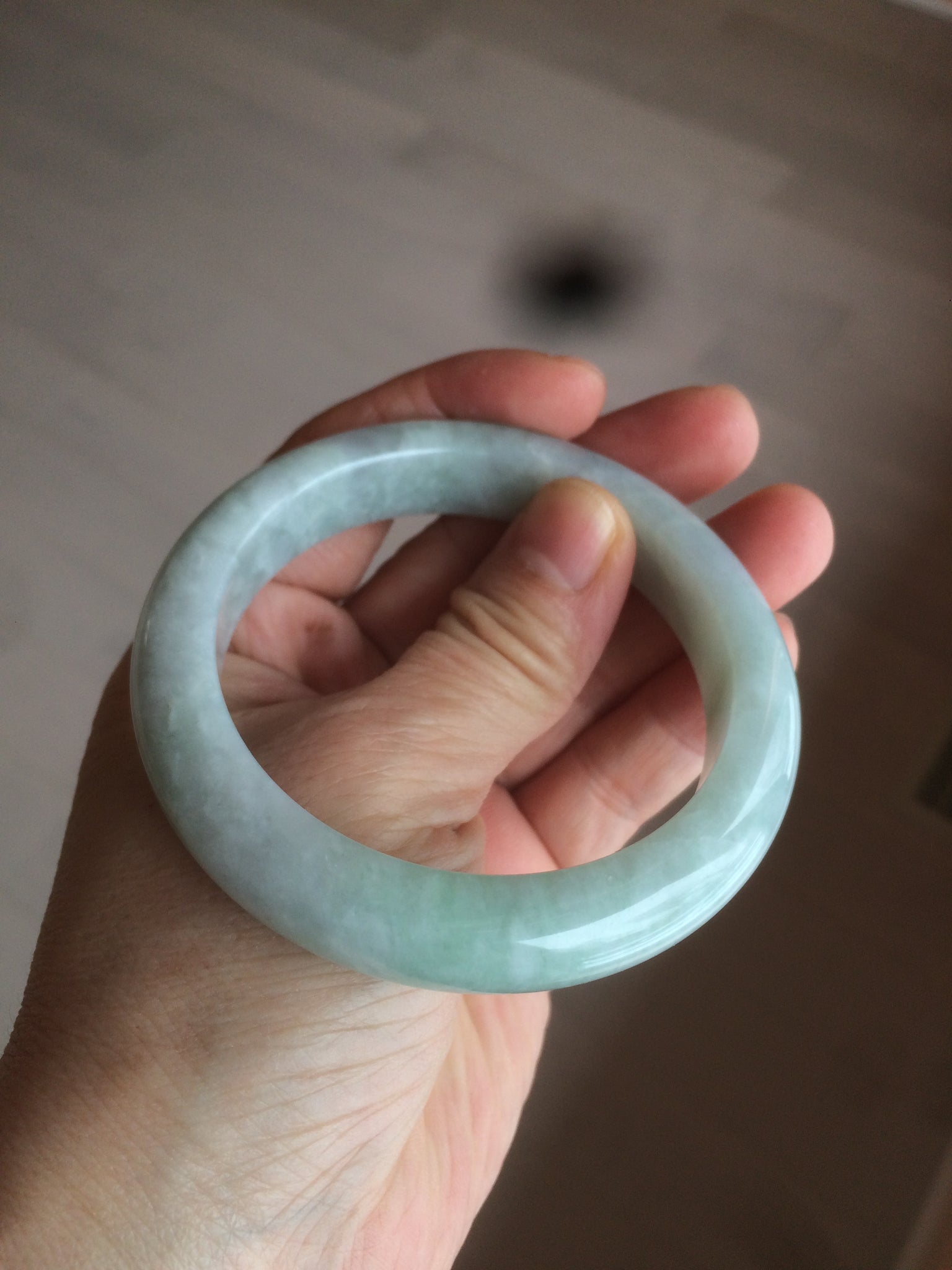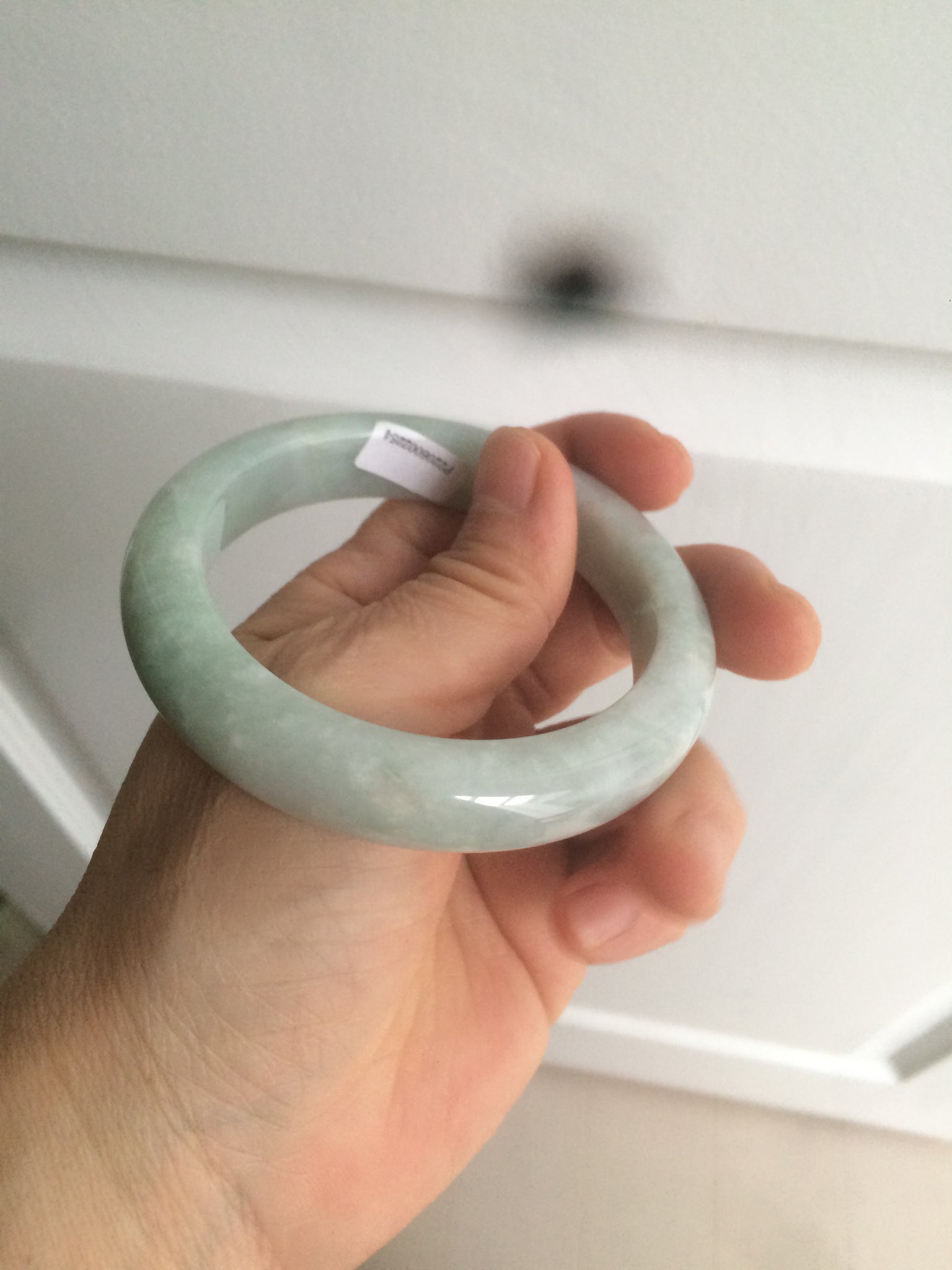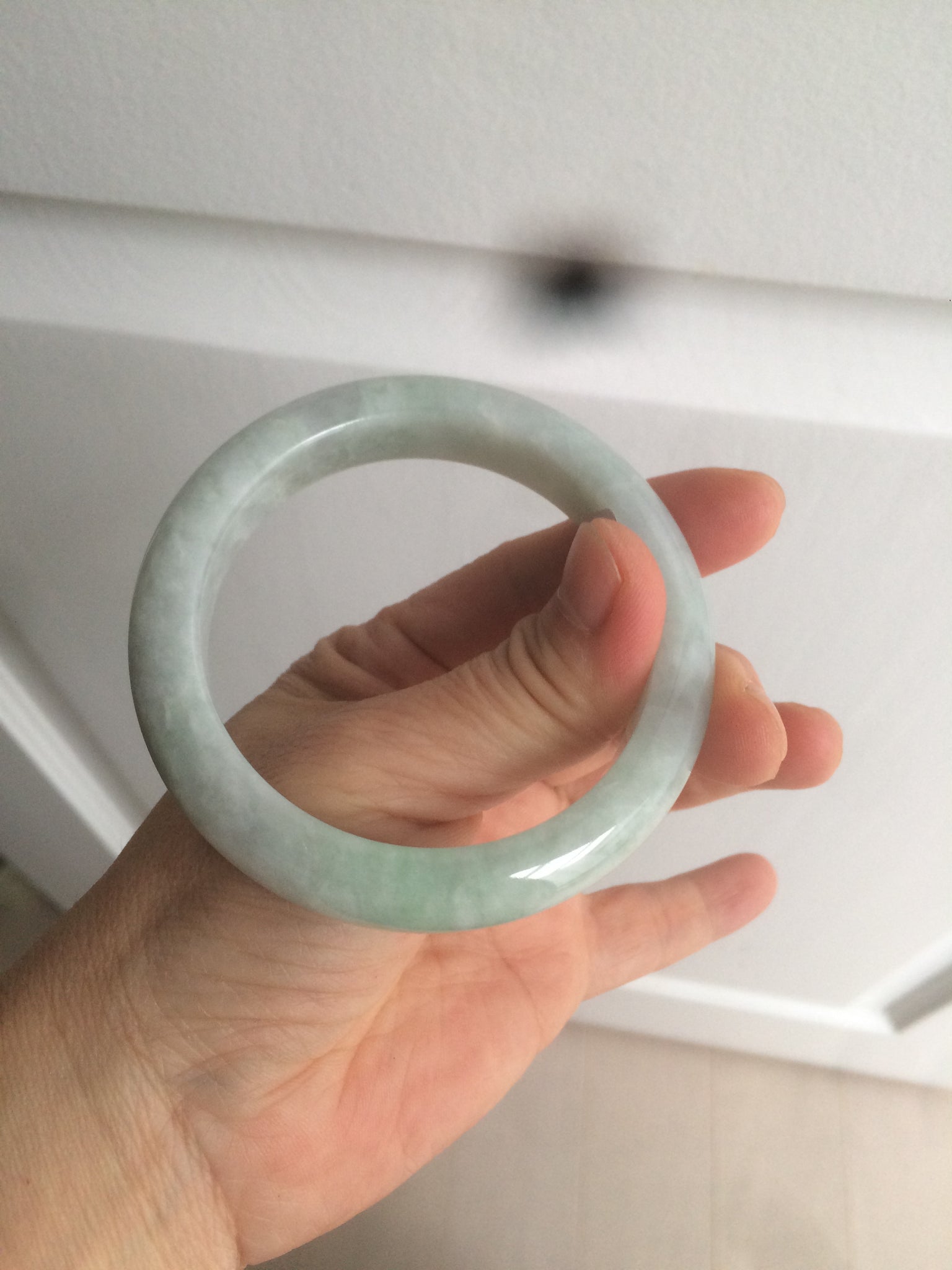 Some cracks. One of them may look like an around-the-bangle crack, but it is not. The bangle is still firm. Makes high pitch sound when clicked. Some hairlines. Some rough surfaces. Cotton spots and lines. Please check the photos and video for a close look.