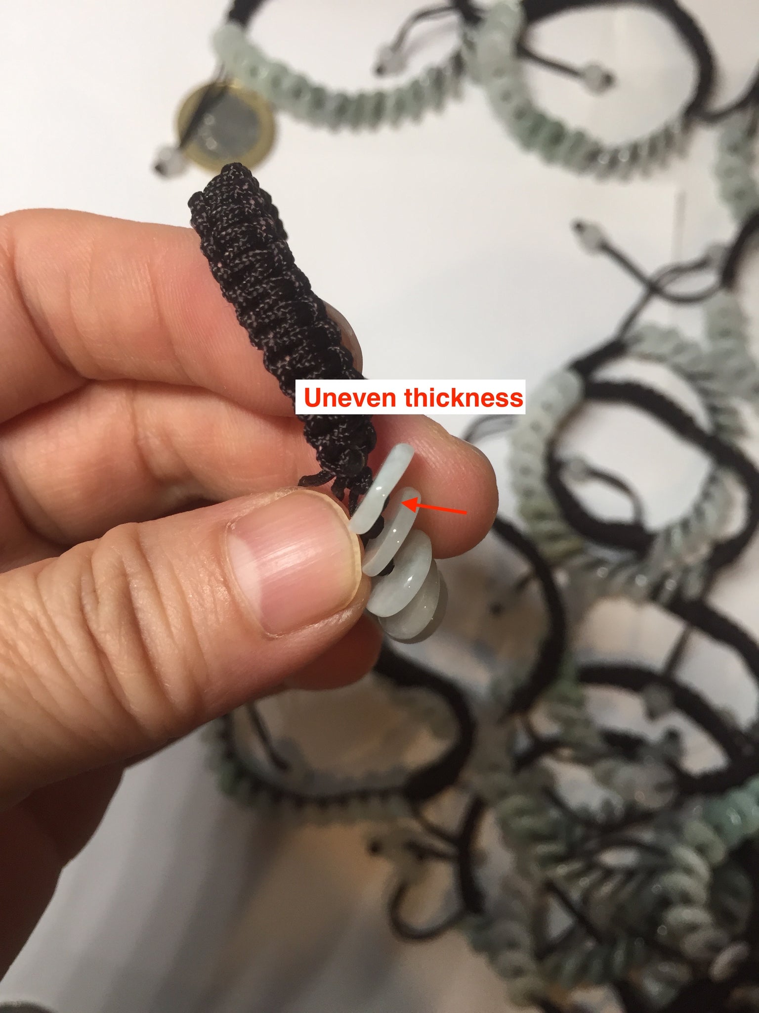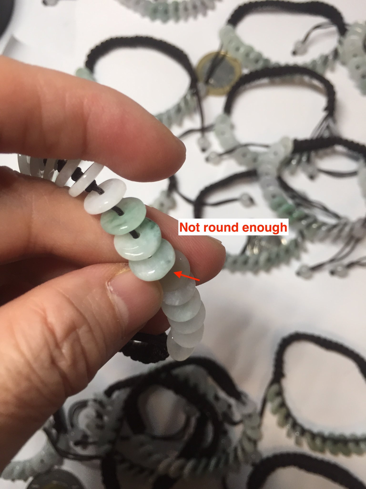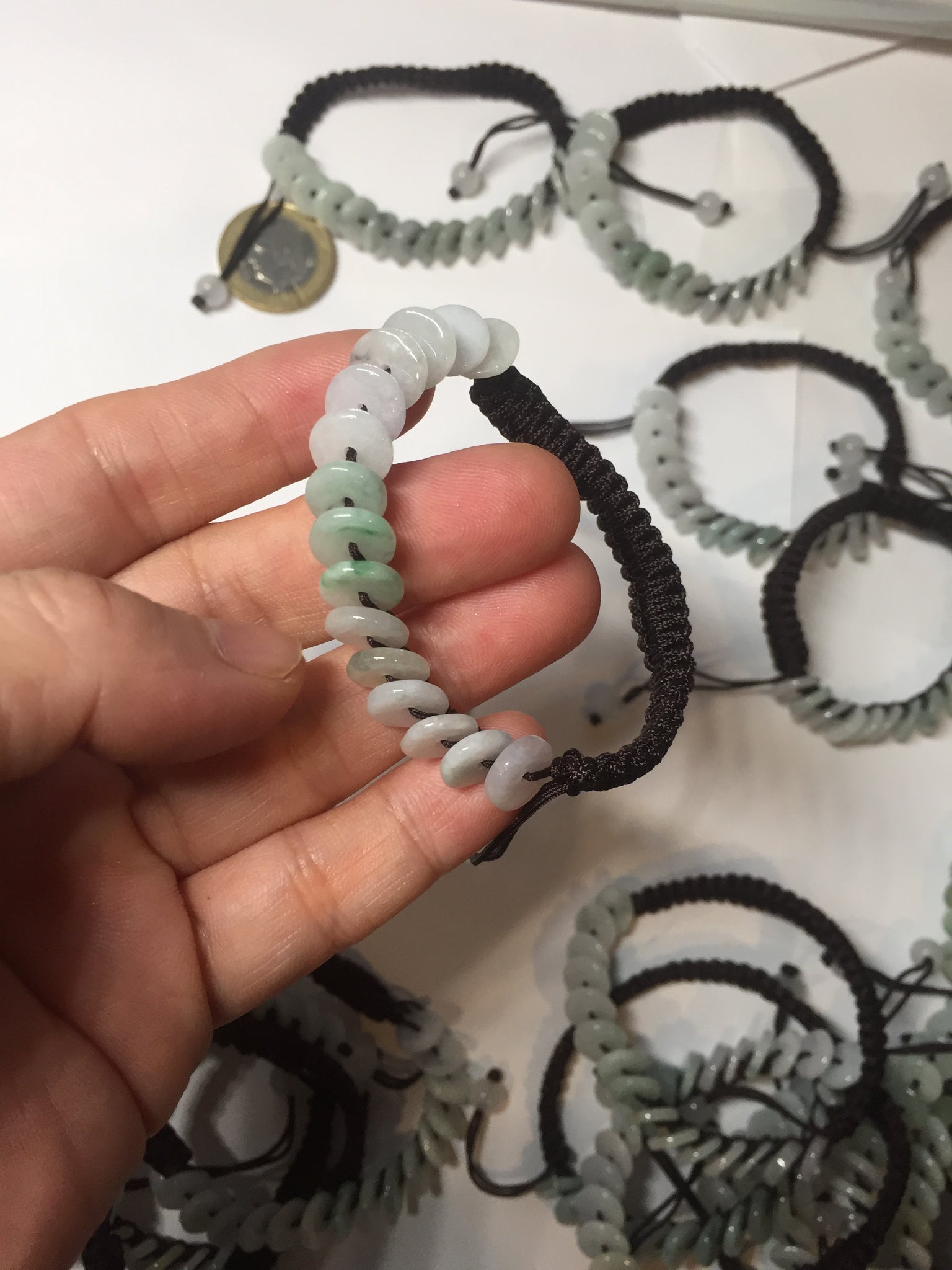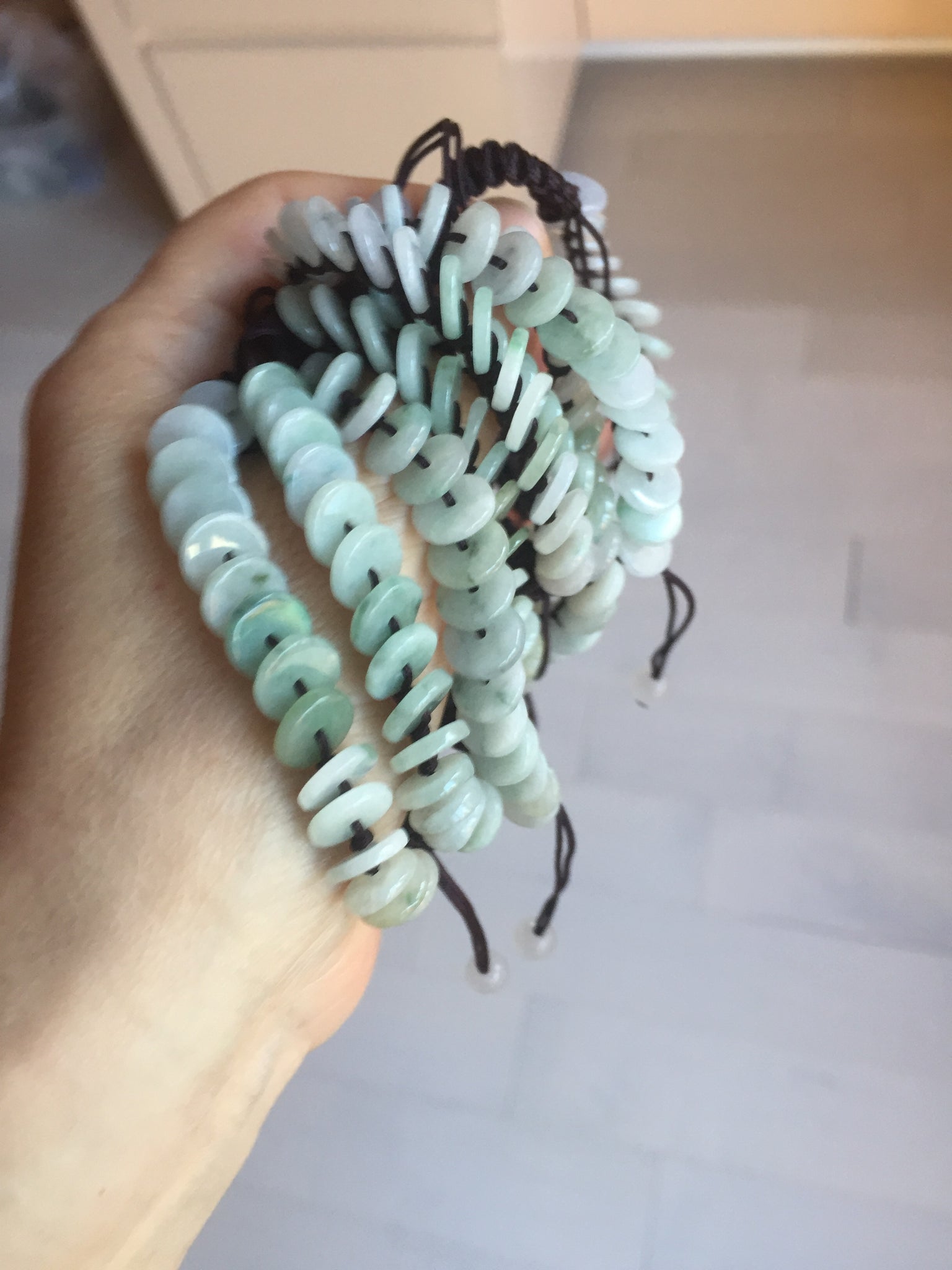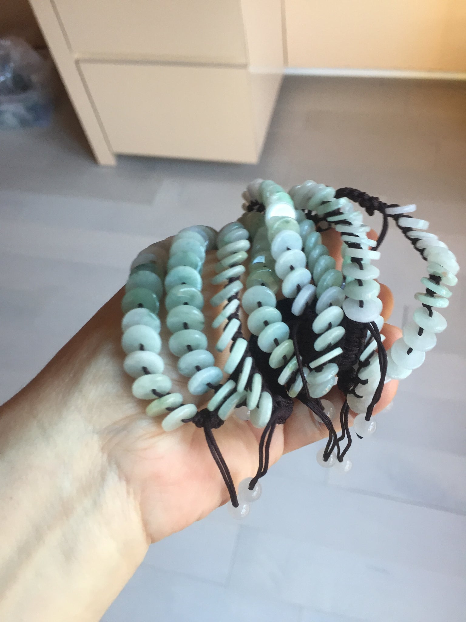 One or two beads may have cracks, hairlines, cotton areas, cotton lines, cotton spots, rough surfaces, not round enough. The two adjustable ends beads are agate, not jadeite.