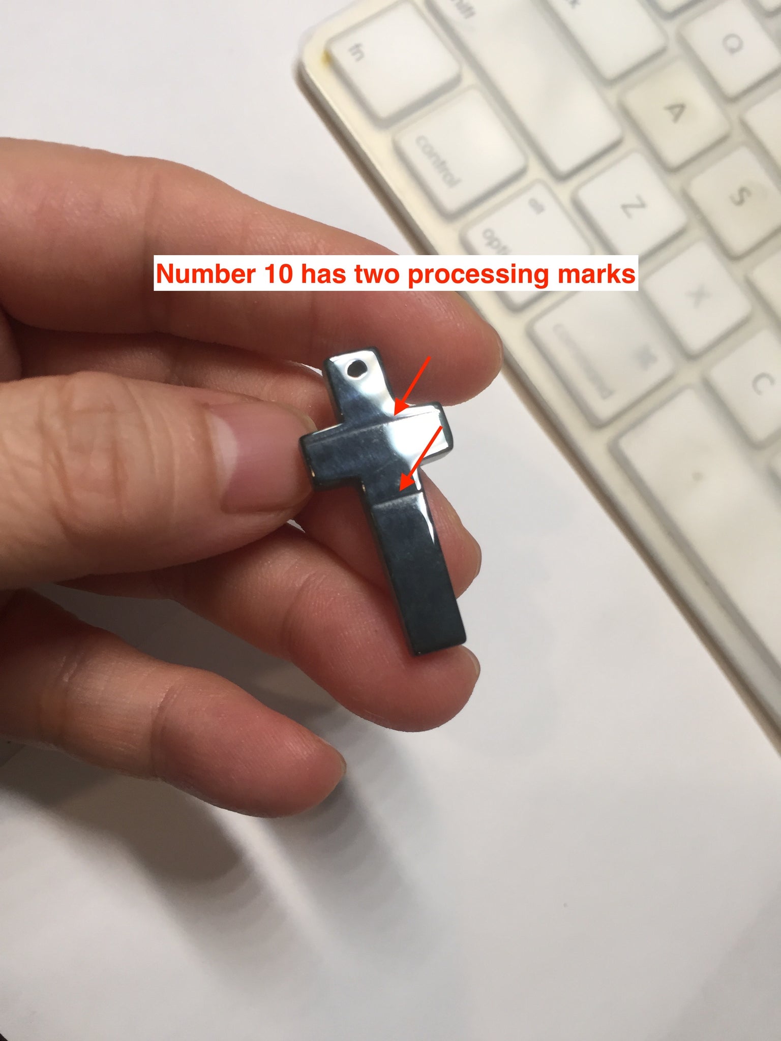 No crack. No hairline. Have some cotton areas, cotton lines, and cotton spots. Number 10 has two processing marks.
