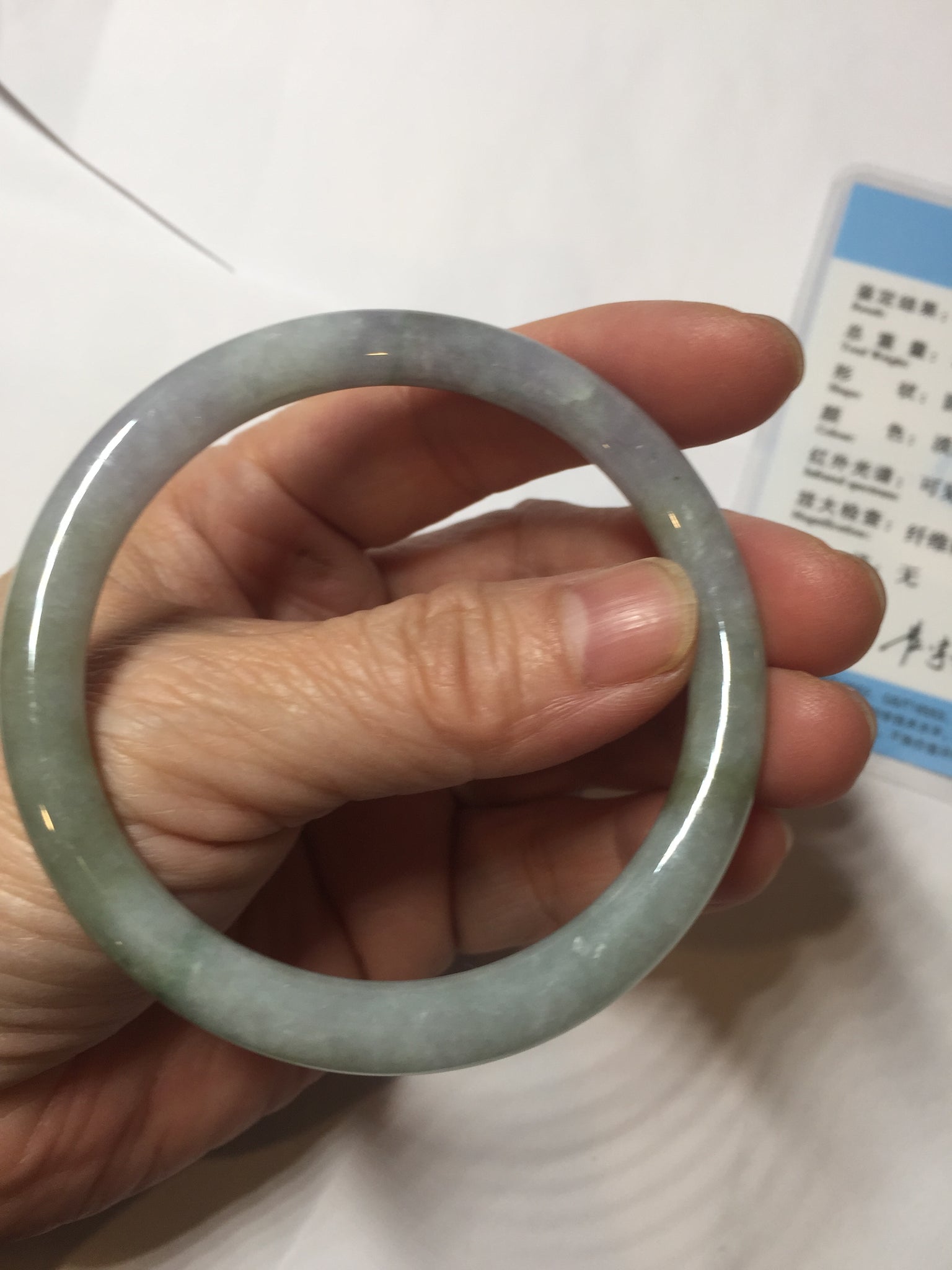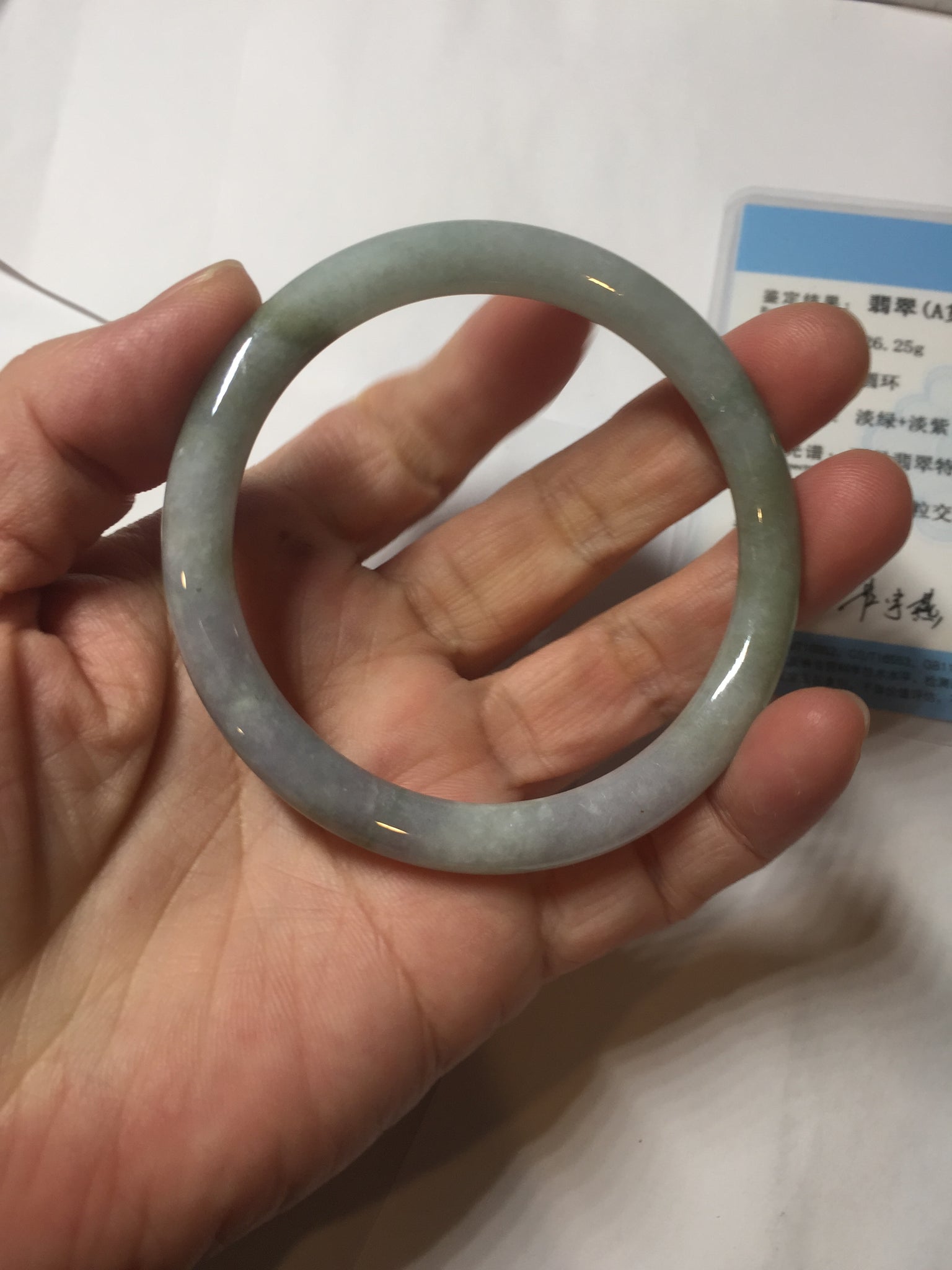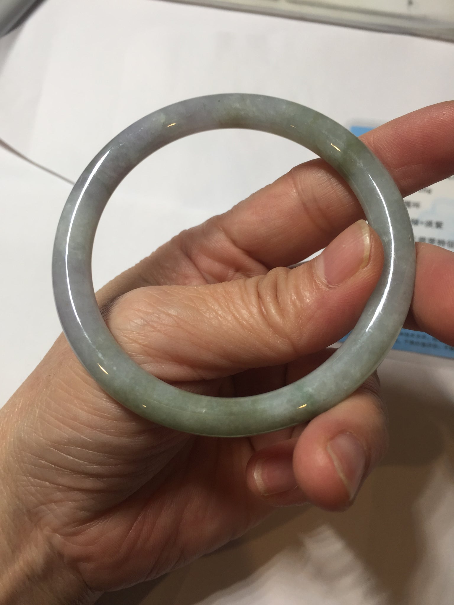 One relativitly big brown/gary area with mine pits, fissures, or scratches.The bangle is solid. Some hairlines and cotton lines. Some cotton areas. Not transparent. Not watery. The purple is lighter than in the photos due to the purple color always more camera friendly.
