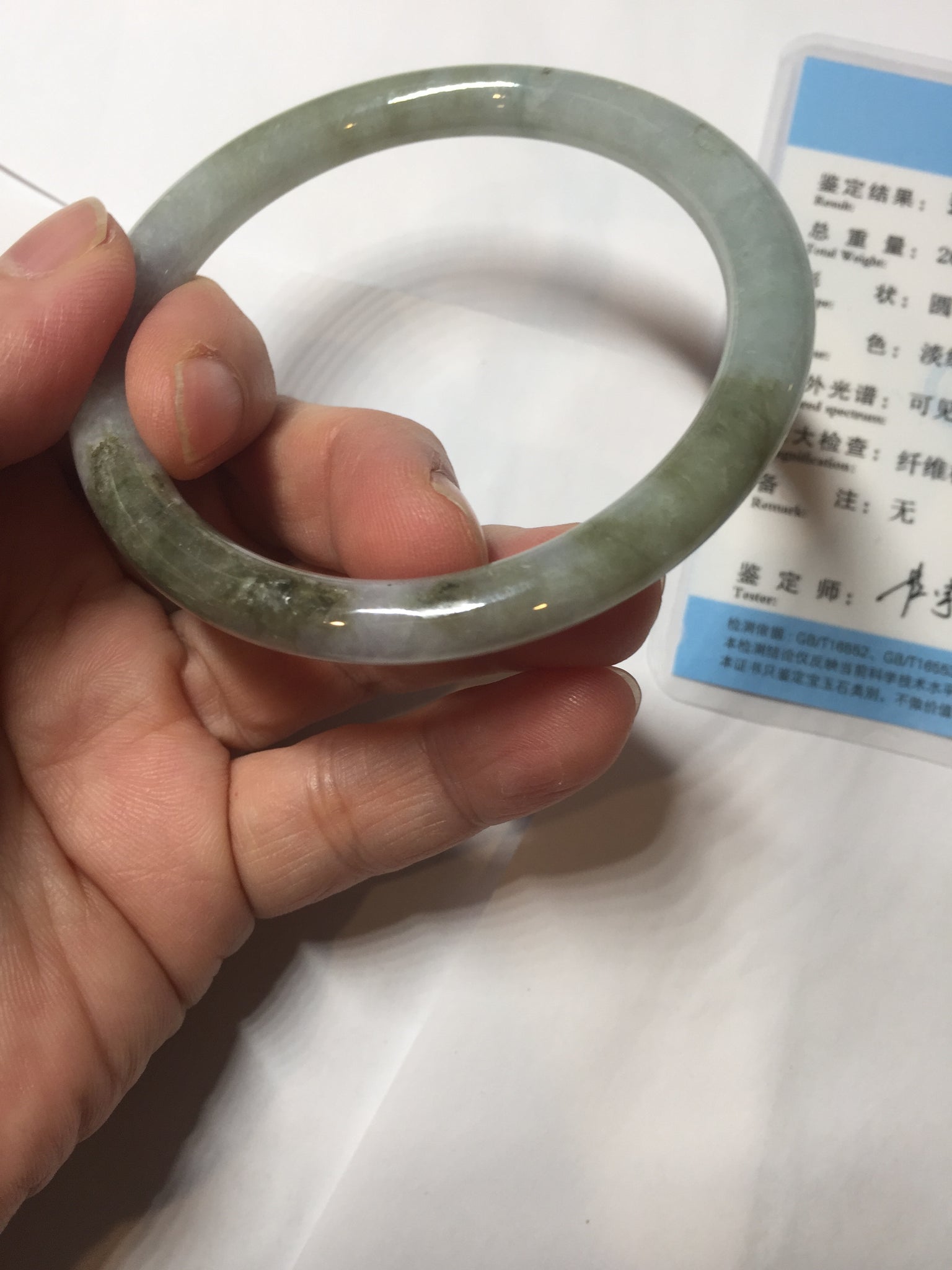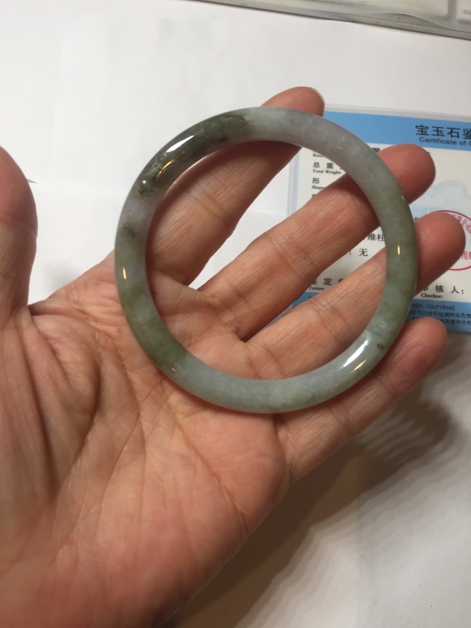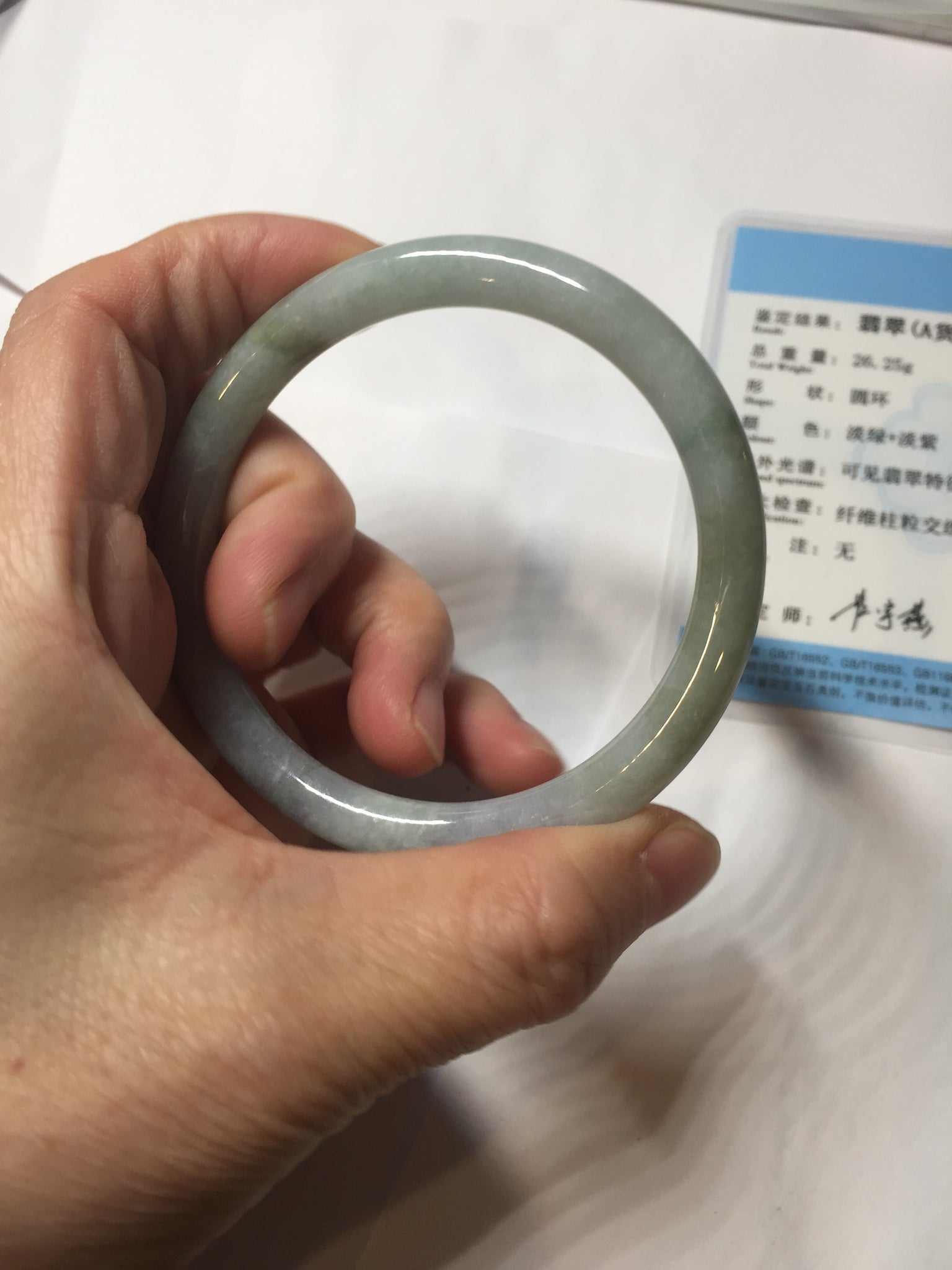 One relativitly big brown/gary area with mine pits, fissures, or scratches.The bangle is solid. Some hairlines and cotton lines. Some cotton areas. Not transparent. Not watery. The purple is lighter than in the photos due to the purple color always more camera friendly.