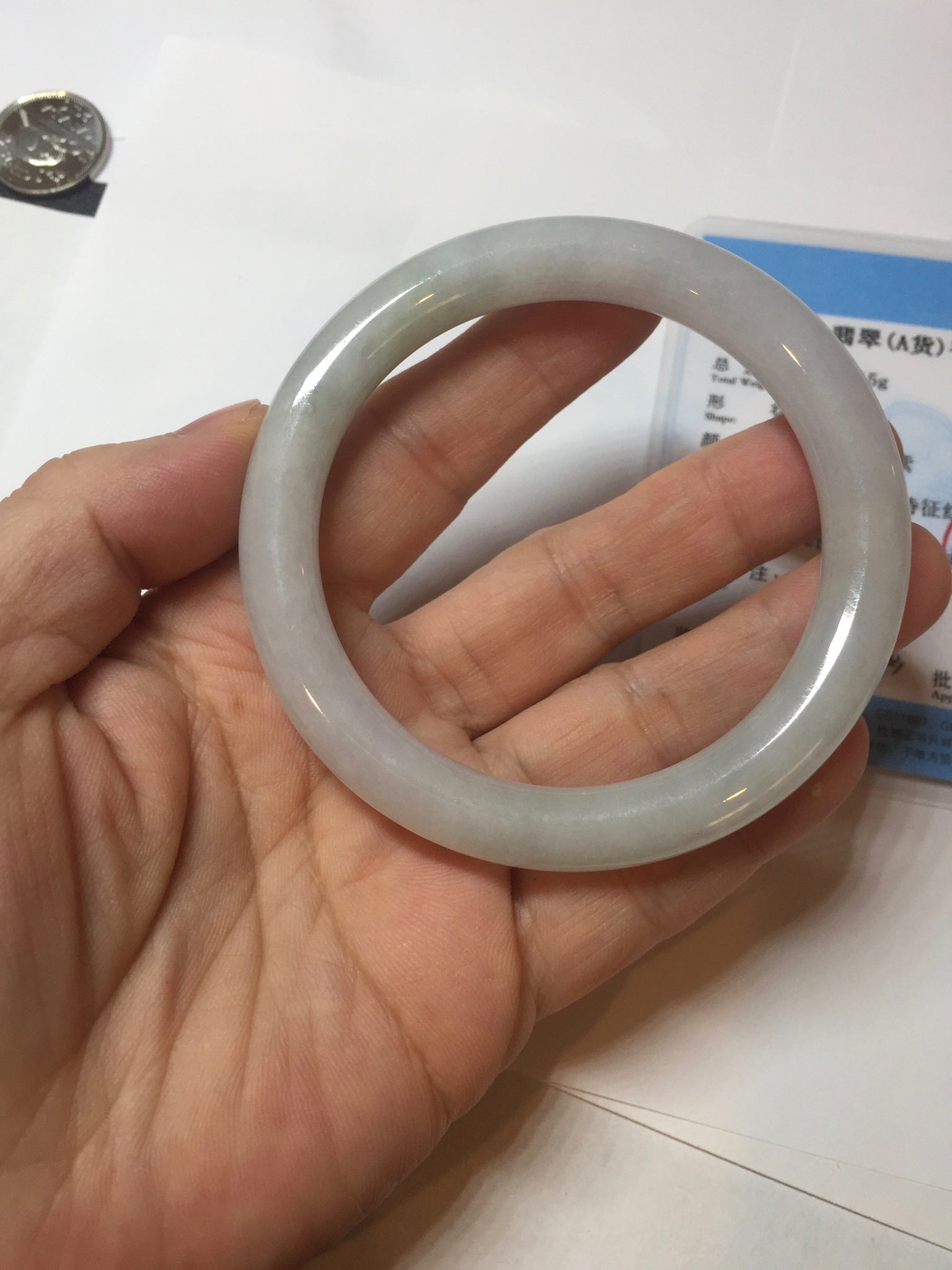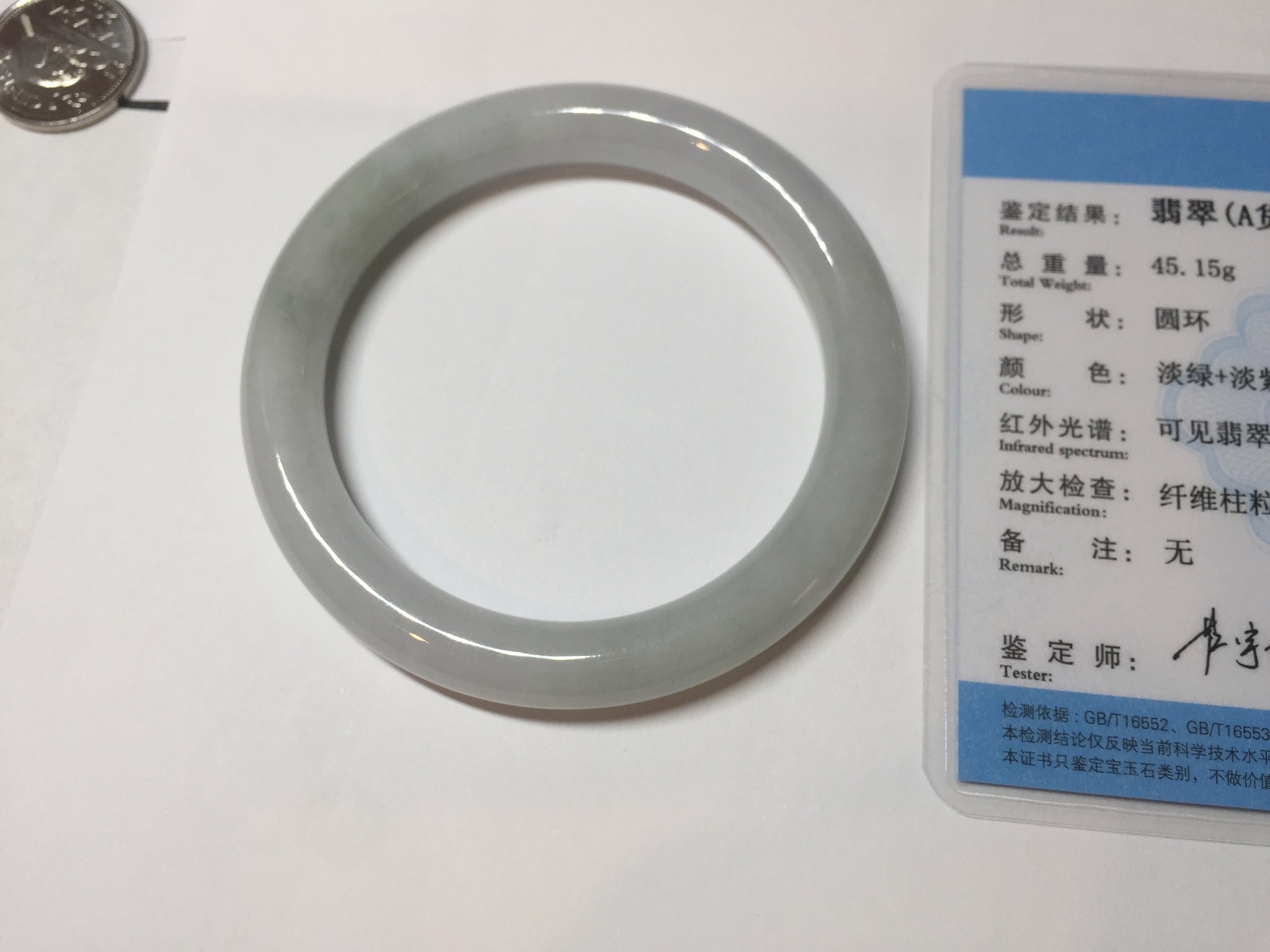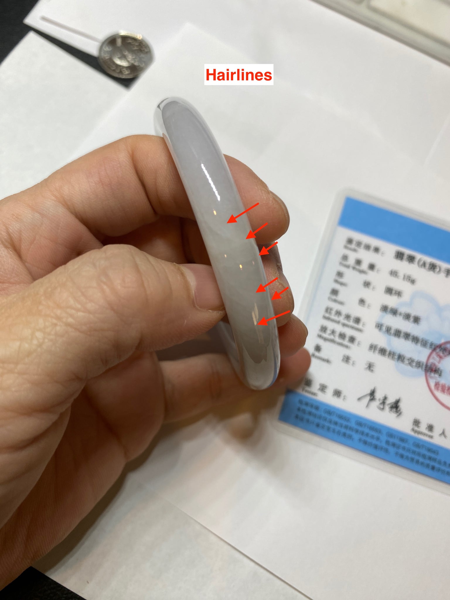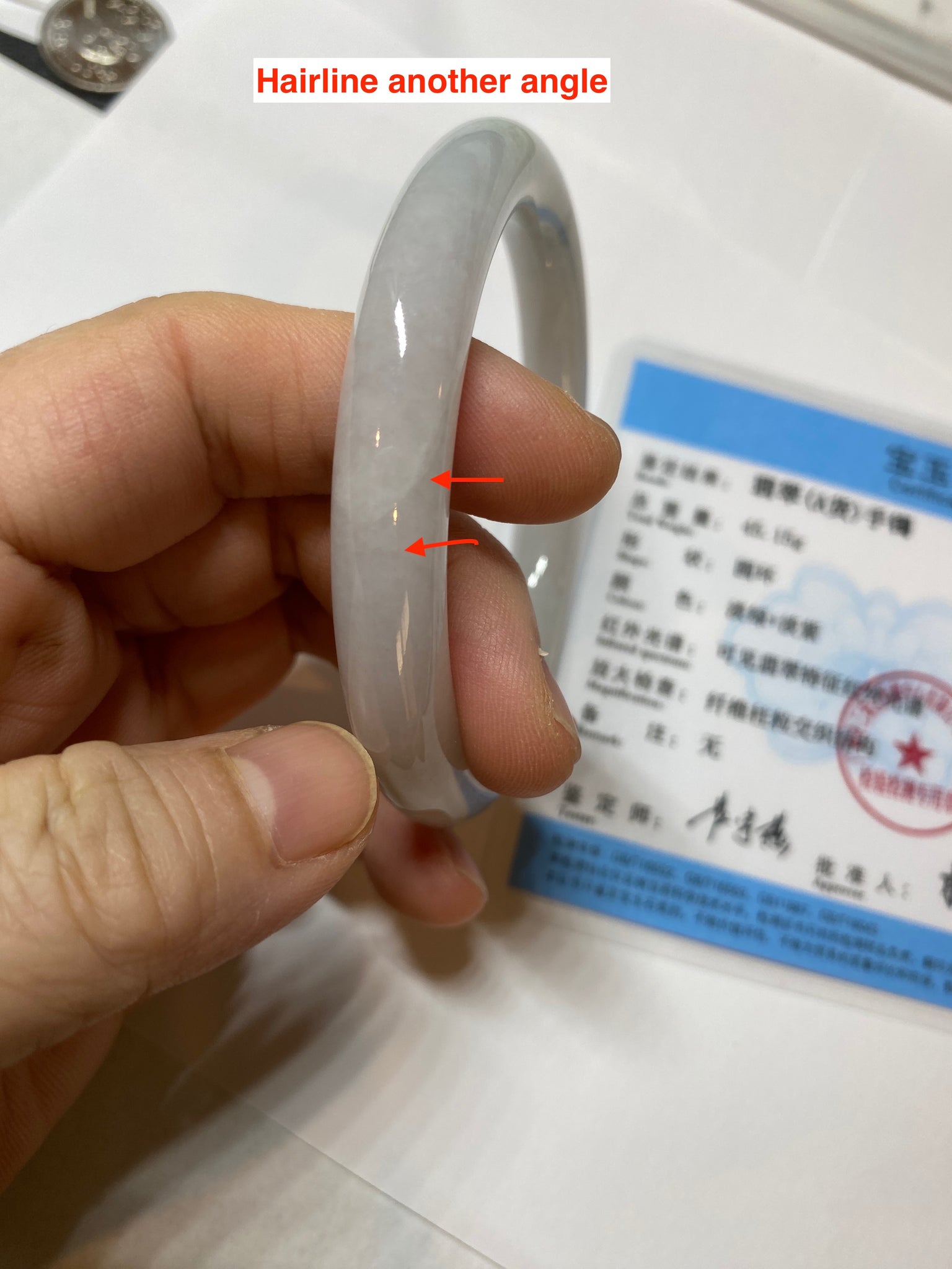Some surface cracks with very tiny amount of wax. The bangle is solid(Guaranteed). Make high pitch sound when tapped. Some small rough surfaces/rough spots may with fissures or scratches. Some hairlines, cotton lines, cotton spots, and cotton areas. The purple is super light. lighter than in the photos due to the purple color always more camera friendly.
