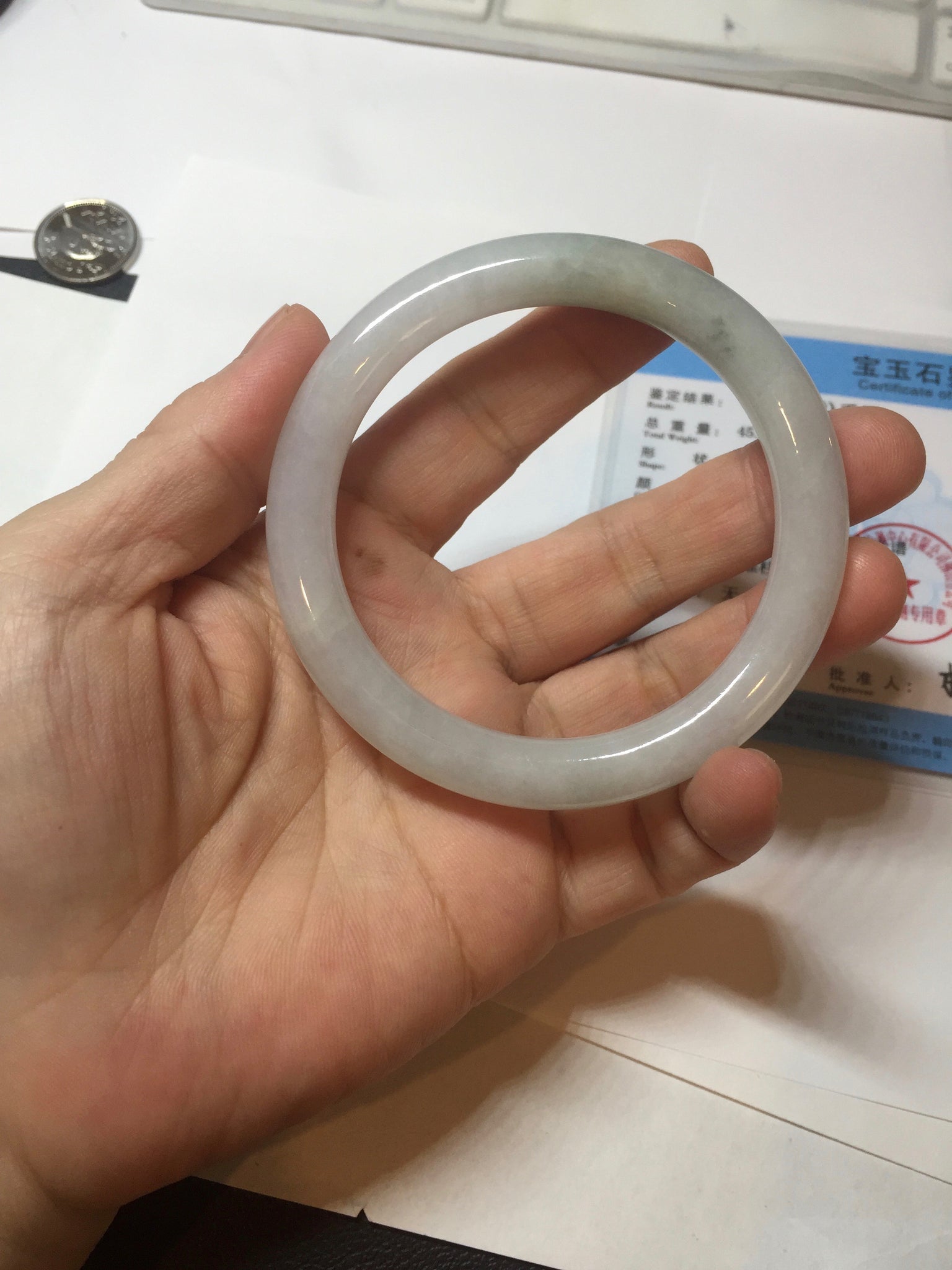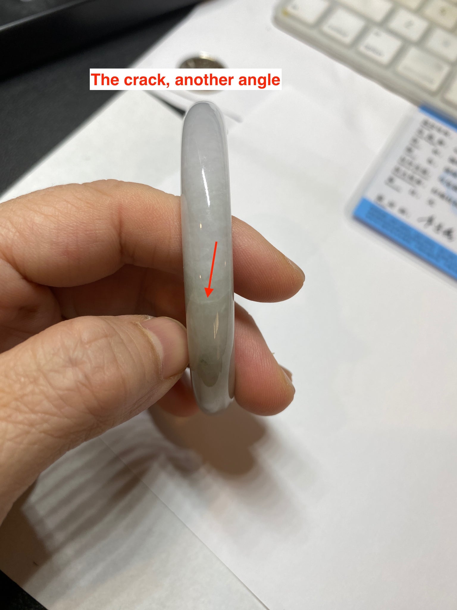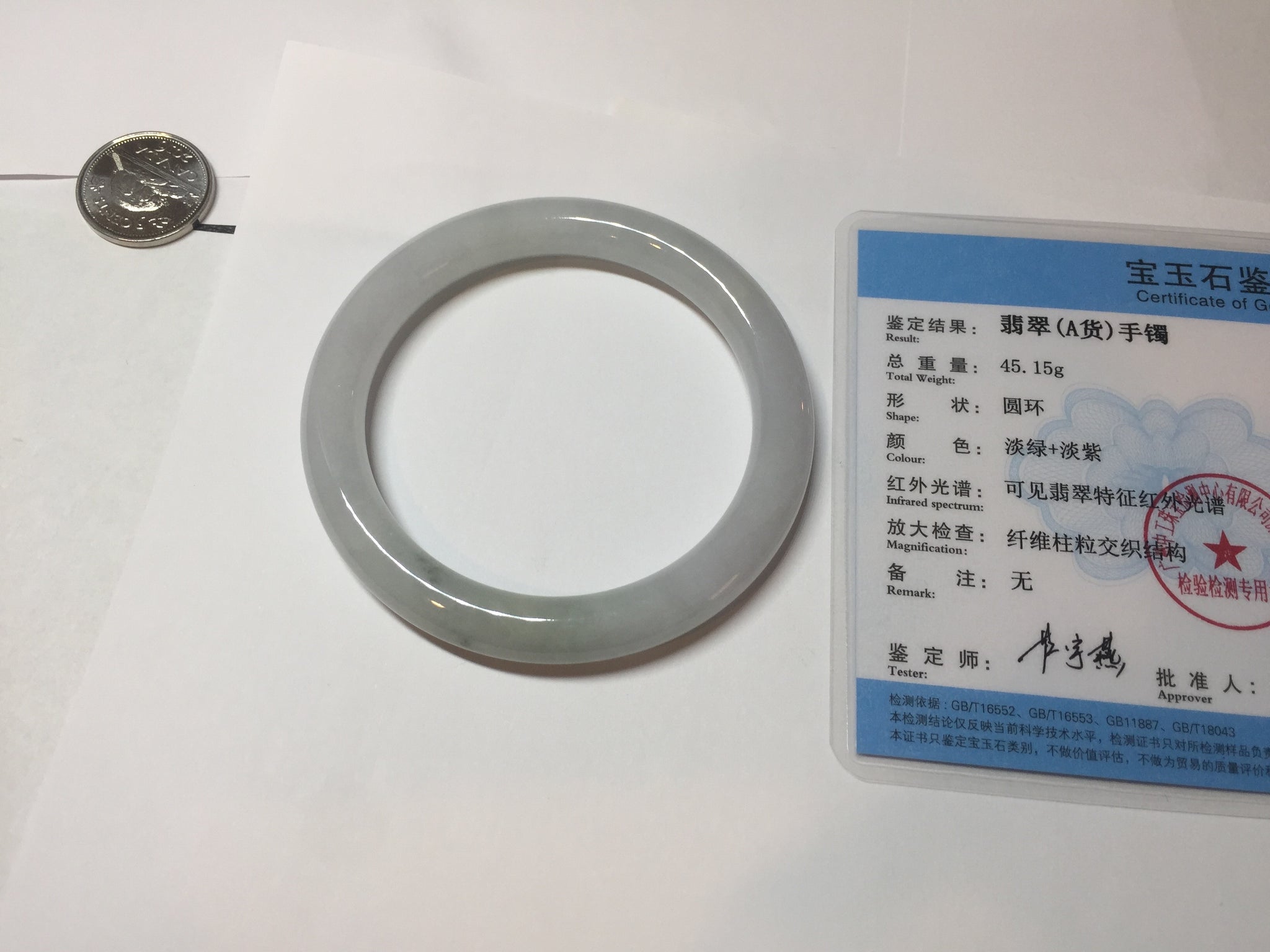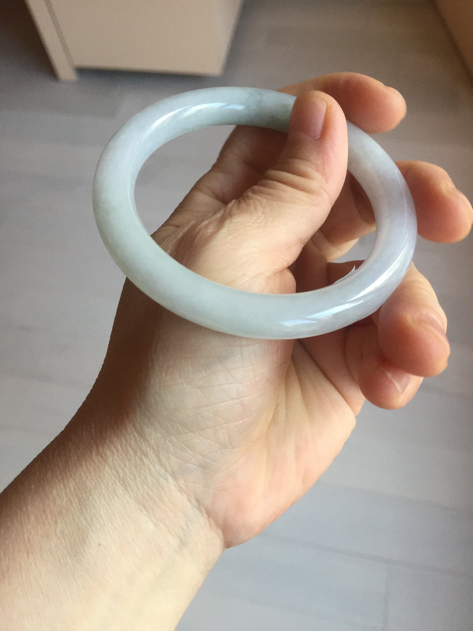 Some surface cracks with very tiny amount of wax. The bangle is solid(Guaranteed). Make high pitch sound when tapped. Some small rough surfaces/rough spots may with fissures or scratches. Some hairlines, cotton lines, cotton spots, and cotton areas. The purple is super light. lighter than in the photos due to the purple color always more camera friendly.