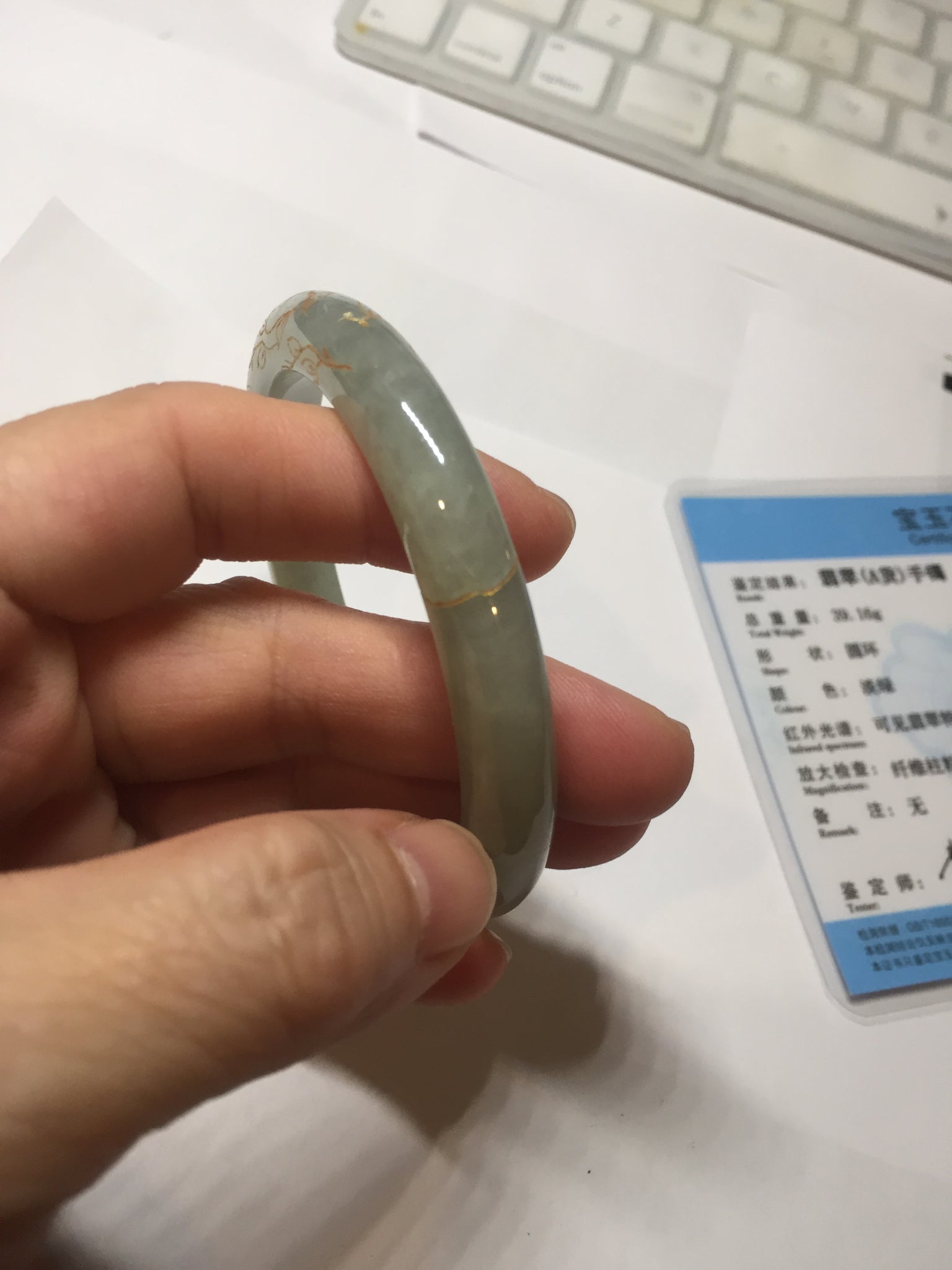 As the old saying goes, 'There’s no carving without a flaw(无事不雕花).' Most carvings are made in areas where there are cracks, hairlines, cotton lines, or cotton areas. However, the bangle remains solid and structurally sound.