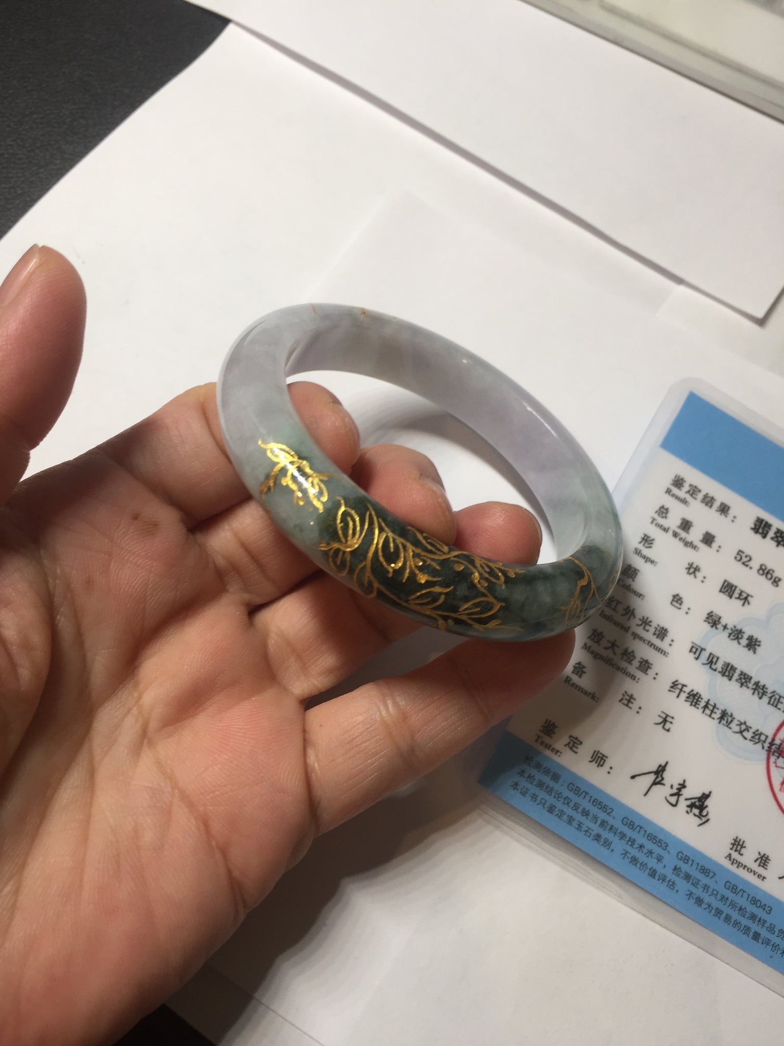 As the old saying goes, 'There’s no carving without a flaw(无事不雕花).' Most carvings are made in areas where there are cracks, hairlines, cotton lines, or cotton areas. However, the bangle remains solid and structurally sound.