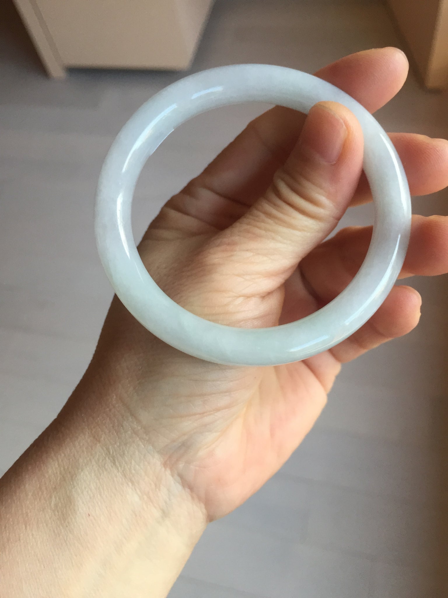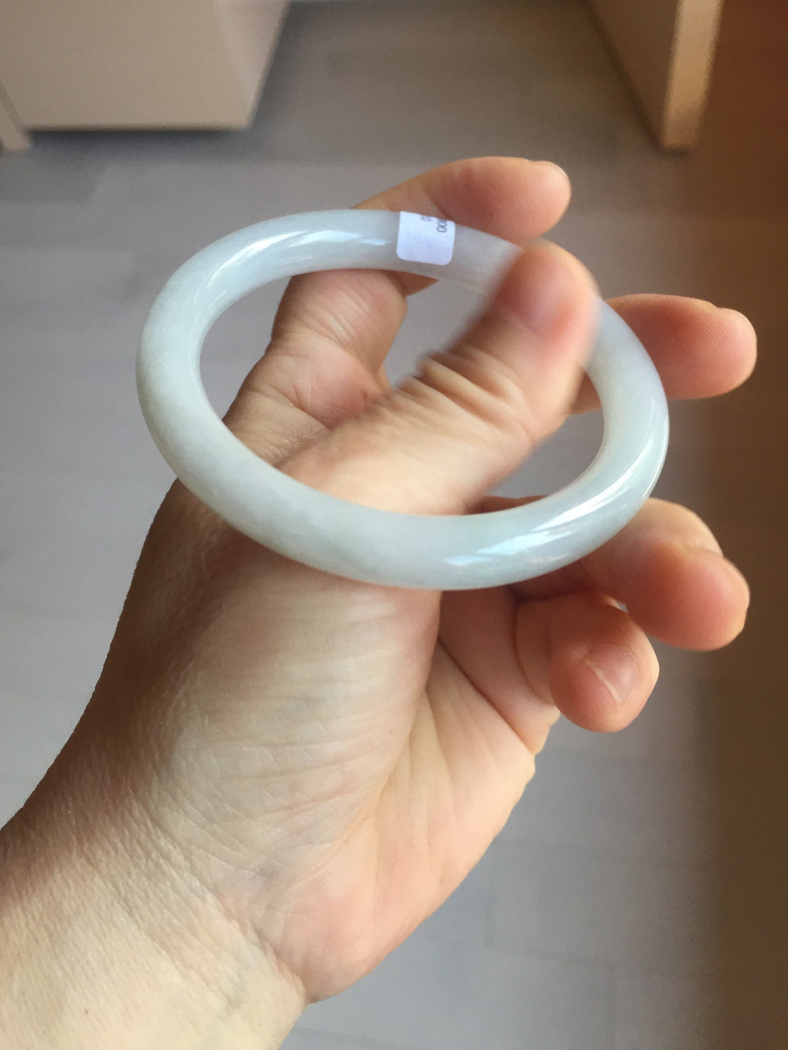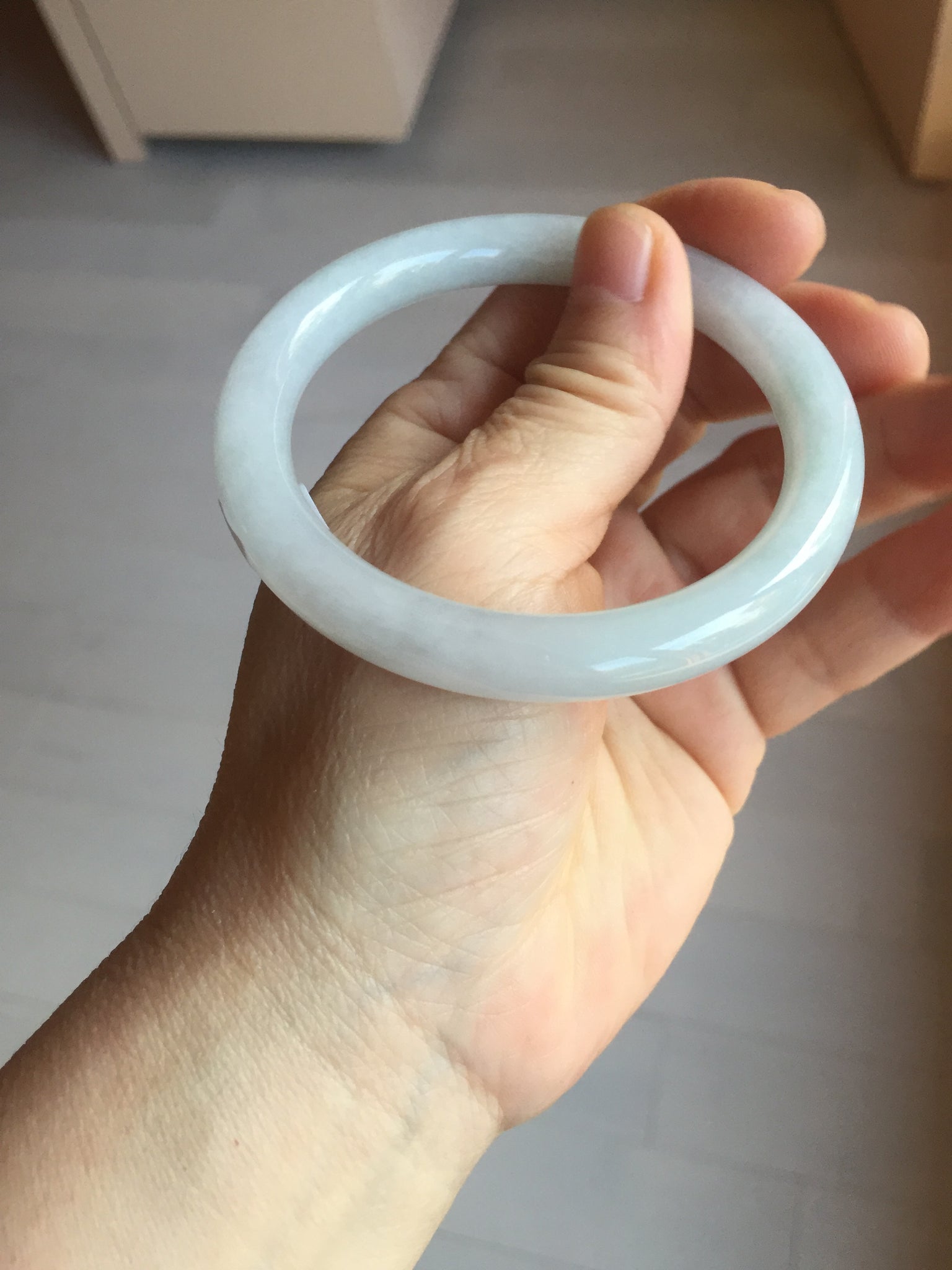 Some surface cracks with very tiny amount of wax. The bangle is solid(Guaranteed). Make high pitch sound when tapped. Some small rough surfaces/rough spots may with fissures or scratches. Some hairlines, cotton lines, cotton spots, and cotton areas. The purple is super light. lighter than in the photos due to the purple color always more camera friendly.