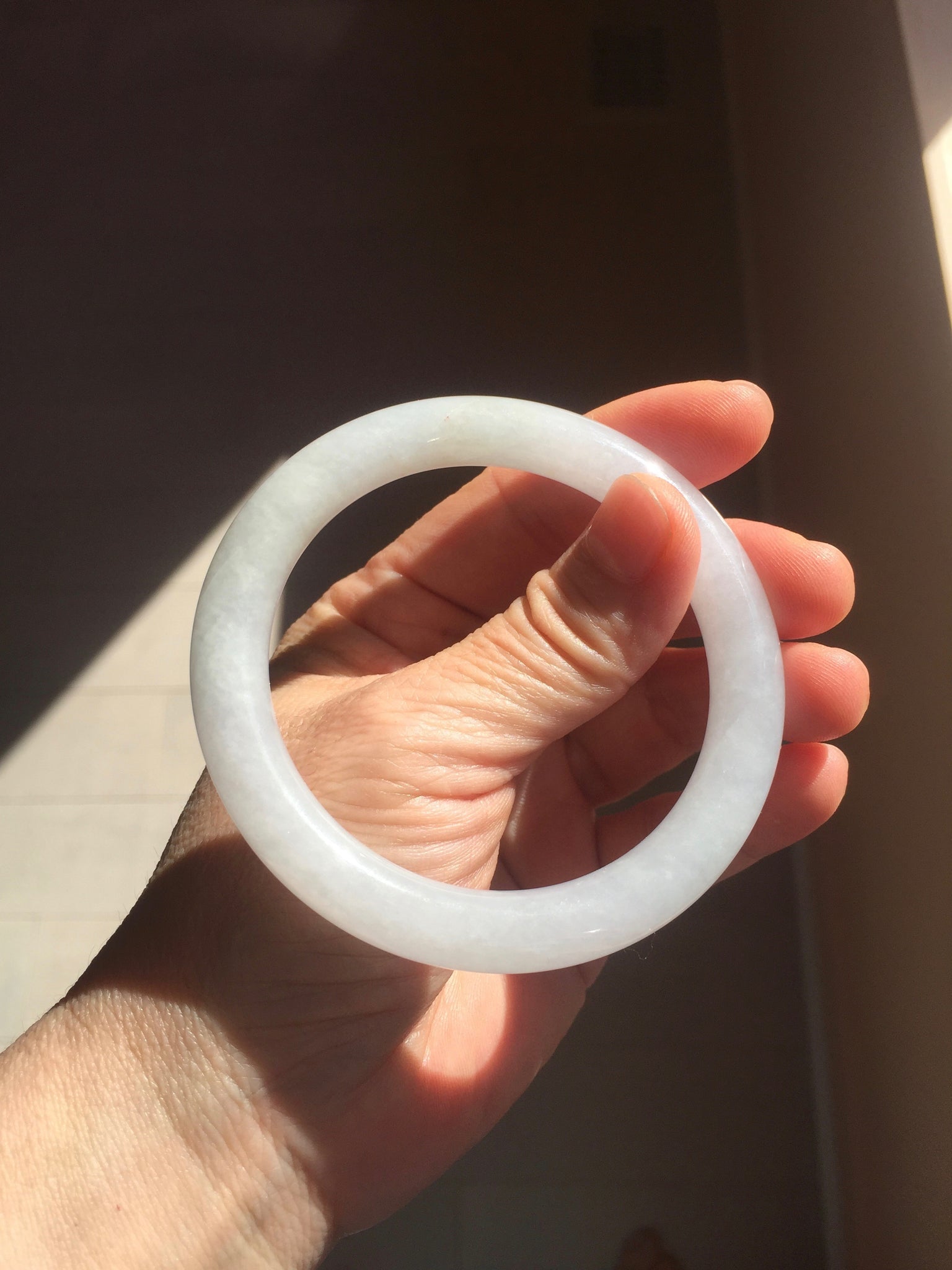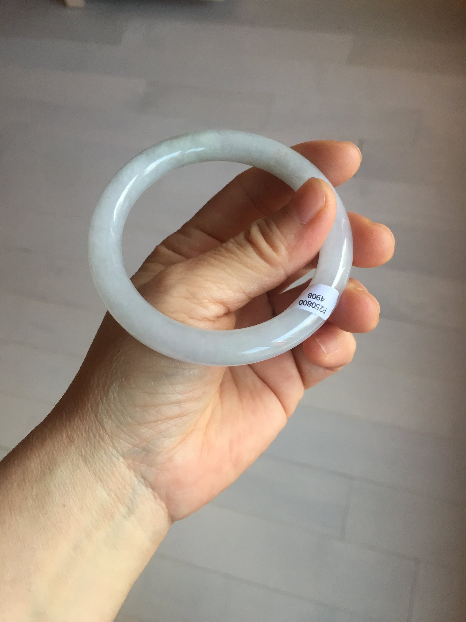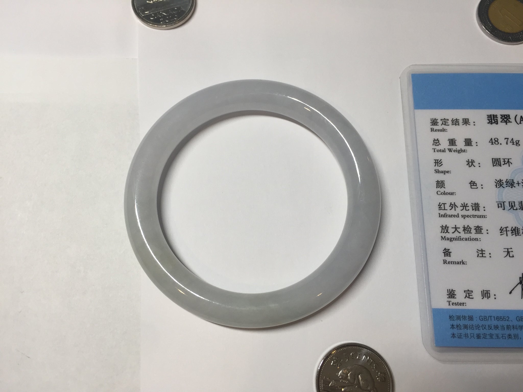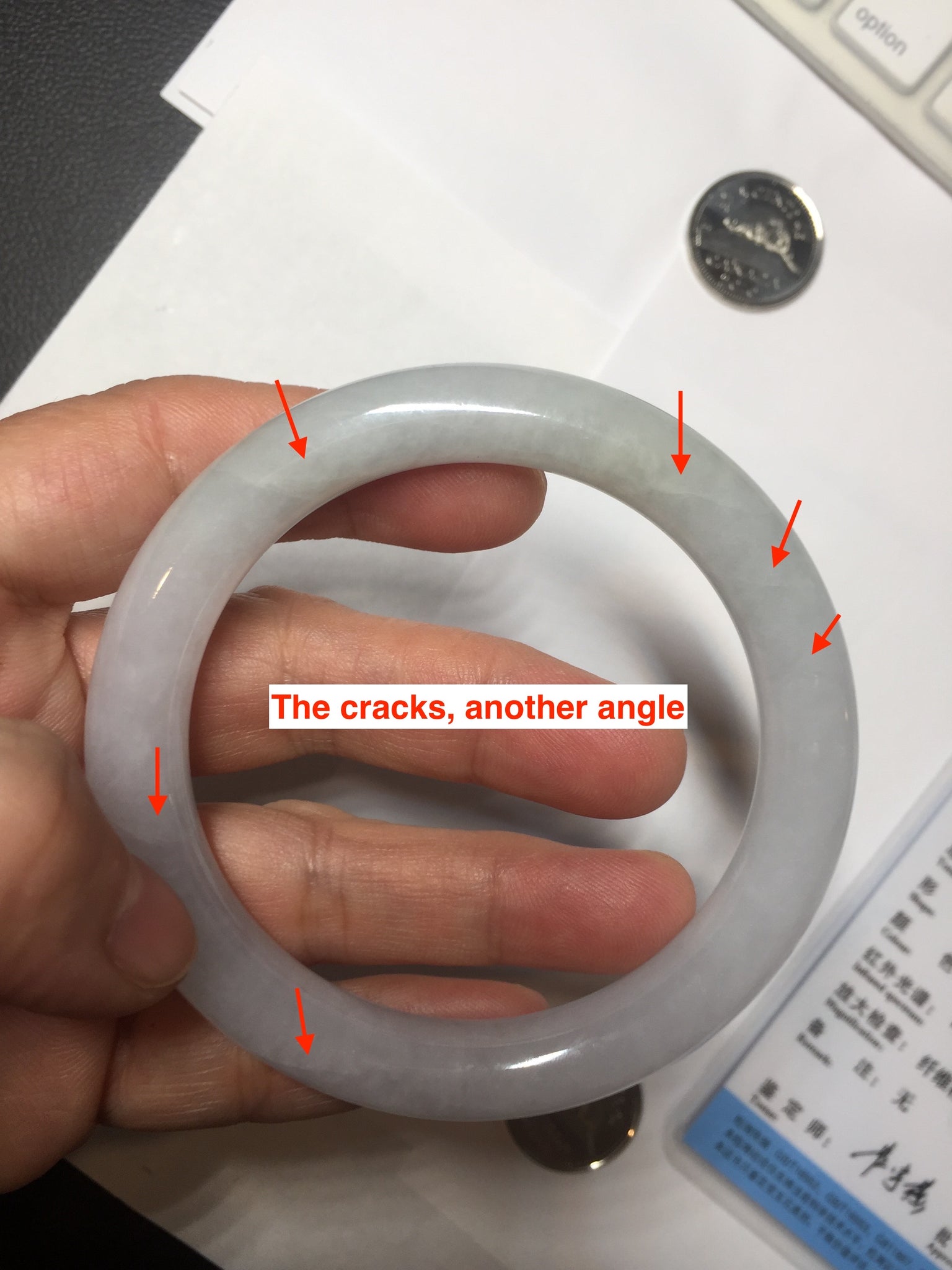 Some surface cracks with very tiny amount of wax. Three of them are U shape. The bangle is solid(Guaranteed). Make high pitch sound when tapped. One hairline. Some small rough surfaces/rough spots. Some cotton lines, cotton spots, and cotton areas. The purple is super light. lighter than in the photos due to the purple color always more camera friendly.