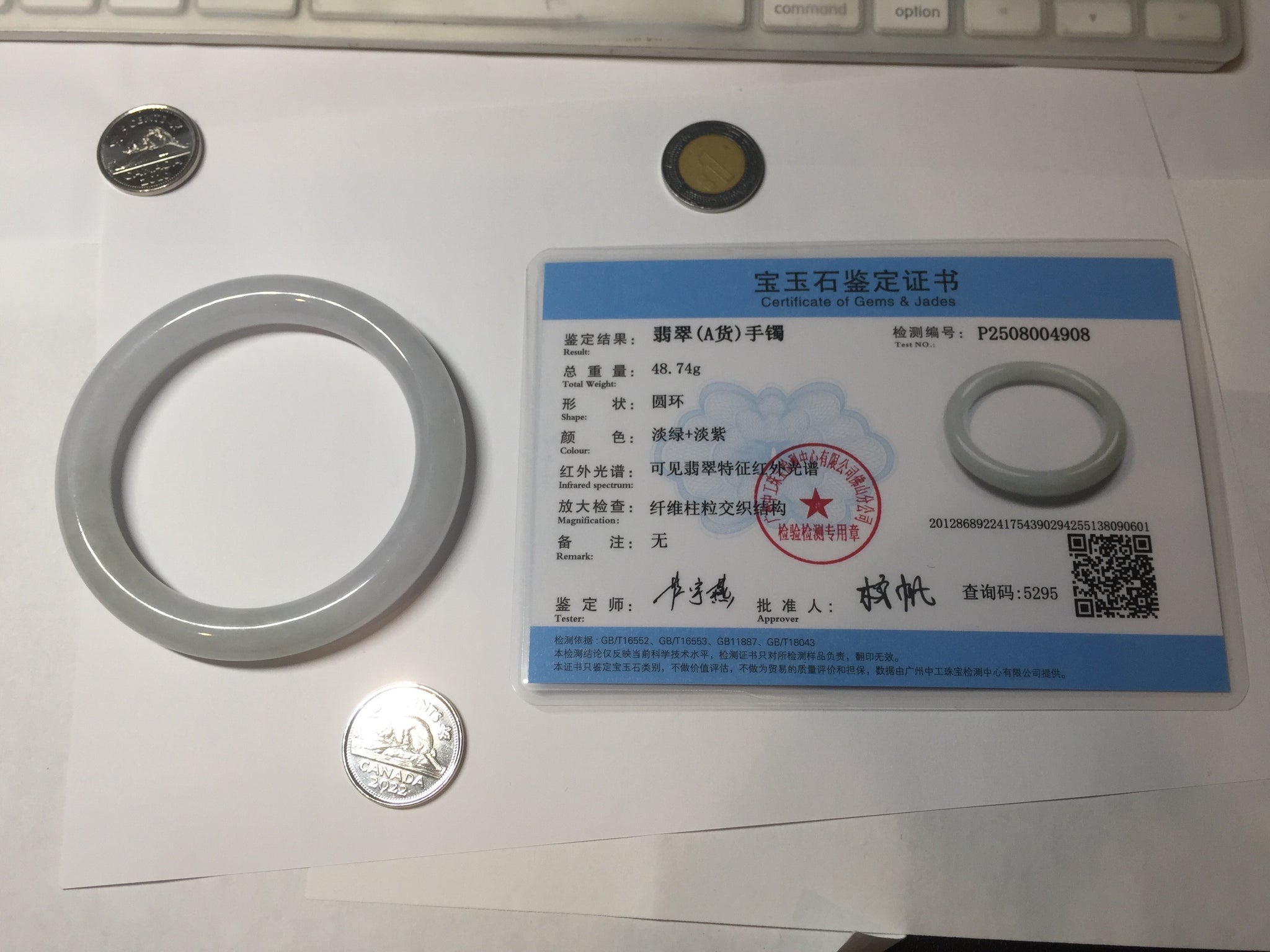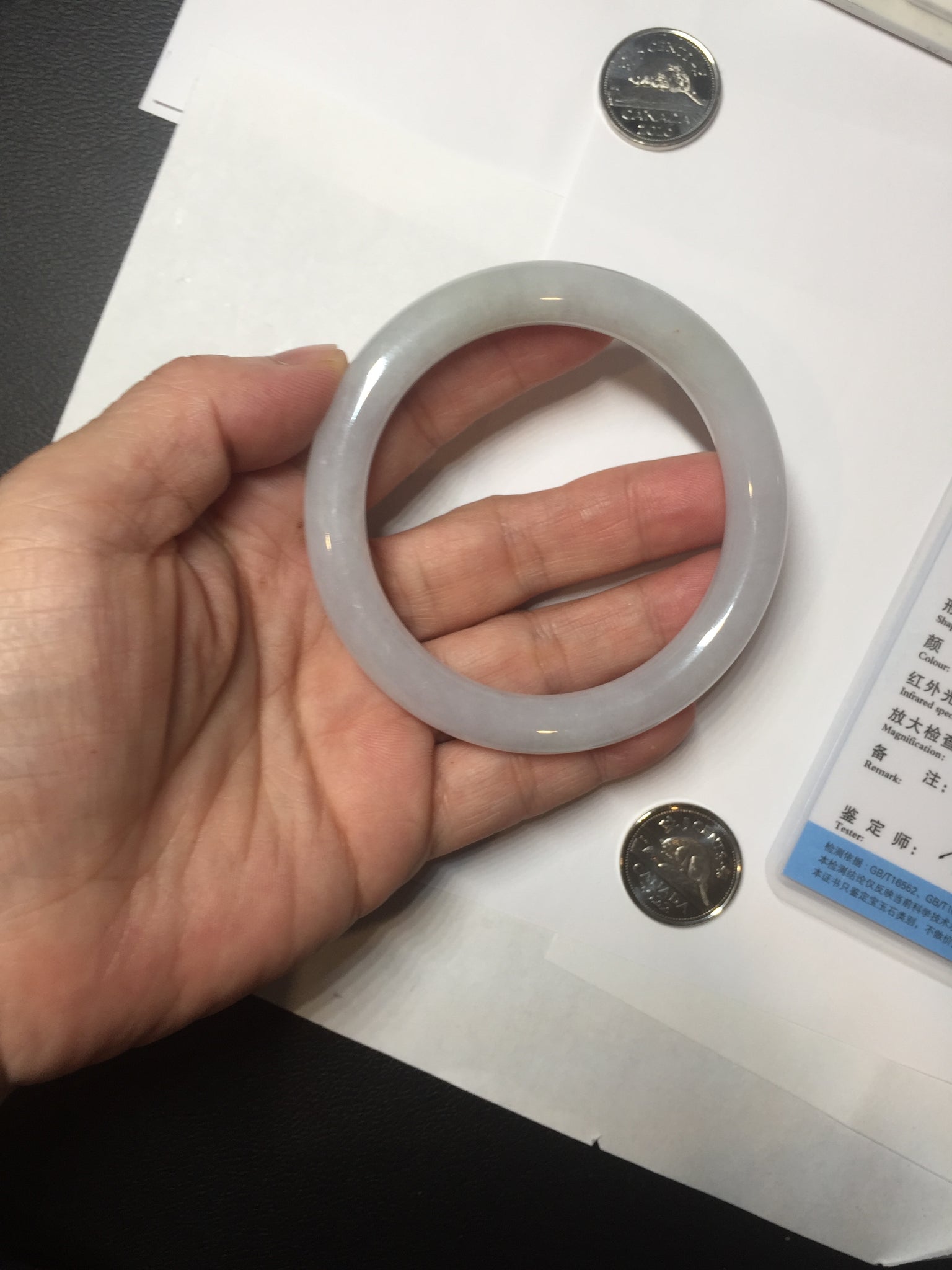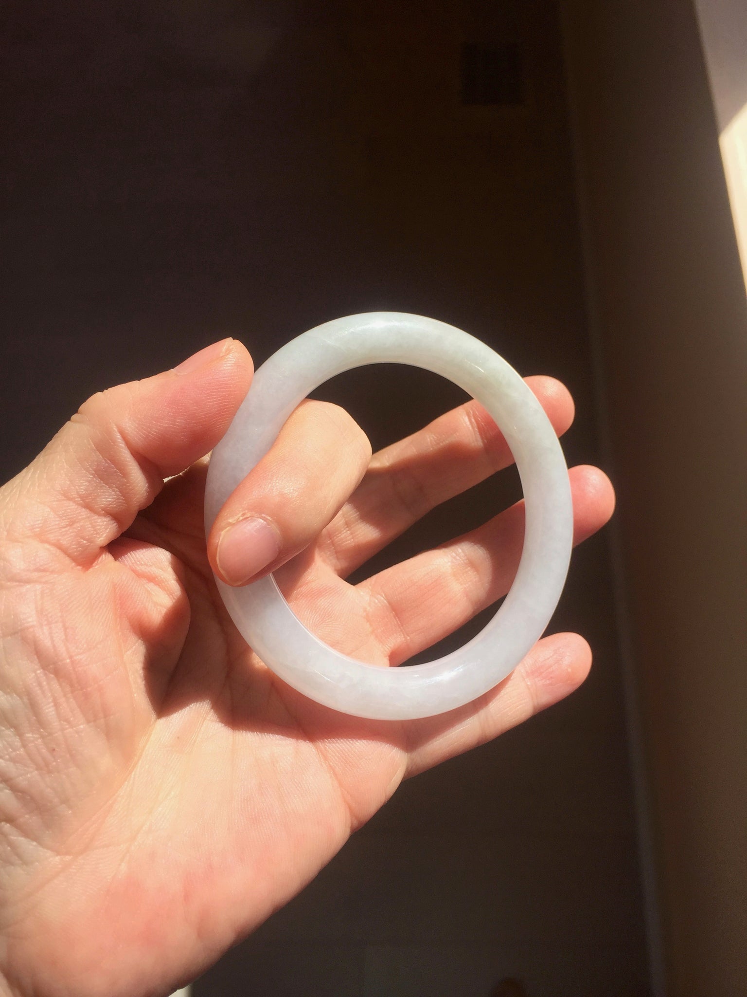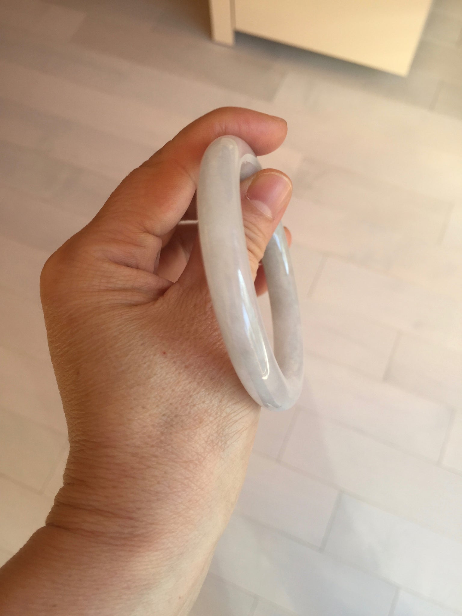 Some surface cracks with very tiny amount of wax. Three of them are U shape. The bangle is solid(Guaranteed). Make high pitch sound when tapped. One hairline. Some small rough surfaces/rough spots. Some cotton lines, cotton spots, and cotton areas. The purple is super light. lighter than in the photos due to the purple color always more camera friendly.