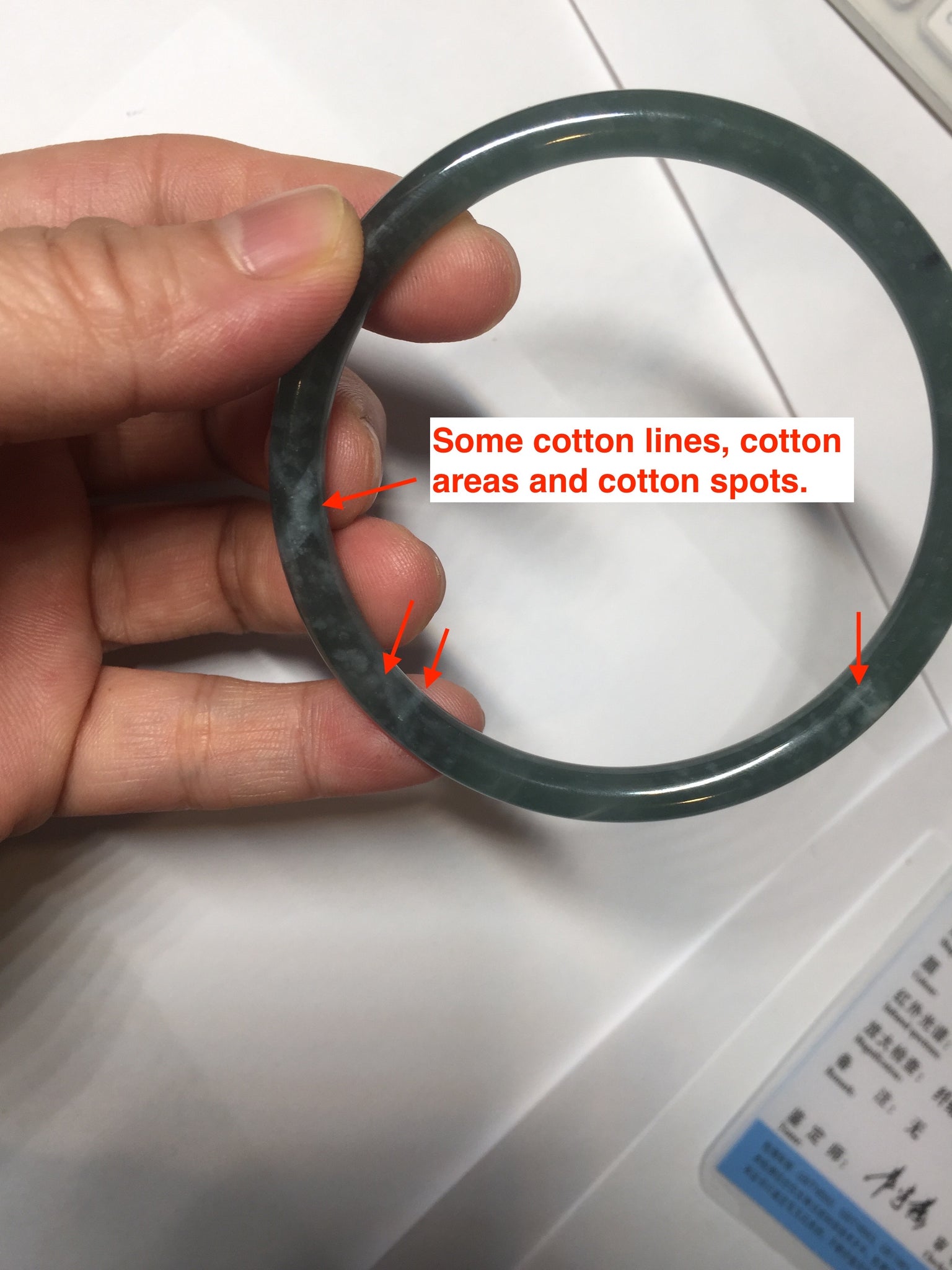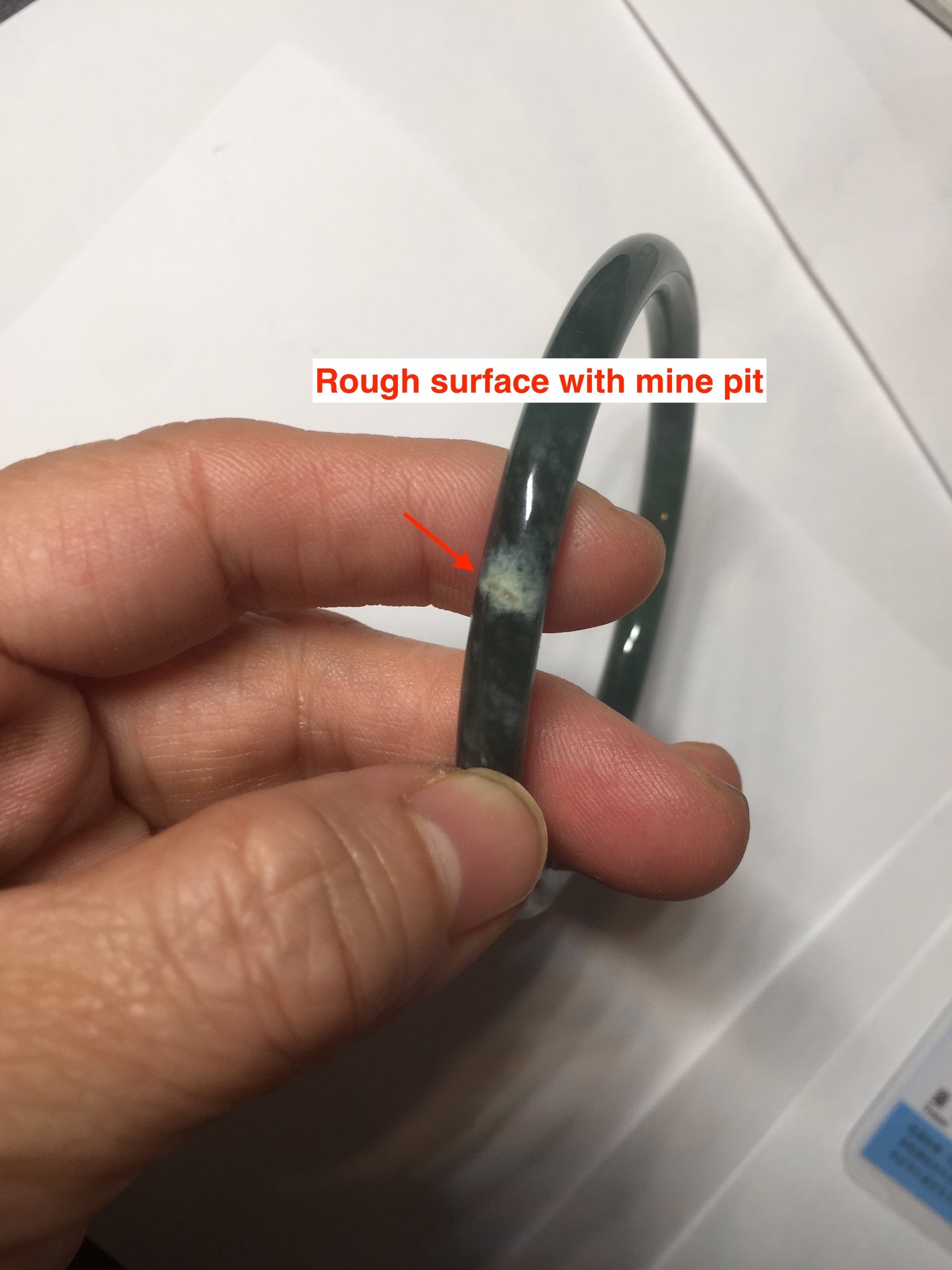 One rough surface with mine pits. No hairline. Some cotton areas, cotton lines and cotton spots. Some brown areas. The bangle has some gray/ black color.