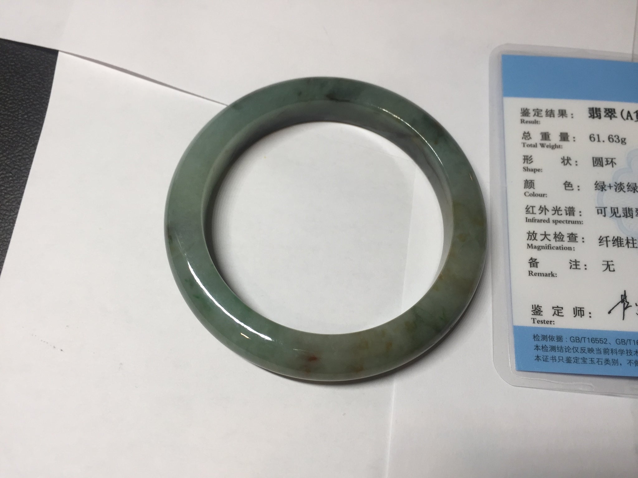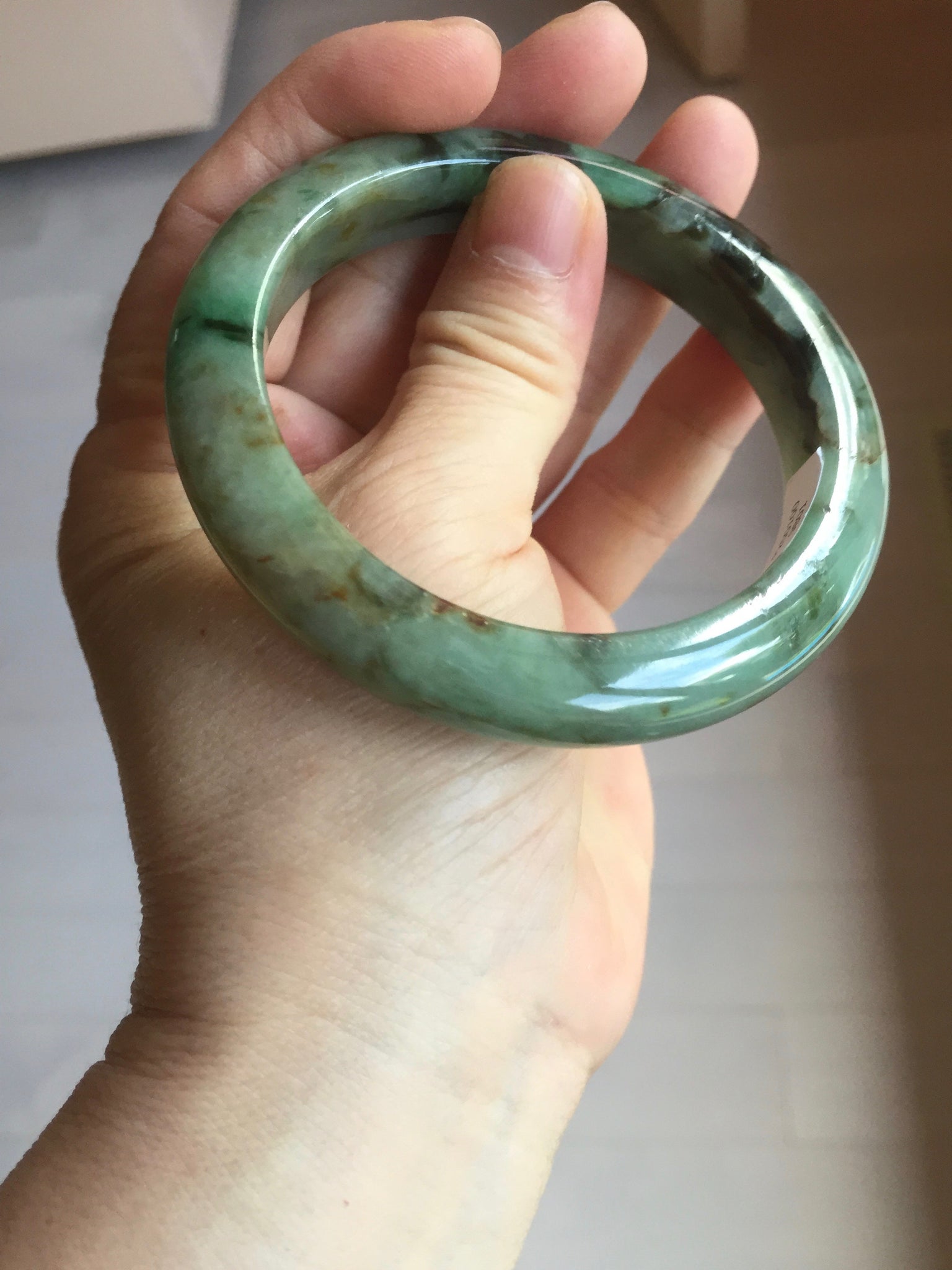 Some color root cracks or cracks. Some rough surfaces with surface scratches and fissures. The bangle is solid(Guaranteed). Some cotton spots and lines. Not transparent. Has some black/gray color.