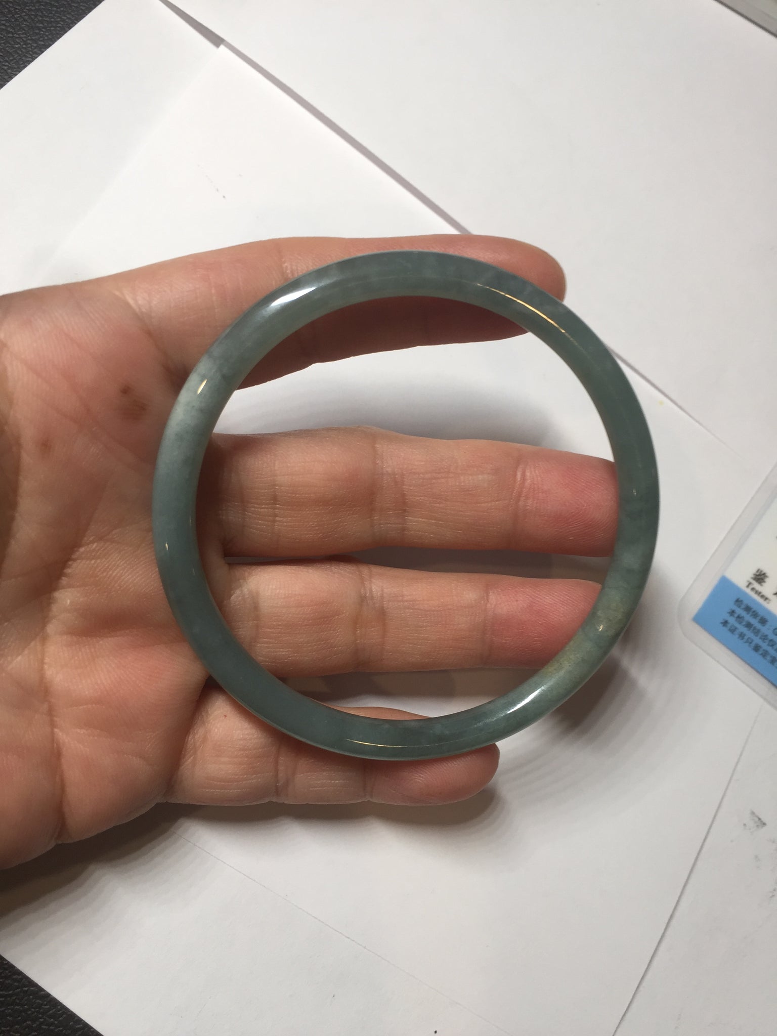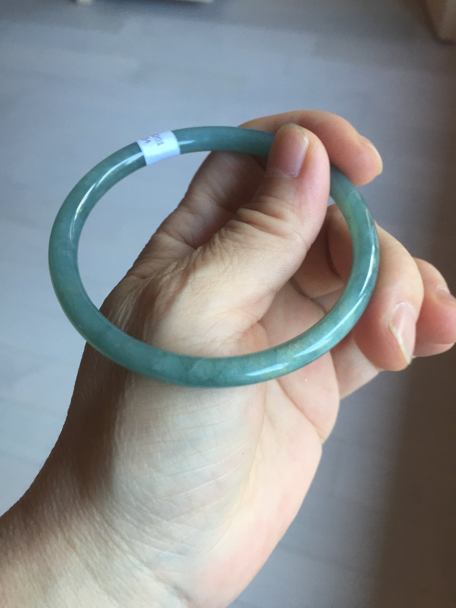 Some surface scratches or fissures. Some cotton area with rough surfaces. Some cotton areas,cotton lines and cotton spots. The bangle has some gray/ black color.