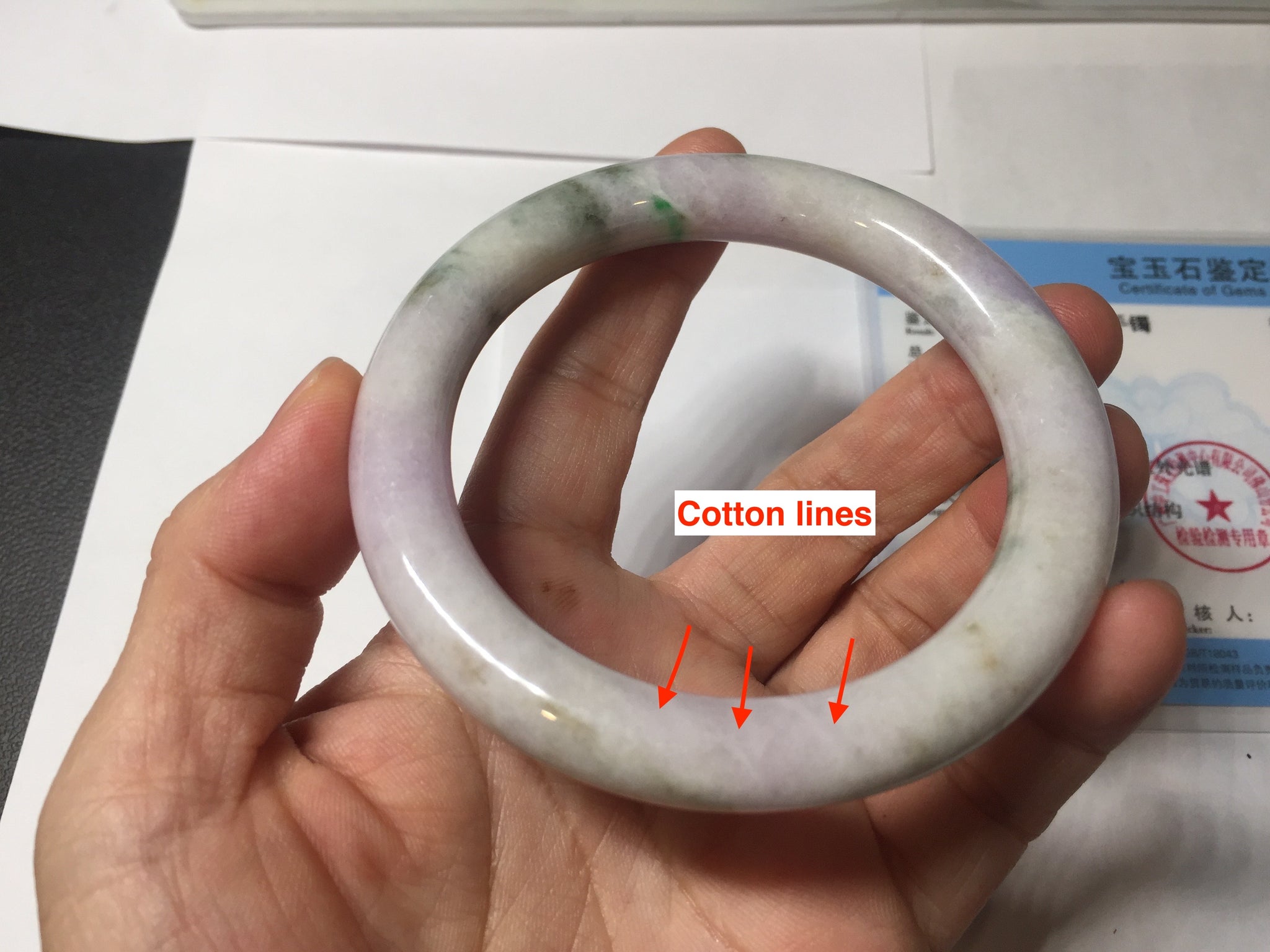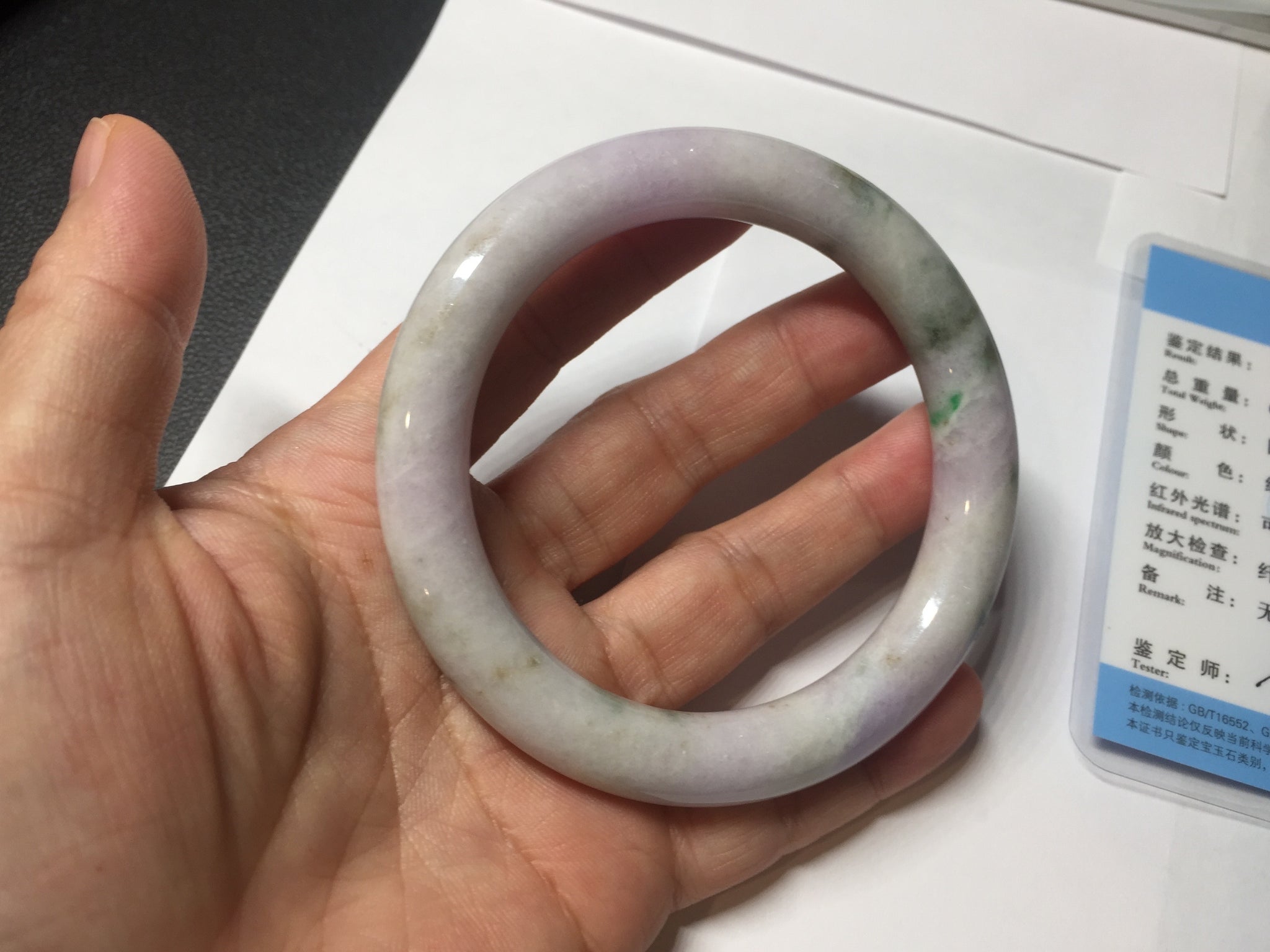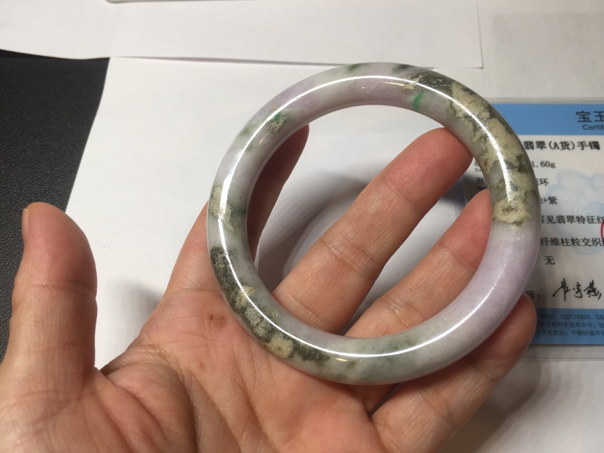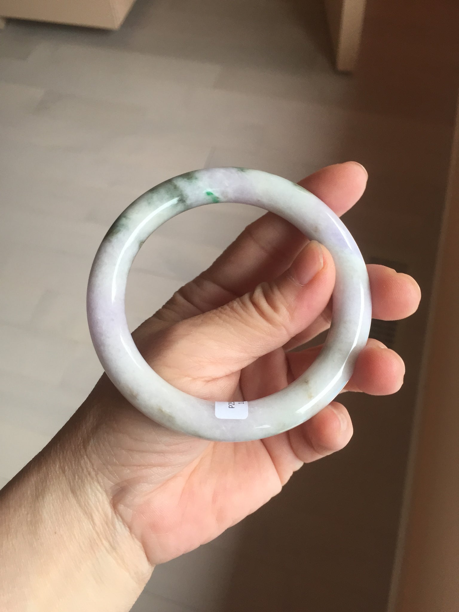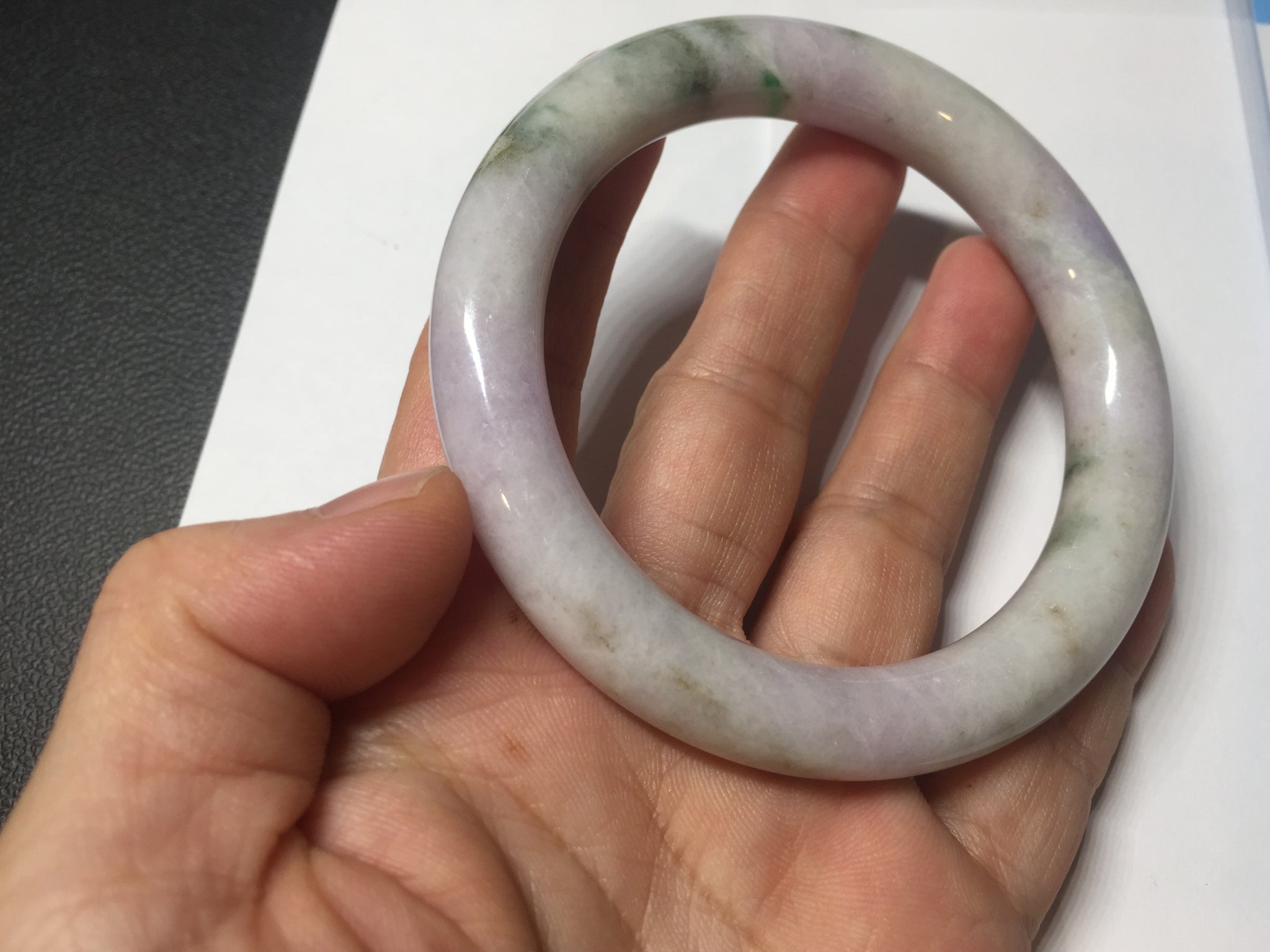 A distinctive natural jadeite bangle that looks like a tiny landscape on your wrist: soft lavender like the sky at dusk, drifting moss-green patches like quite and calm forester and some rock-textured areas that recall weathered cliff stone. —organic, earthy, and full of story.
