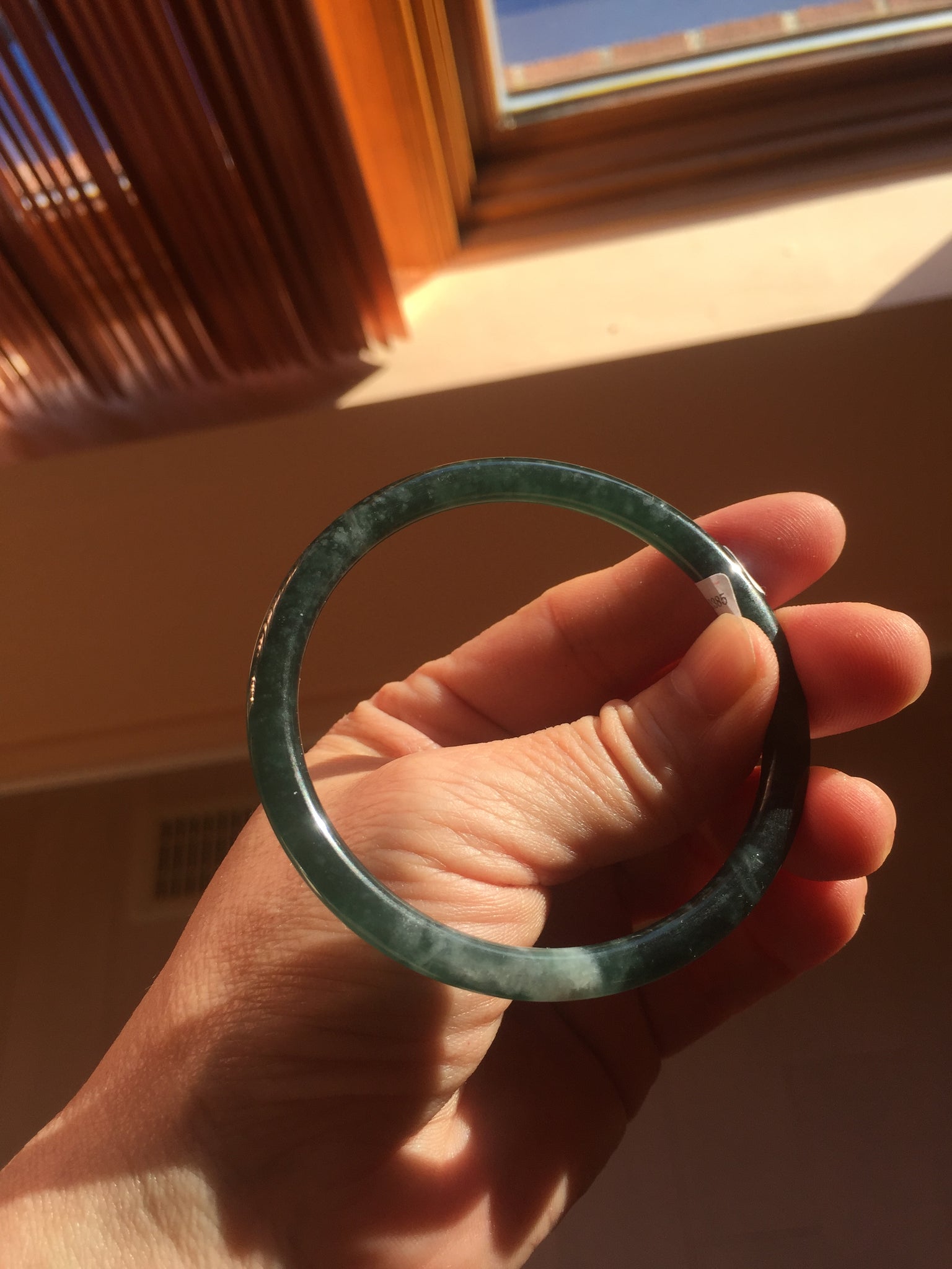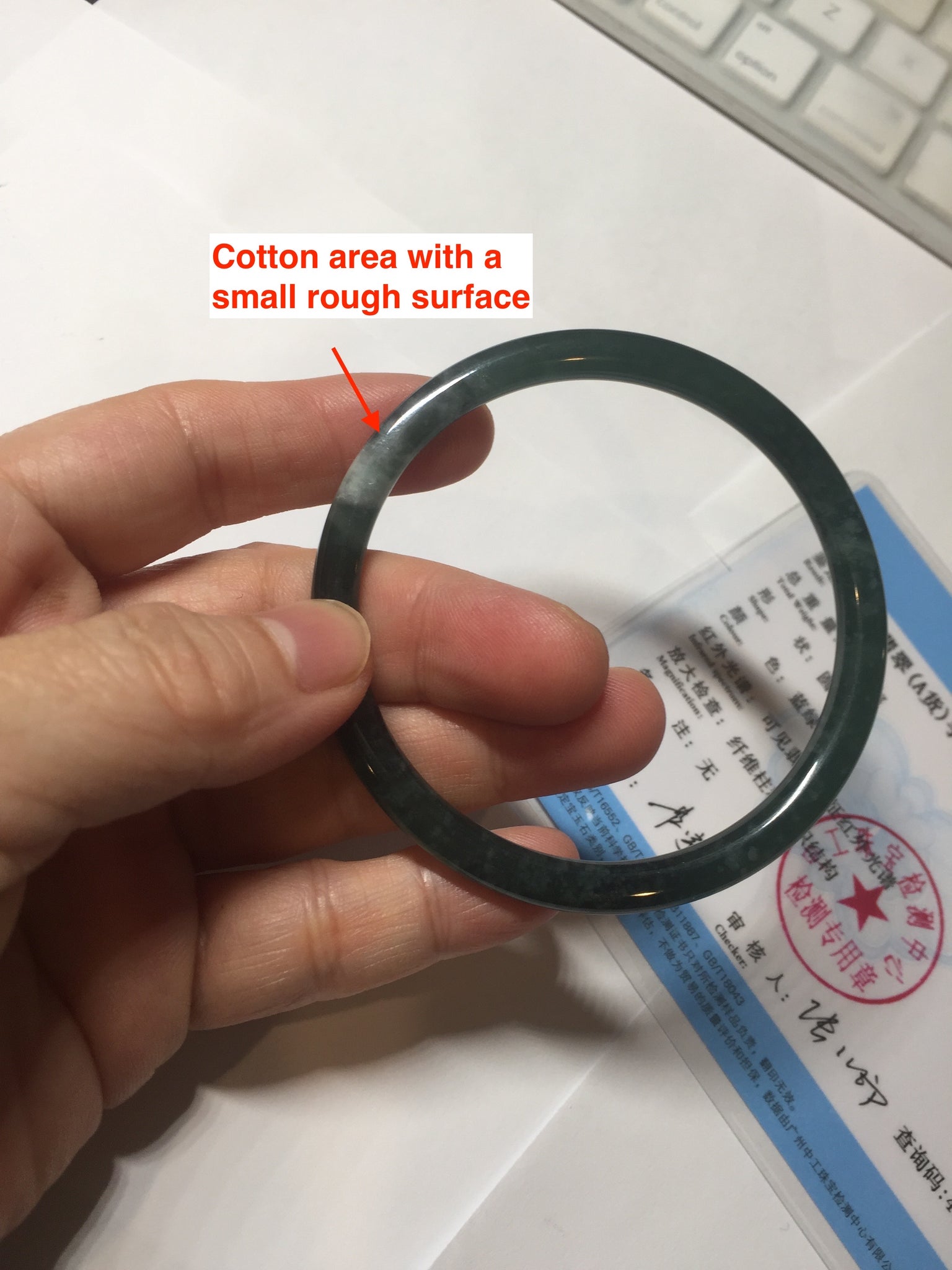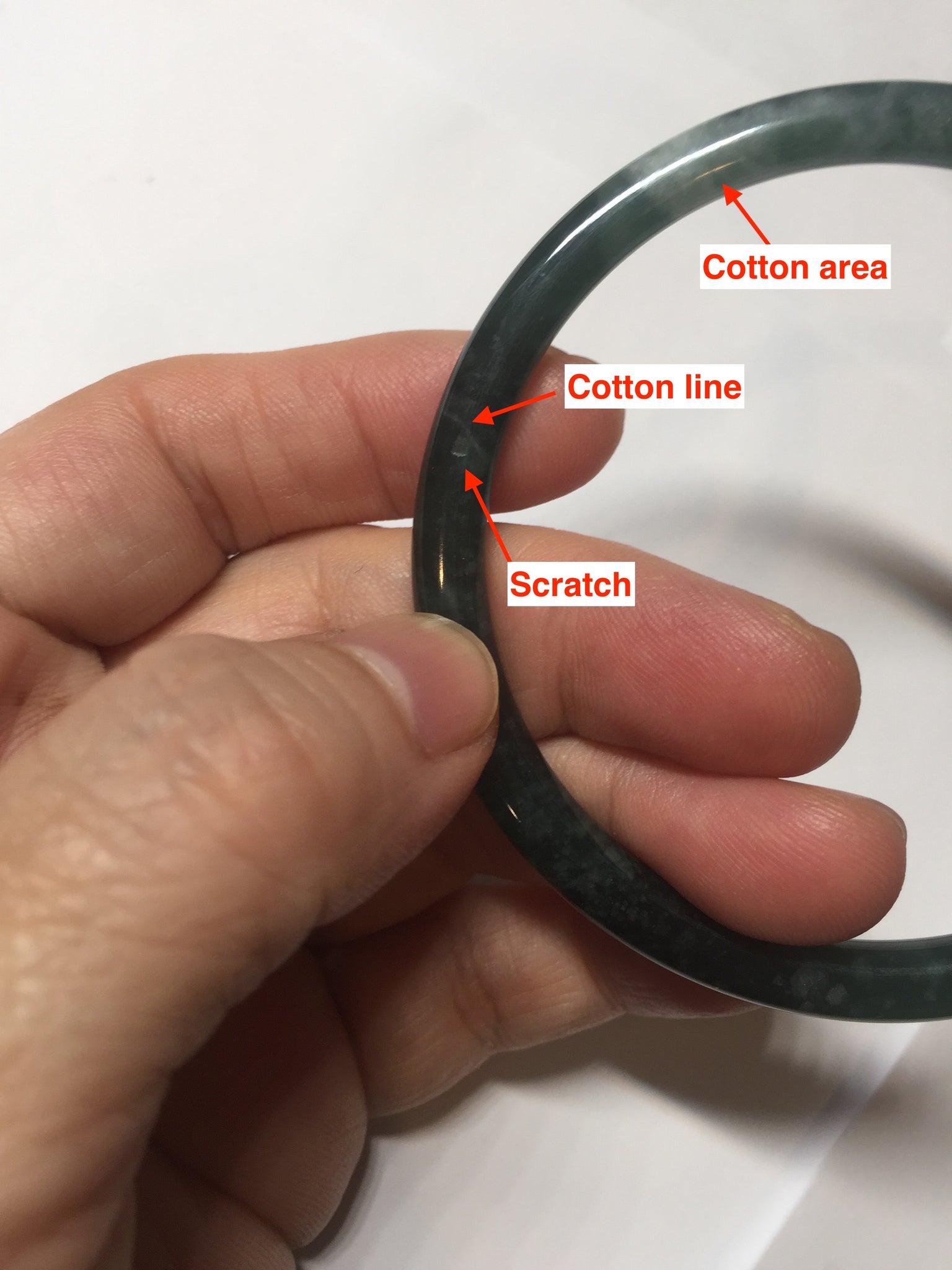 No crack. No hairline. Some cotton areas with rough spots due to the mineral difference. Some cotton lines and cotton spots. Some brown areas. The bangle has some gray/ black color.