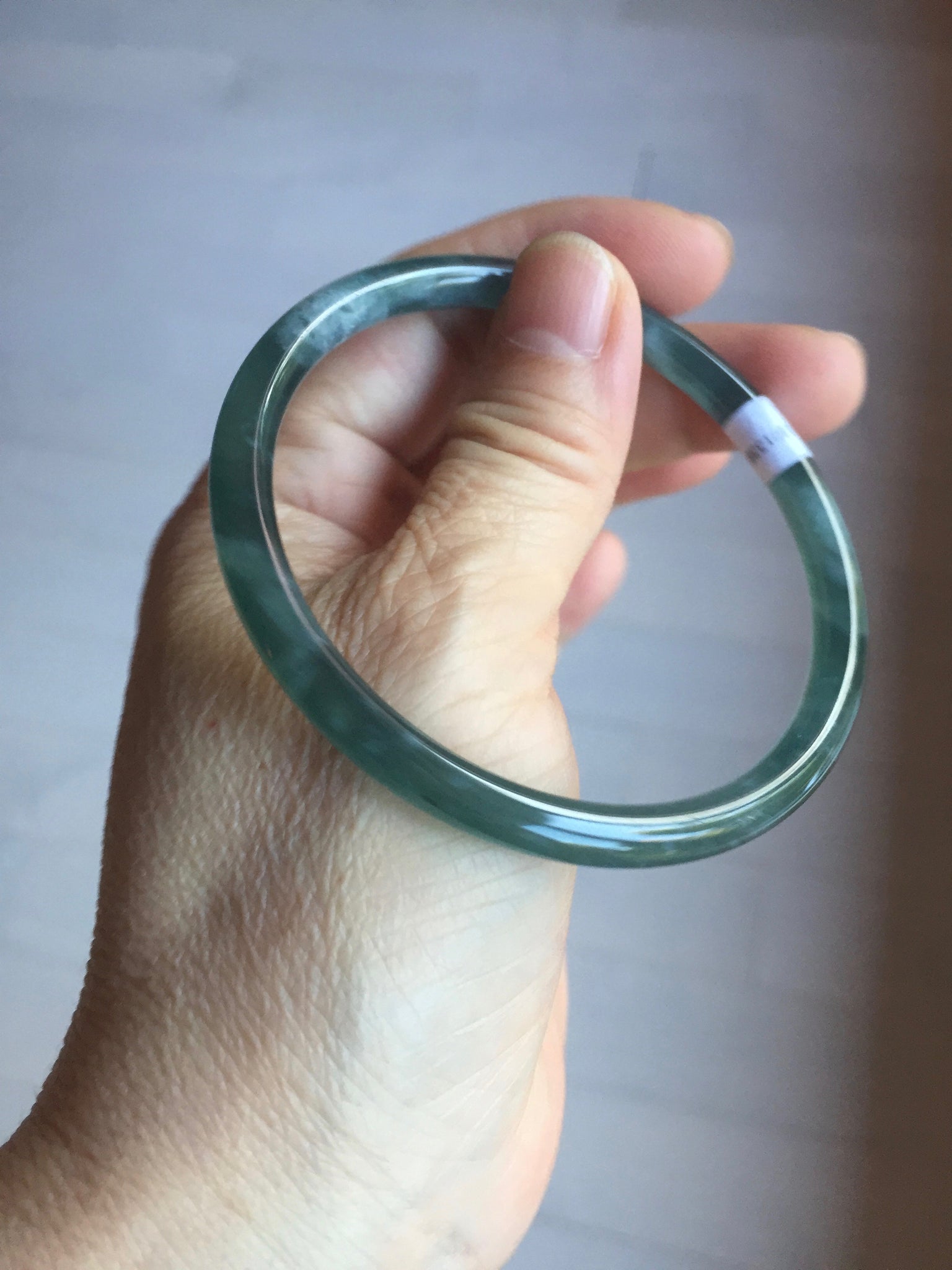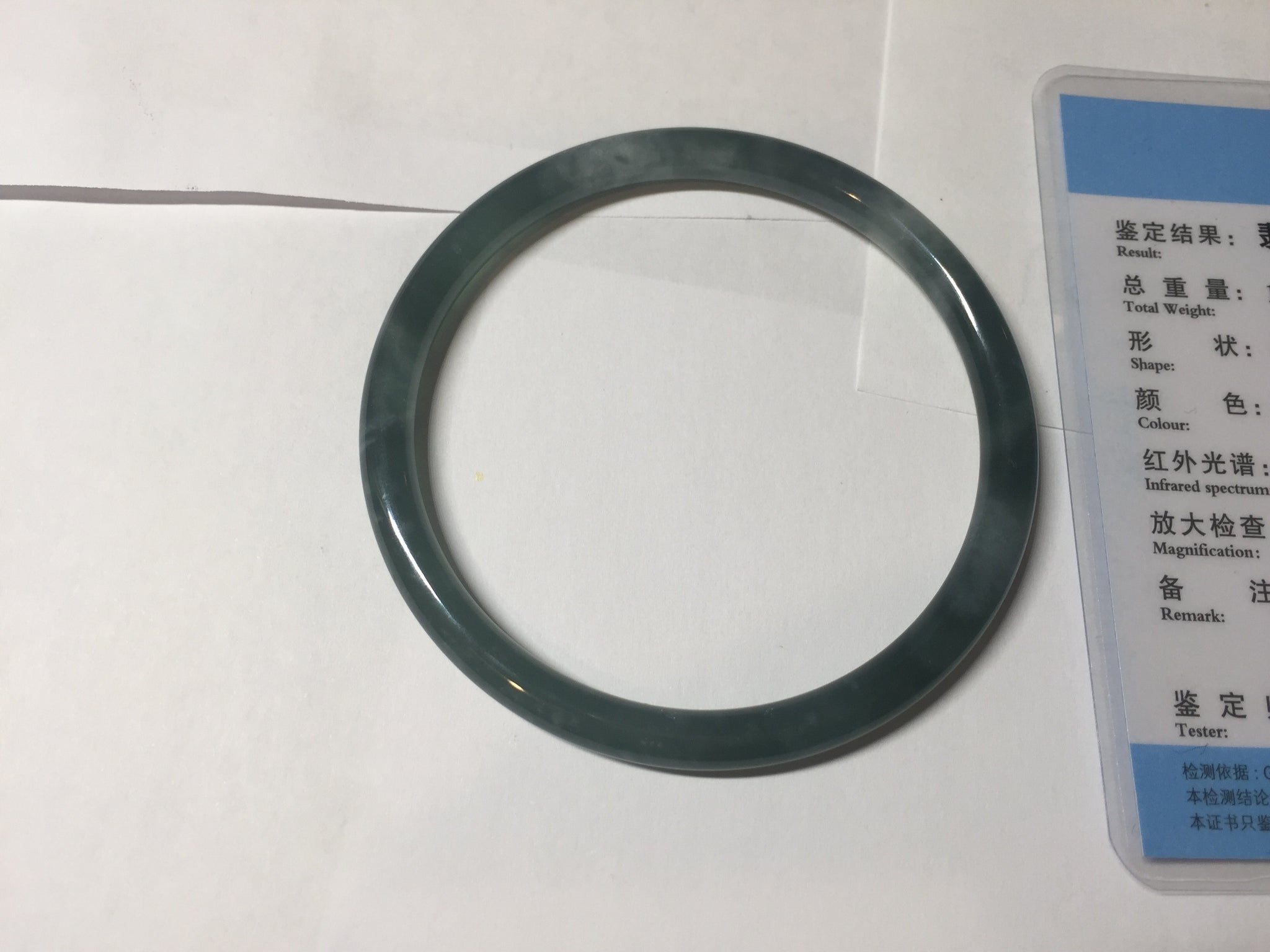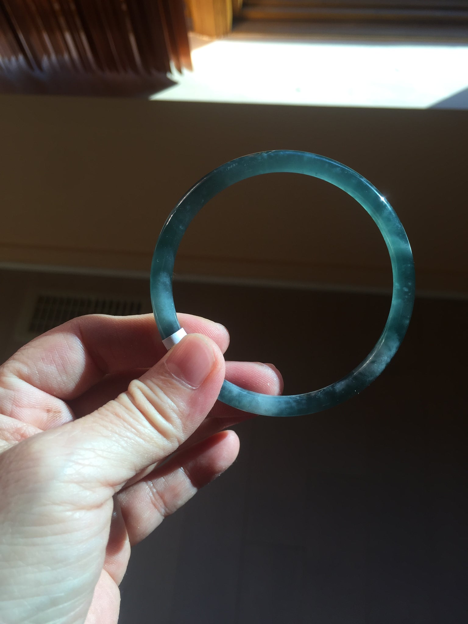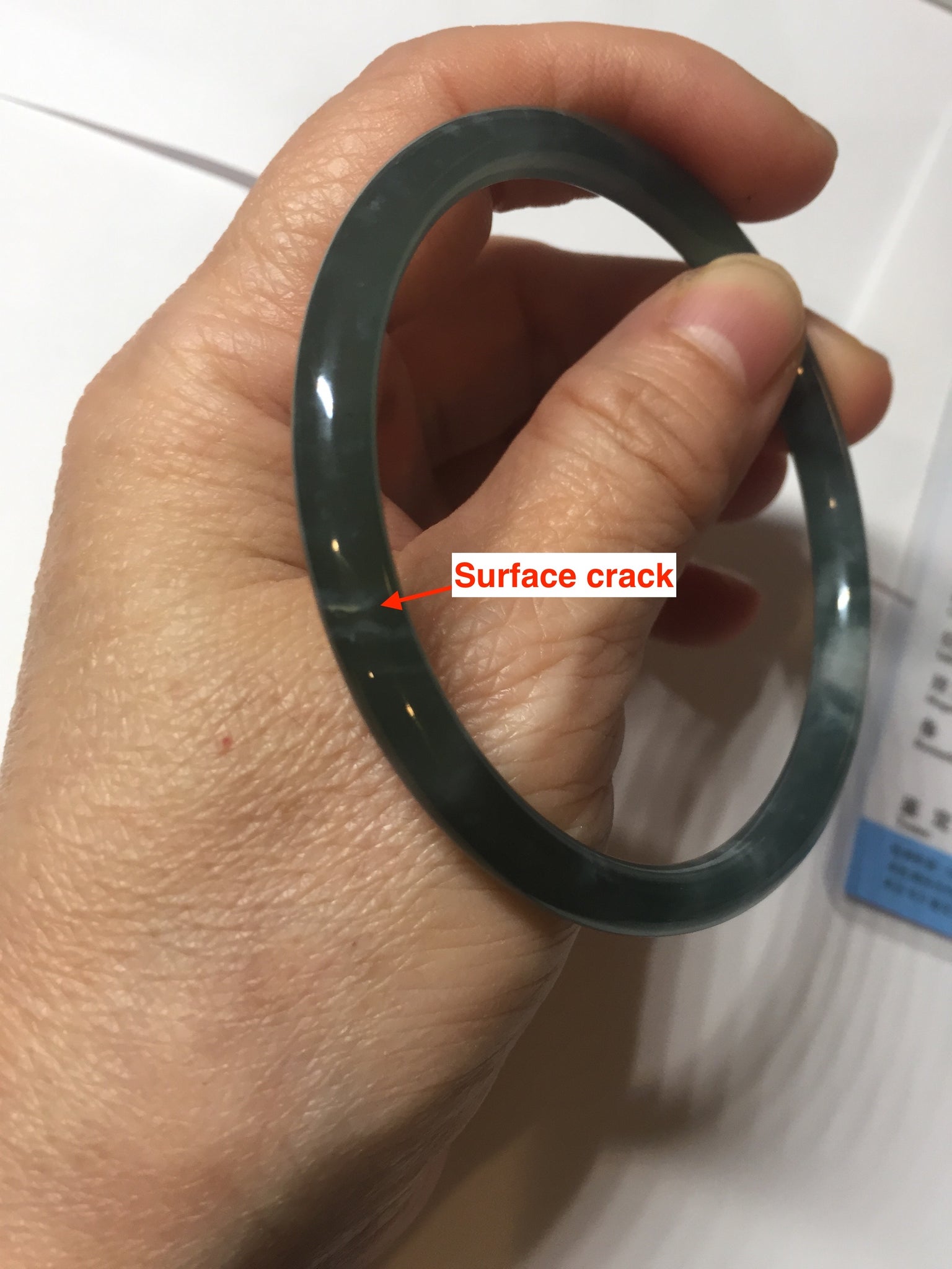 One crack. Some cotton areas, cotton lines and cotton spots. One cotton area has some tiny rough spots. The bangle has some gray/ black color.