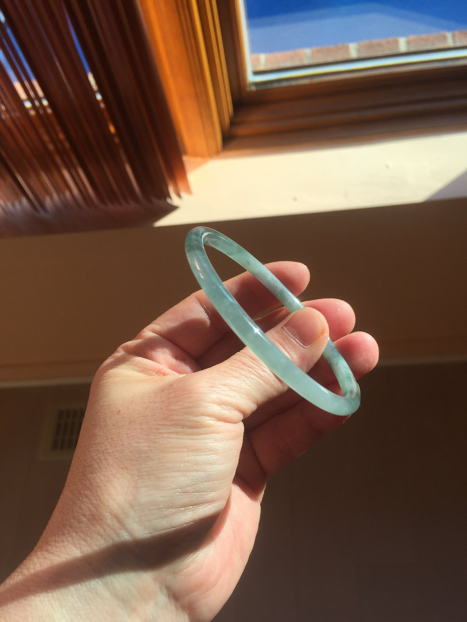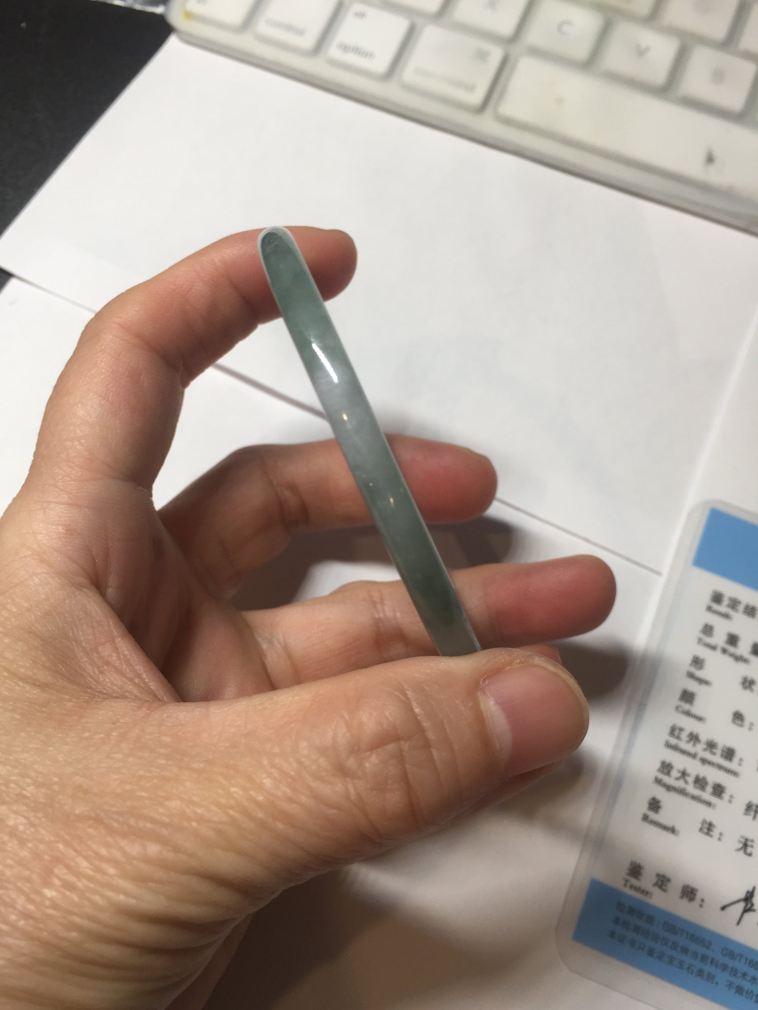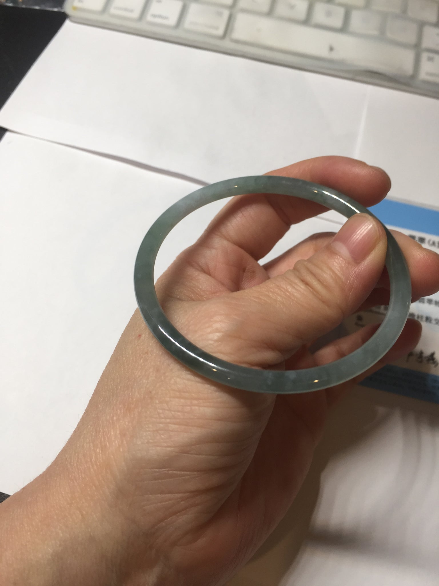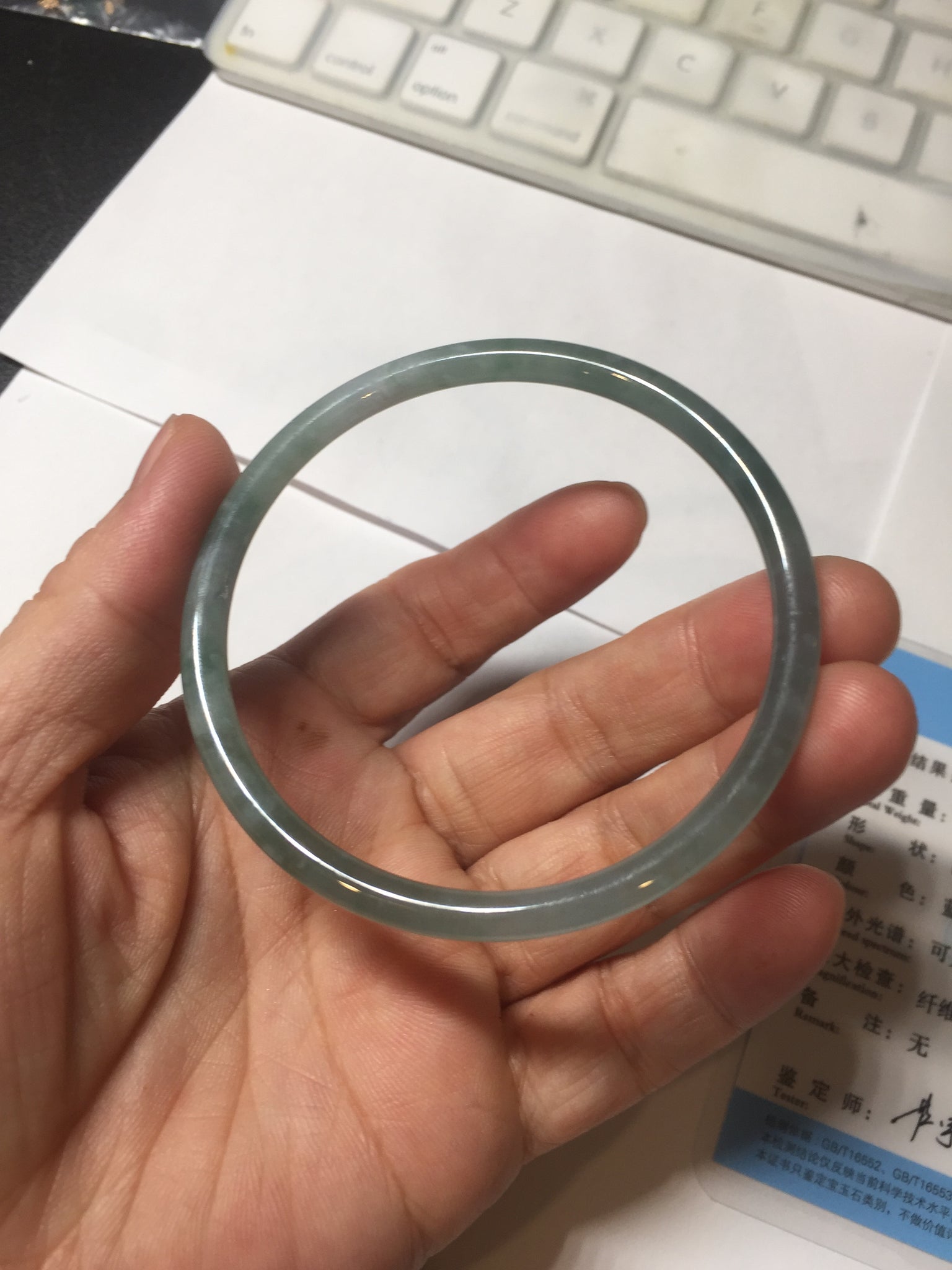 No crack. Some cotton areas, cotton lines and cotton spots. One cotton area has some tiny rough spots. The bangle has some gray/ black color.