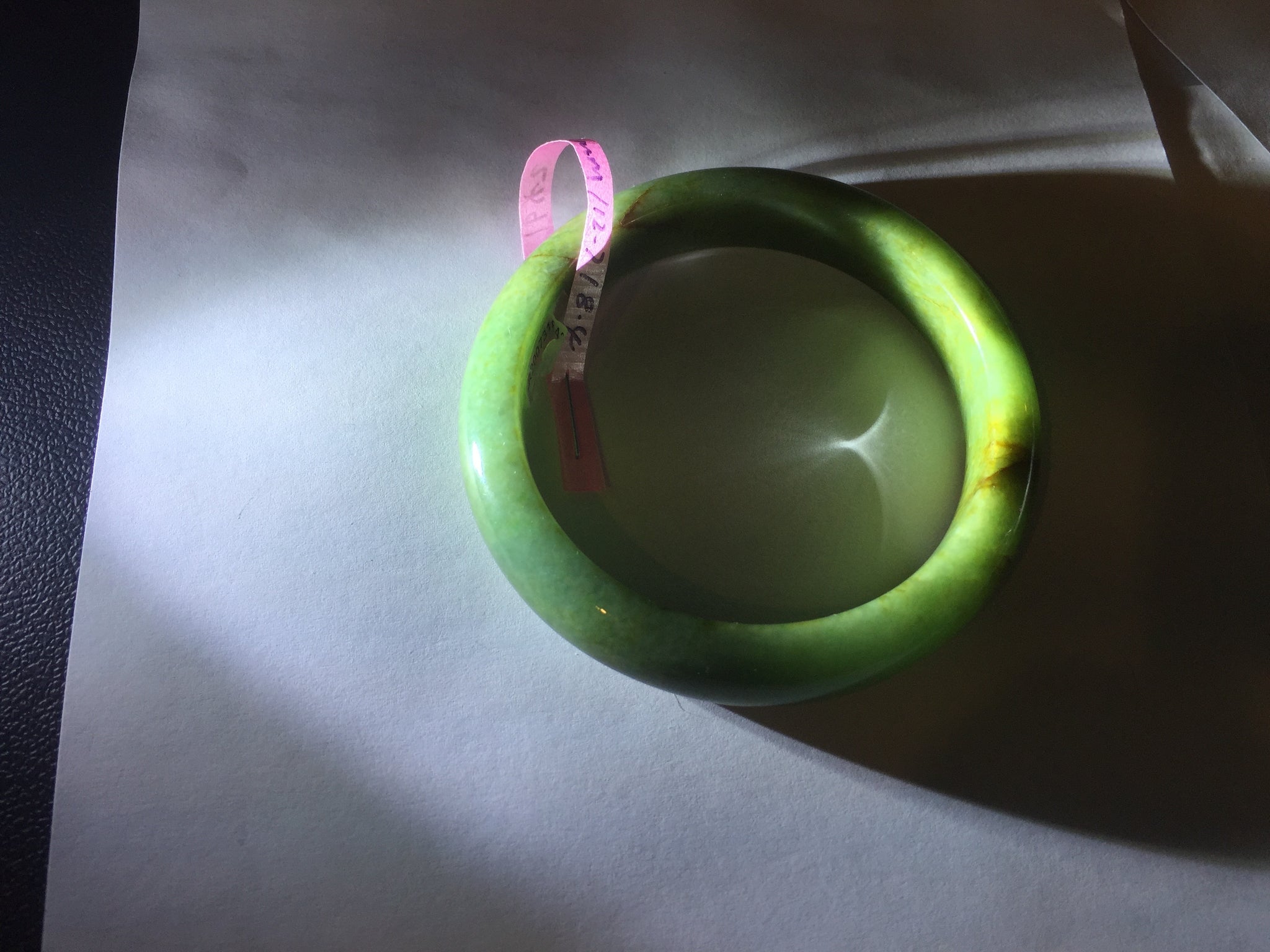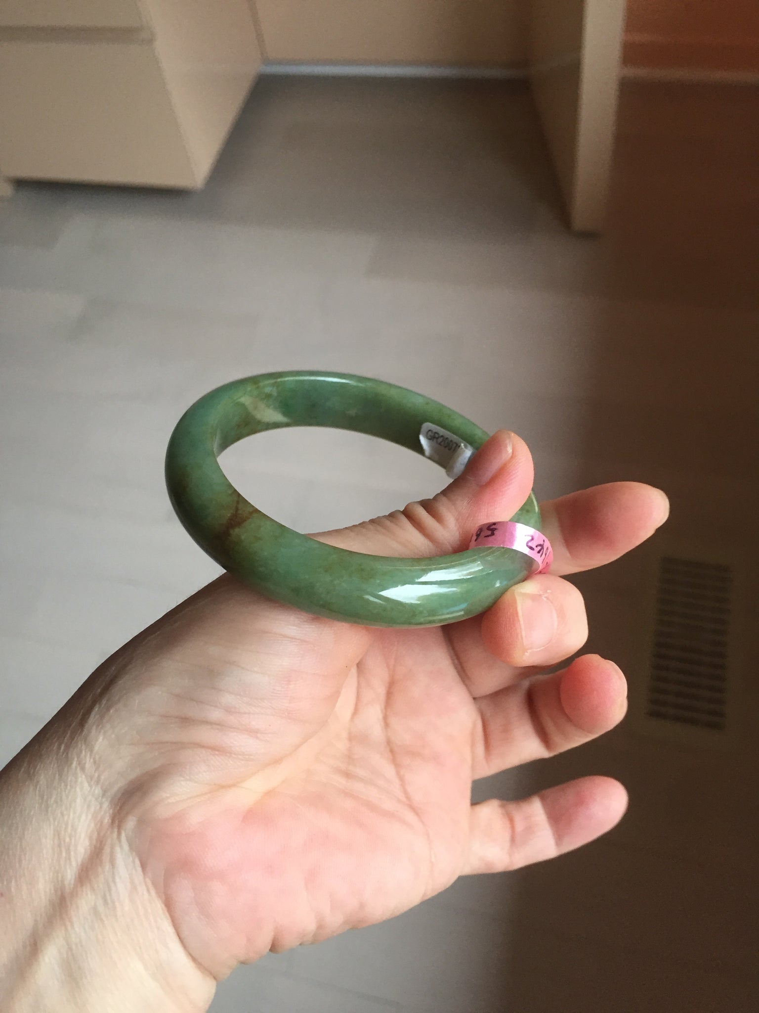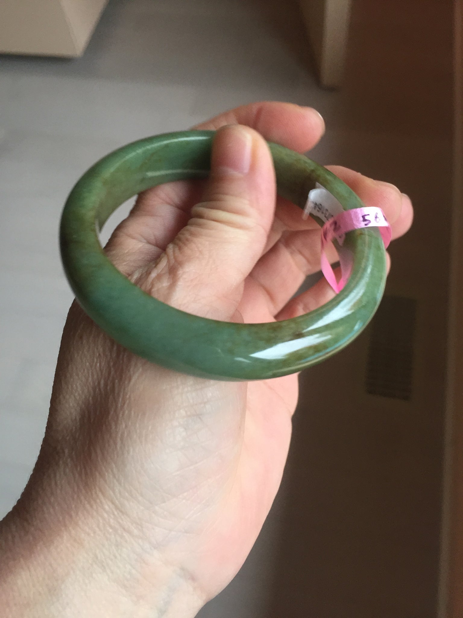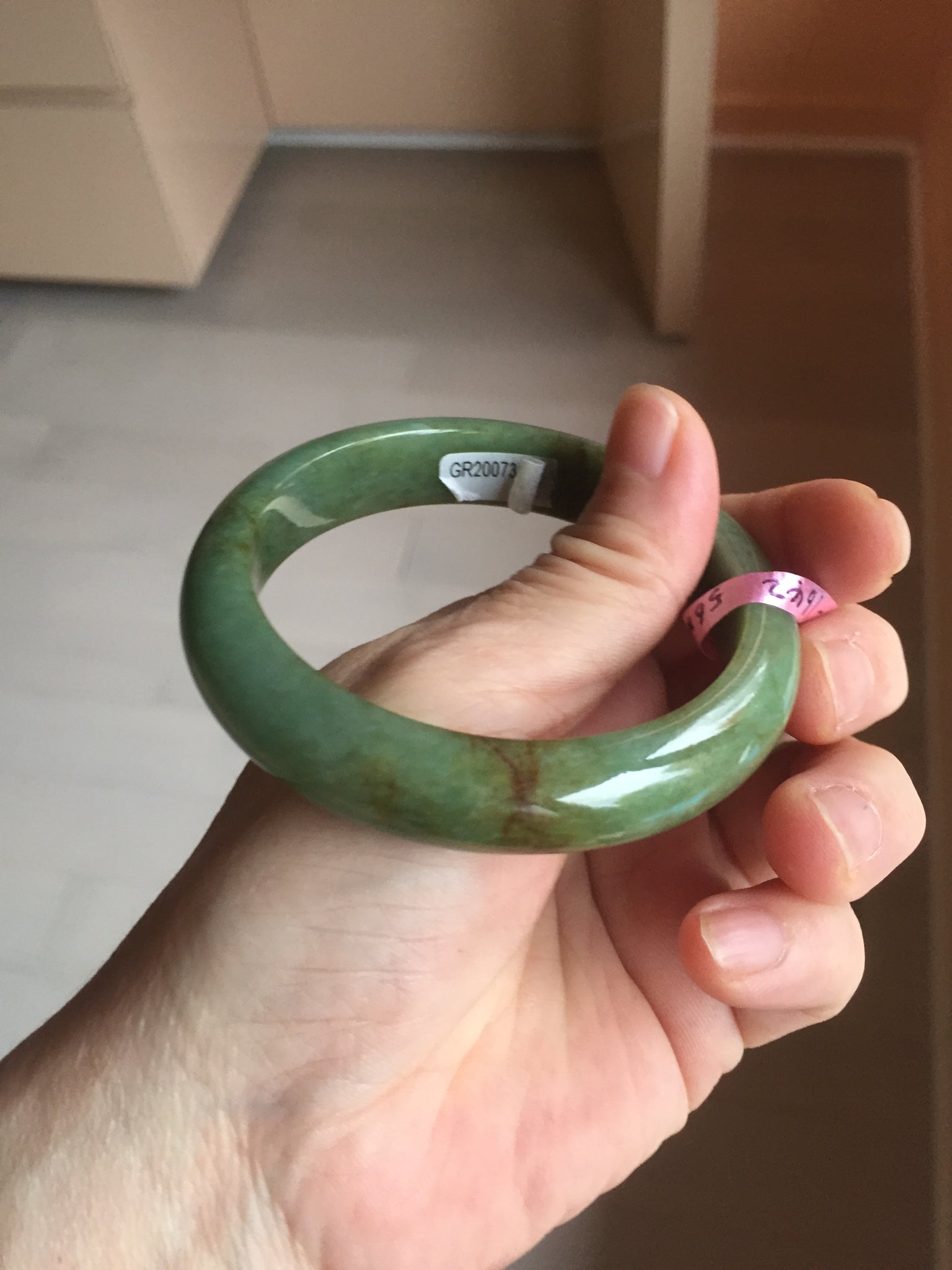 Some red/brown color root cracks. One of them is around the bangle color root crack. The bangle is still solid(Guaranteed! ). Usully color root cracks won't have big impact to the firmness. Just hot good infusion. Make high pitch sound when tapped. Some cotton lines, cotton areas, and cotton spots. Not transparent.